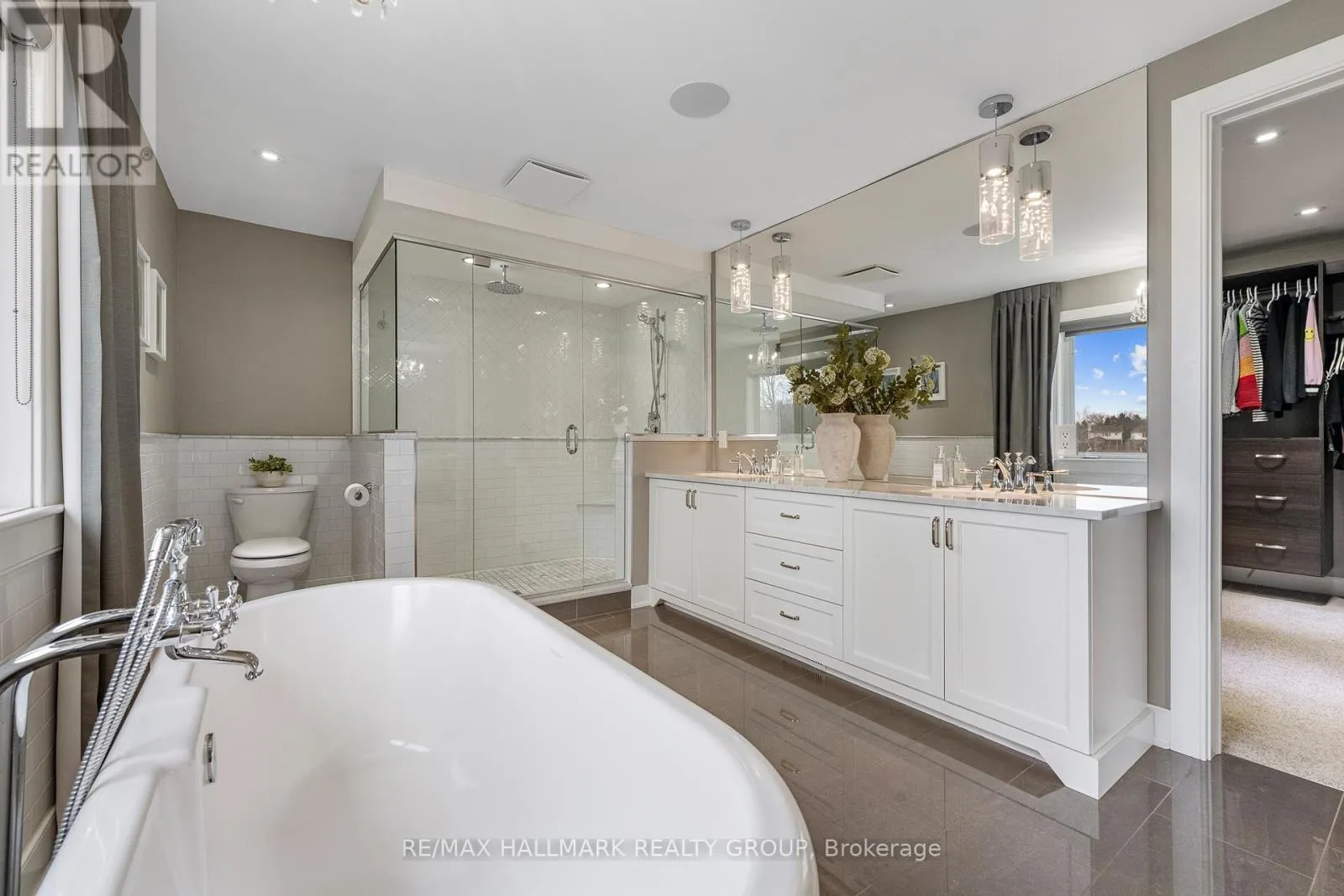 Cross Streets: KNUDSON & SHAUGHNESSY. ** Directions: 417W to Eagleson/March exit, straight thru on Campeau. Right on Knudson, left at stop sign to stay on Knudson, left on 2nd Shaughnessy. Aesthetically pleasing custom home epitomizes luxurious living and contemporary elegance. Grand foyer sets the tone. Hardwd, recessed lighting & flat ceilings are extended thru-out the main level. Entertain in uncrowded comfort in the spacious living & dining rms, featuring an attractive fireplace & coffered ceiling. Glass doors fill this room with natural light and offer direct access to the screened porch. The gourmet kitchen combines style with functionality & offers a significant island & high-end appliances including flush-mount refrigerator & 6-burner gas stove. A spacious eating area and every cook's dream, a huge walk-in pantry, will be welcome features. The open concept great rm will be the heart of this home, enjoying a gas fireplace & tranquil views. Main level study is ideal for those who require a home office. Huge laundry/mud rm was built with the growing family in mind. Comfort characterizes the 2nd level, which includes an expansive primary suite w huge custom closet & sumptuous ensuite. Four add'l bedrms (2 w Jack-&-Jill bath) are well-proportioned. Main bath & 2 linen closets complete this level. Lower level, developed to the same high standards as the rest of the home, includes recreation rm w fireplace, exercise room w laminate floors & 6th bedrm w access to full bath w heated floor. Plenty of storage space remains. Last but not least, western exposure & gracious landscaping front & back will encourage outdoor enjoyment, offering inground pool, BBQ deck, patio & putting green. Extensive renovation in 2016 added 2 bedrooms, full bath and a reconfiguration of original space. Don't miss these extras! Inground pool (heater 2024, liner 2025), screened porch w heated floor, flat ceilings & recessed lighting thru-out, built-in speakers, heated floors in bathrooms, HRV, humidifier, in-ground sprinkler, EV charging outlet in garage. This home is a TEN! If first class is your way of life, you have just found your new home. (id:27476)