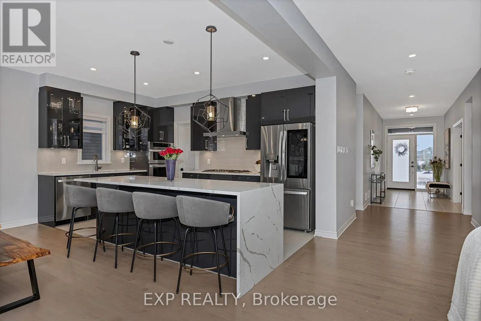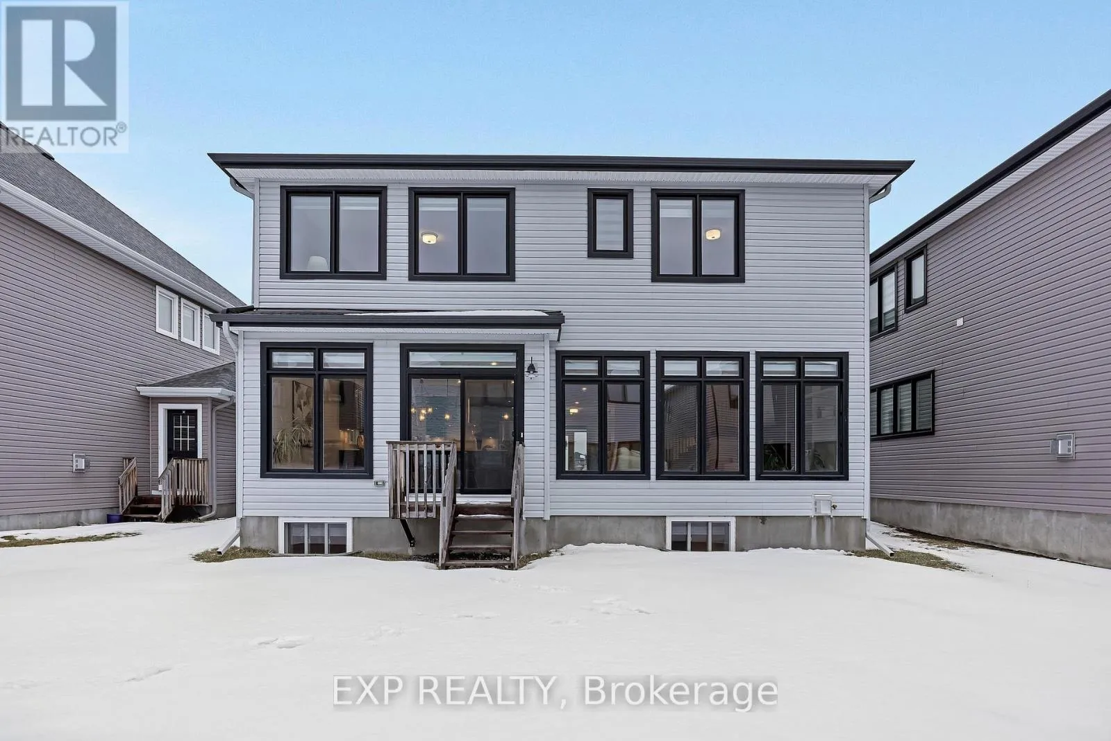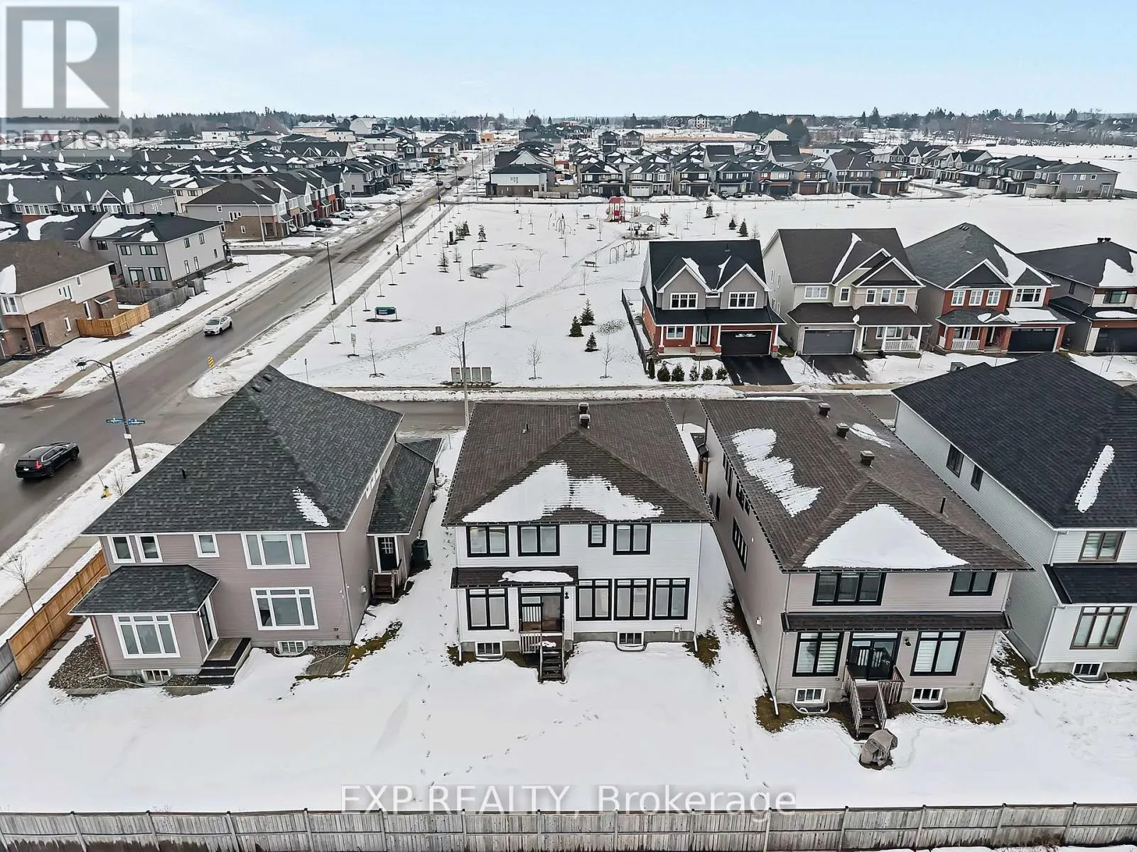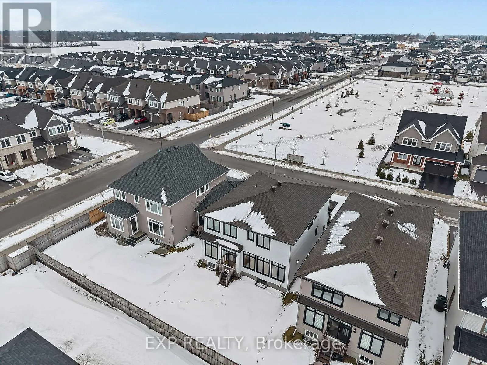 Cross Streets: Leitrim Rd and Bank St. ** Directions: West on Leitrim Rd, left on Kelly Farm Dr, left on Barrett Farm Dr., right on Moonflower. Pristine and sophisticated, this 3.5-year-old Tamarack 'Granger' model (Modern Elevation) sits on a premium lot, perfectly situated directly across from a park with unobstructed front views. Spread across three fully finished levels, this executive home offers 5 washrooms and a rare 4+1 bedroom layout. The sun-drenched main floor features hardwood flooring, an expansive open-concept living area, and a chef-inspired kitchen with an oversized walk-in pantry. A versatile main-floor 5th bedroom/study provides the ideal private retreat for a home office or guest suite. Upstairs, the generous primary suite is complemented by a lavish ensuite and walk-in closet, while three additional bedrooms are served by two full bathrooms. The 2nd-floor laundry room adds incredible convenience where it's needed most. The lower level has been thoughtfully finished to include a fantastic family room, an additional guest bedroom, and a modern powder room. With the remainder of the 7-year Tarion warranty in place, this "better than new" property offers a perfect blend of contemporary luxury and tranquil living in an unbeatable location. (id:27476)