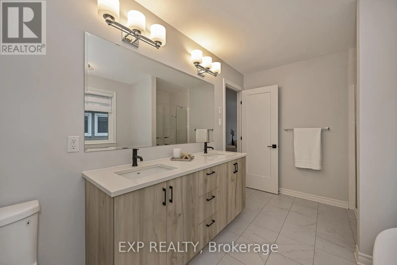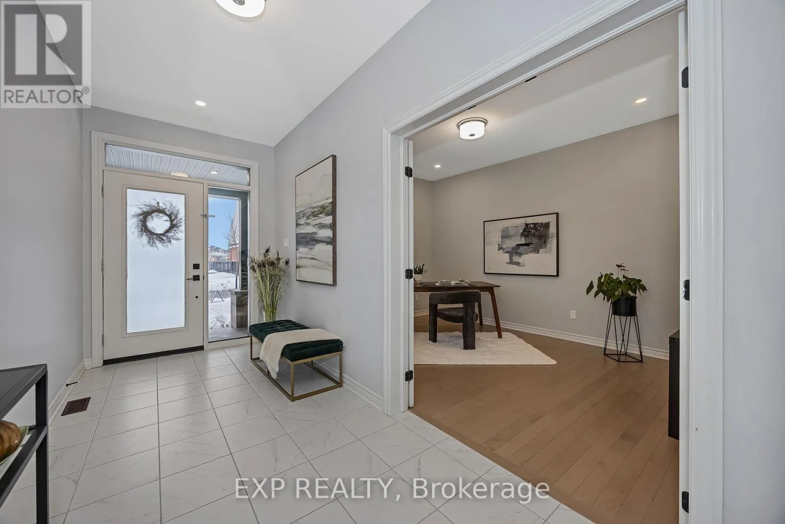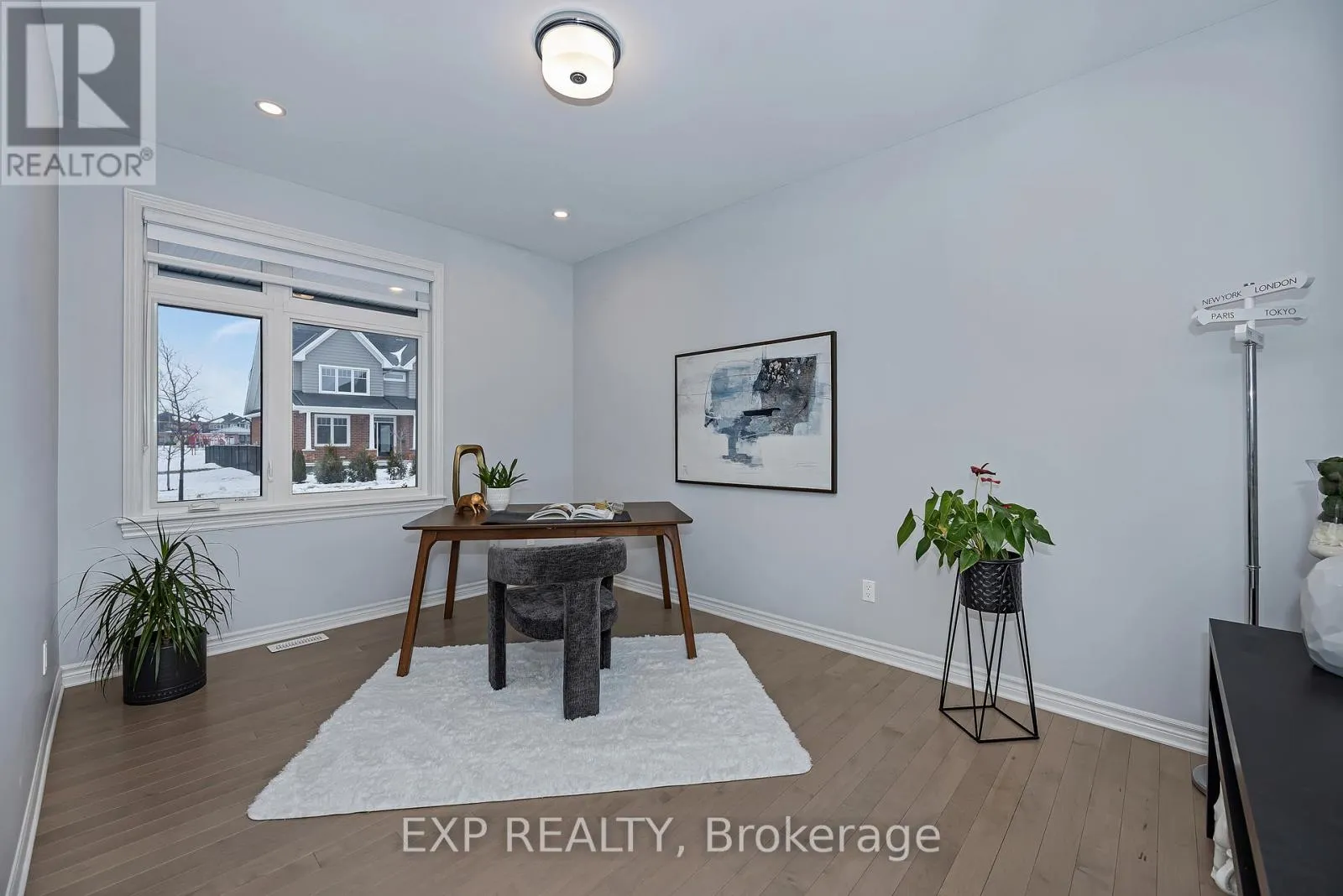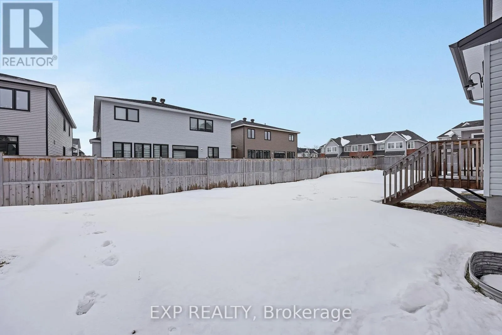 Cross Streets: Leitrim Rd and Bank St. ** Directions: West on Leitrim Rd, left on Kelly Farm Dr, left on Barrett Farm Dr., right on Moonflower. Pristine and sophisticated, this 3.5-year-old Tamarack 'Granger' model (Modern Elevation) sits on a premium lot, perfectly situated directly across from a park with unobstructed front views. Spread across three fully finished levels, this executive home offers 5 washrooms and a rare 4+1 bedroom layout. The sun-drenched main floor features hardwood flooring, an expansive open-concept living area, and a chef-inspired kitchen with an oversized walk-in pantry. A versatile main-floor 5th bedroom/study provides the ideal private retreat for a home office or guest suite. Upstairs, the generous primary suite is complemented by a lavish ensuite and walk-in closet, while three additional bedrooms are served by two full bathrooms. The 2nd-floor laundry room adds incredible convenience where it's needed most. The lower level has been thoughtfully finished to include a fantastic family room, an additional guest bedroom, and a modern powder room. With the remainder of the 7-year Tarion warranty in place, this "better than new" property offers a perfect blend of contemporary luxury and tranquil living in an unbeatable location. (id:27476)