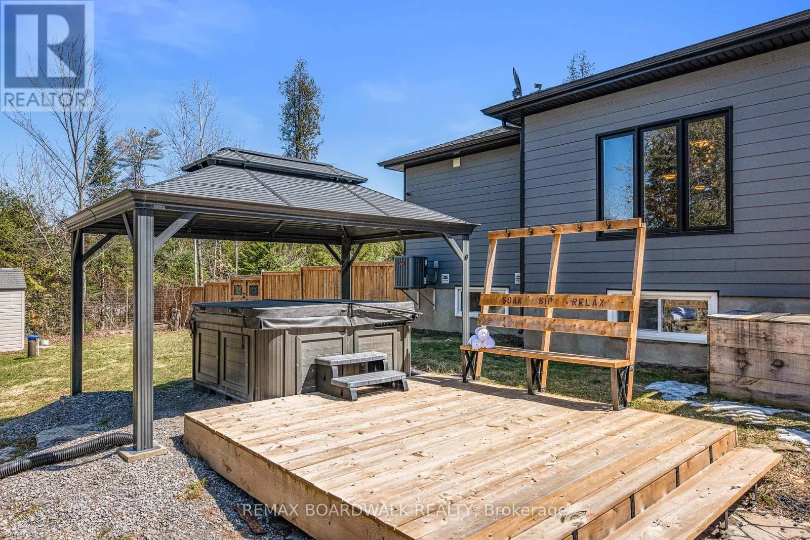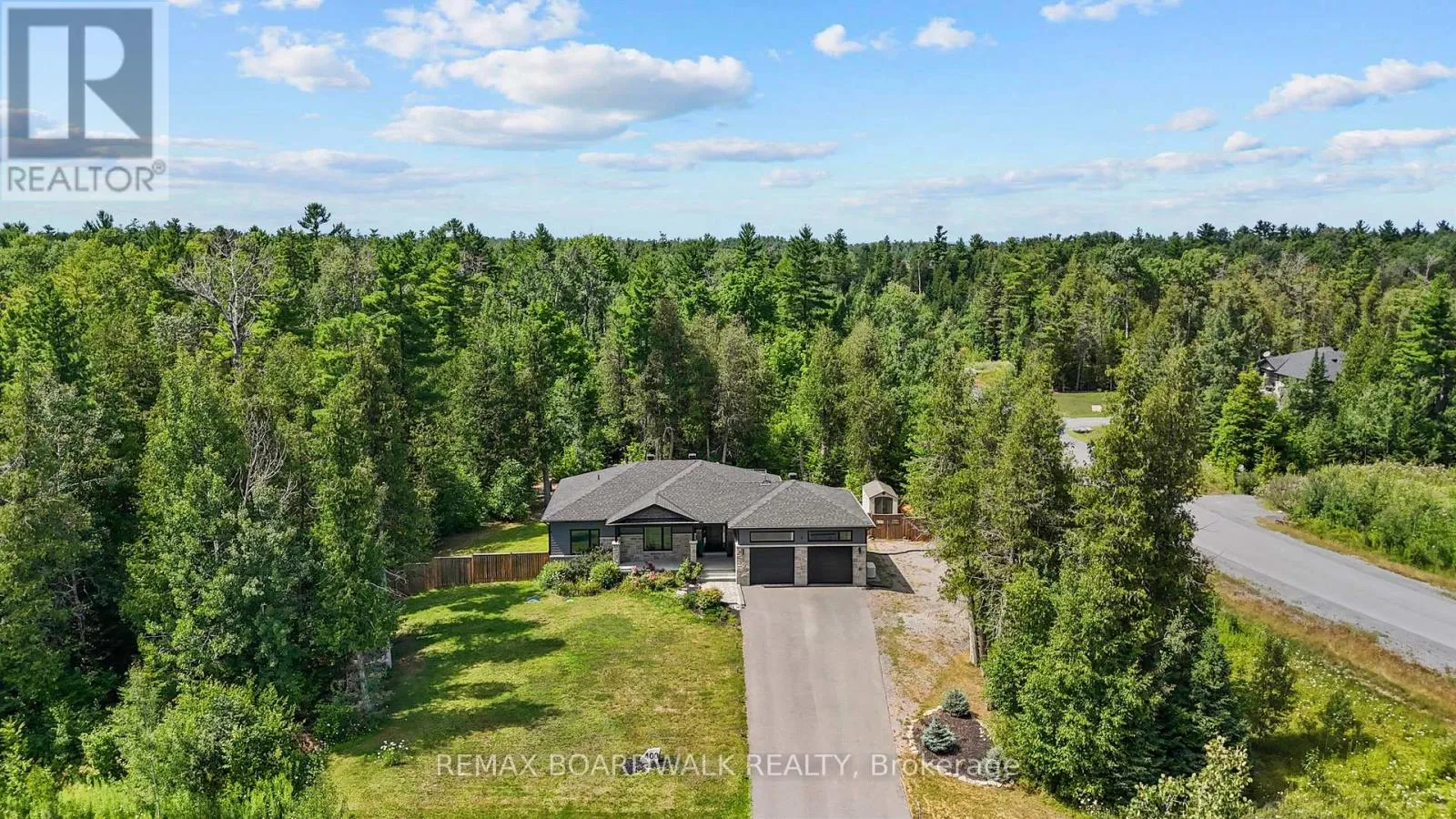 Cross Streets: Stonewalk and Panmure. ** Directions: Panmure left onto Stonewalk, Left onto Cinnamon. Home is on the Right. Embrace a lifestyle of serenity and vibrant living in this exceptional bungalow built in 2019. Nestled on a private, fully fenced two-acre corner lot, this retreat offers the perfect harmony of peaceful seclusion and effortless entertaining. Step inside to discover an inviting open-concept main floor, where daily family life and lively gatherings flow seamlessly. Picture yourself captivated by the stunning backyard views framed by a massive dining room window. The heart of the home lies in the gourmet kitchen, boasting stainless steel appliances, granite countertops, and a generous island. The ideal hub for culinary creations and social connections. Elegant hardwood floors guide you through the main level to three spacious bedrooms, including a primary suite complete with a walk-in closet and a four-piece ensuite.The expansive, fully renovated (2024) basement unveils a world of possibilities. Descend into a cozy family room for movie nights, and discover a bright, versatile space with a walk-in closet, perfect as a guest suite, home gym, or games room. Seek tranquility in the sound-dampened den, your private sanctuary for yoga, meditation, or even musical pursuits, conveniently located next to a full bathroom.Outside, your two-acre haven awaits. Explore private walking trails, tap the mature maples, or unwind under the stars by the fire pit or in the soothing hot tub. The fully insulated and heated garage, featuring custom cedar walls, and 12' ceilings provides room for vehicles, bikes and work space. Plus, a dedicated gravel parking area accommodates your RV, boat, and more. Enjoy peace of mind knowing an 18kW Generac generator (2023) stands ready. This kind of privacy coupled with being just 2 minutes to the 417, and 20 mins to Kanata is a rare find. This is more than a Home; it's a Lifestyle. (id:27476)
