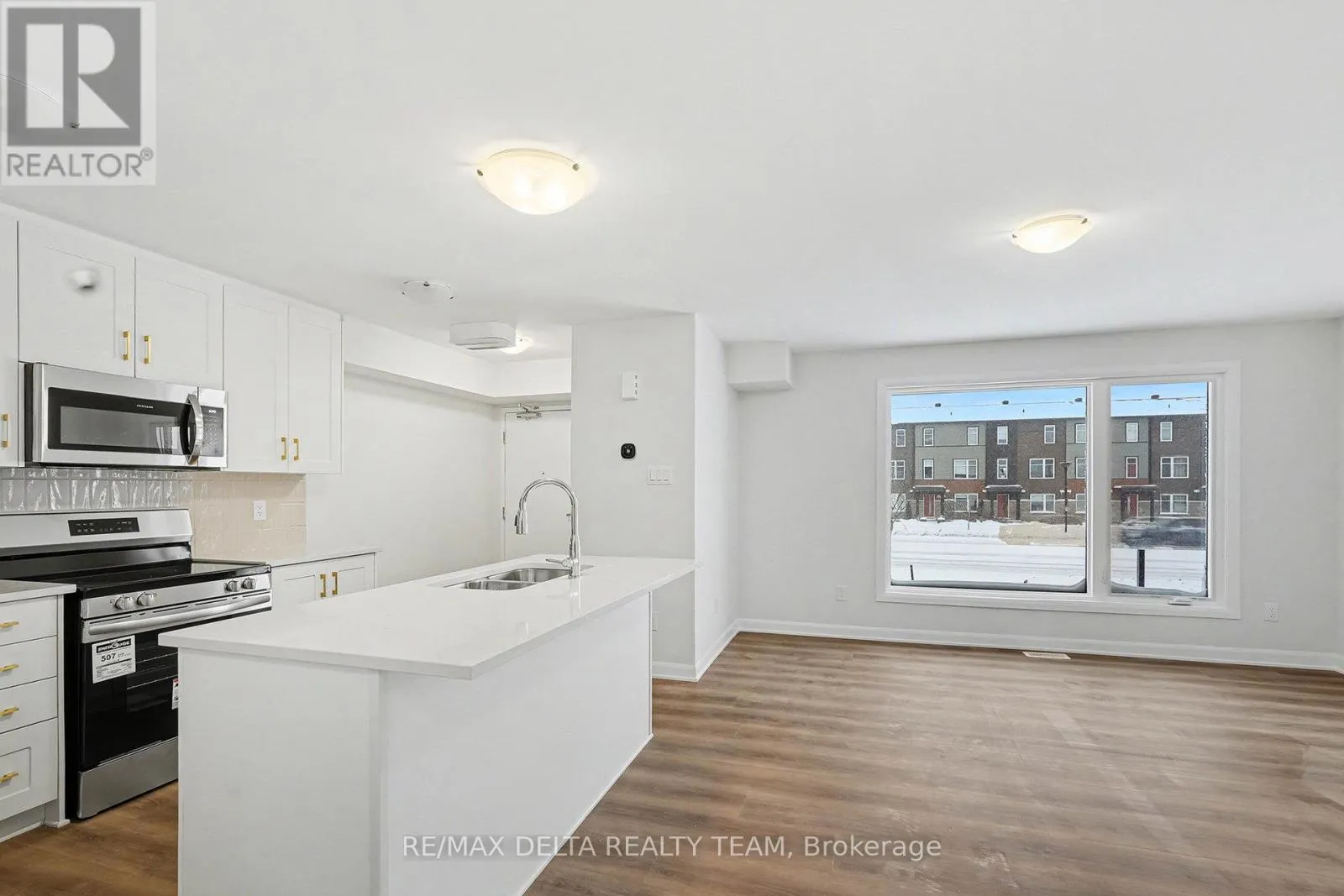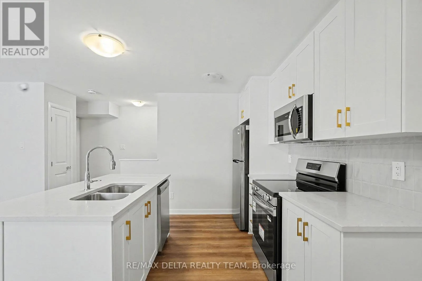 Cross Streets: Campeau an Creekway Private. ** Directions: Campeau Drive, right on Country Glen Way, then left onto Feedmill Private. Turn left onto Creekway Private. Brand new and move-in ready! This stylish two-storey, two-bedroom condo offers modern living in the heart of Kanata. The bright open-concept main level features large windows, light-toned flooring, and a contemporary kitchen complete with stainless steel appliances, sleek countertops, ample cabinetry, and a large island with bar seating-perfect for everyday living and entertaining. A full bathroom on this level adds extra convenience.The lower level provides a private retreat with two spacious bedrooms, generous closet space, and large windows. The versatile second bedroom is ideal as a home office or guest room. A chic full bathroom, in-suite laundry, and additional storage complete the space. Enjoy the added benefits of a welcoming front patio and one included parking spot.Ideally located close to schools, parks, trails, transit, shopping, and dining, this condo delivers the perfect blend of comfort, style, and convenience in a sought-after Kanata neighbourhood. (id:27476)