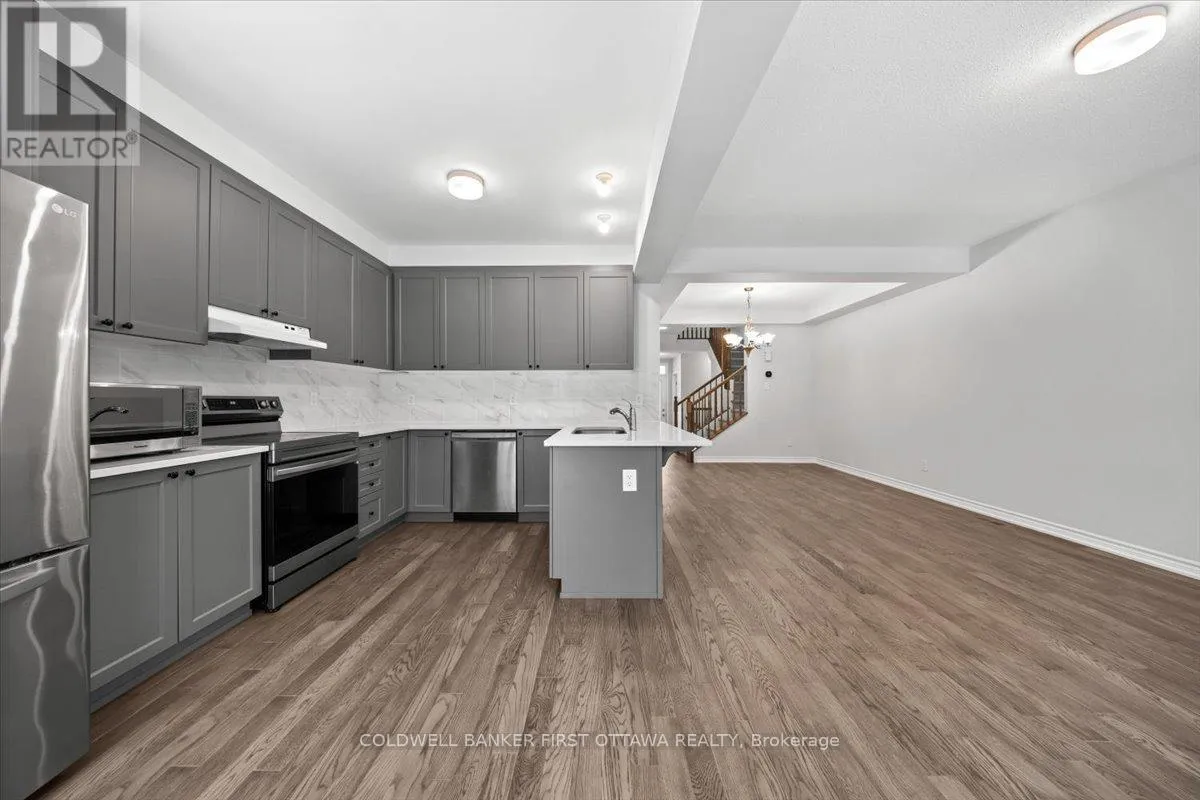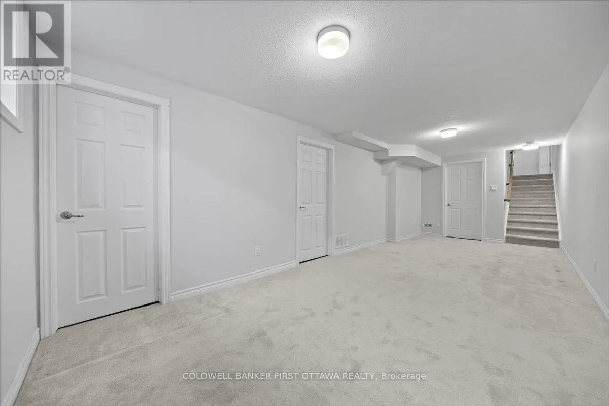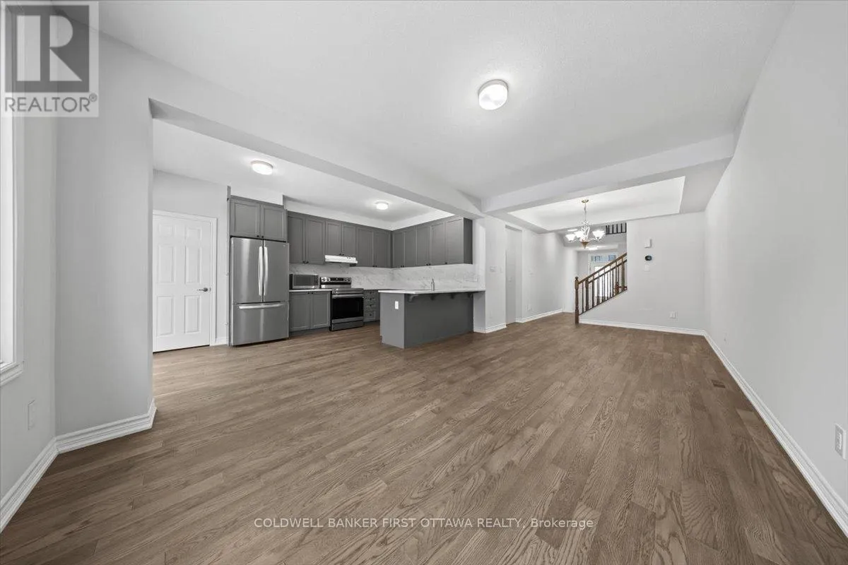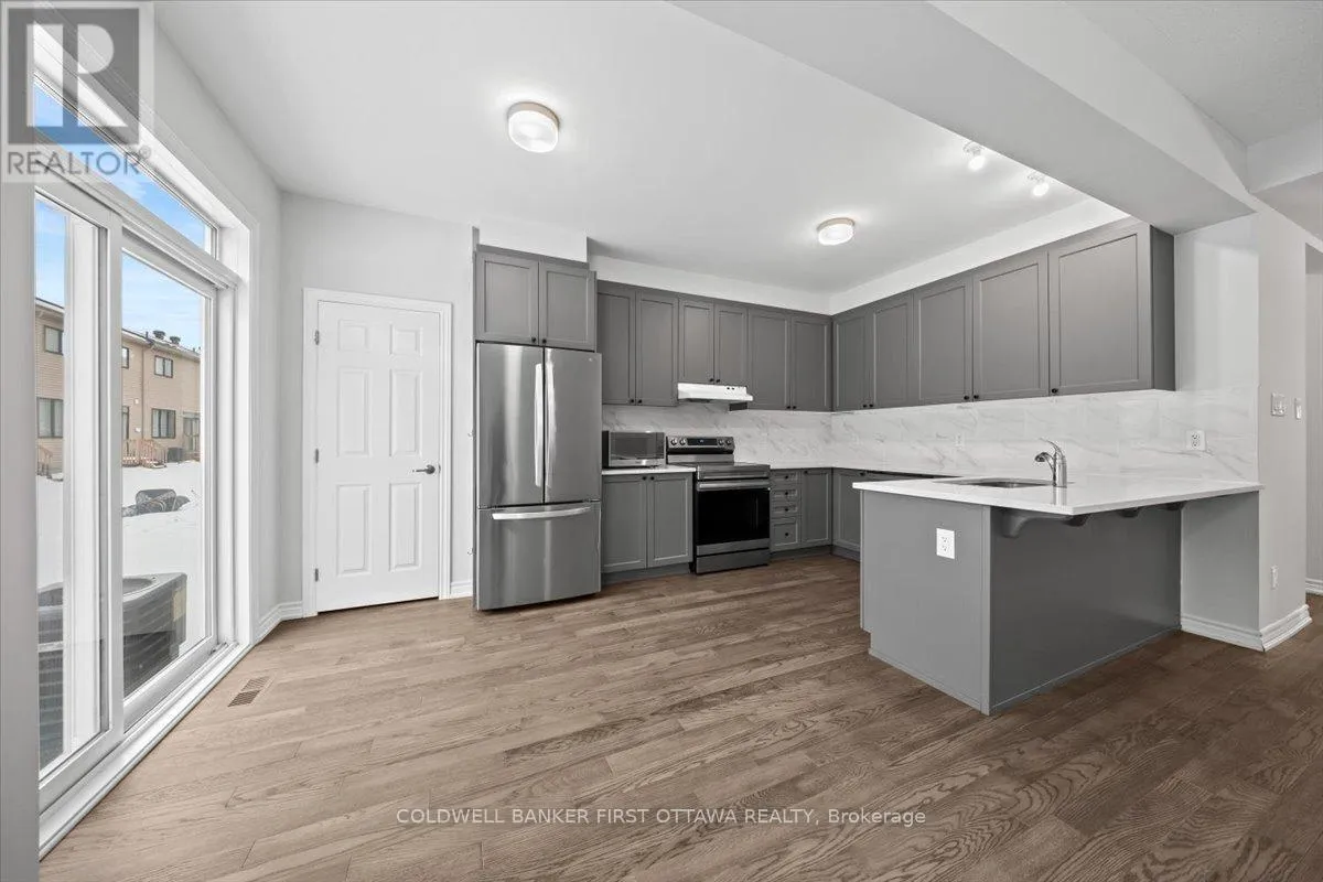 Cross Streets: Borrisokane Road. ** Directions: 509 FLAGSTAFF DR NEPEAN ON K2J 6W1. Refined 3 bedrooms and 2.5 bathrooms modern townhome, ideally located in the desirable Half Moon Bay community. Upon entry, you are welcomed by a generous foyer with a large closet. The main level features a bright, open-concept layout with a spacious great room and dining area, ideal for both everyday living and entertaining.The well-appointed U-shaped eat-in kitchen showcases white cabinetry, stainless steel appliances, contemporary finishes, stylish countertops, a white backsplash, and a convenient breakfast bar, complemented by a sun-filled breakfast nook with patio doors overlooking the rear yard. The second level offers three well-proportioned bedrooms, including an oversized primary suite with a walk-in closet, additional storage space, and a private ensuite featuring a glass walk-in shower. A convenient upper-level laundry room, two additional bedrooms, and a dedicated computer alcove-perfect for a home office-complete this floor.The finished lower level provides valuable additional living space and direct access to the attached garage. Ideally situated just steps from parks, walking trails, shopping, and public transit, this home is nestled within a vibrant, family-friendly neighbourhood. NO Roommates, NO pets above 15lbs and NO Smoking policy. Completed rental application, full credit score report and proof of income requirement. (id:27476)