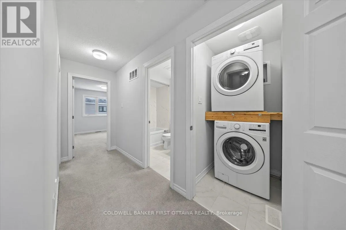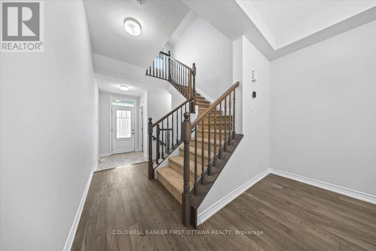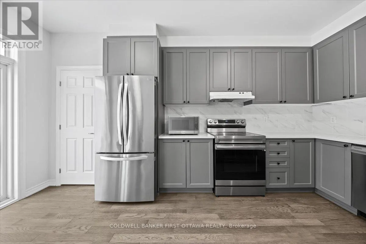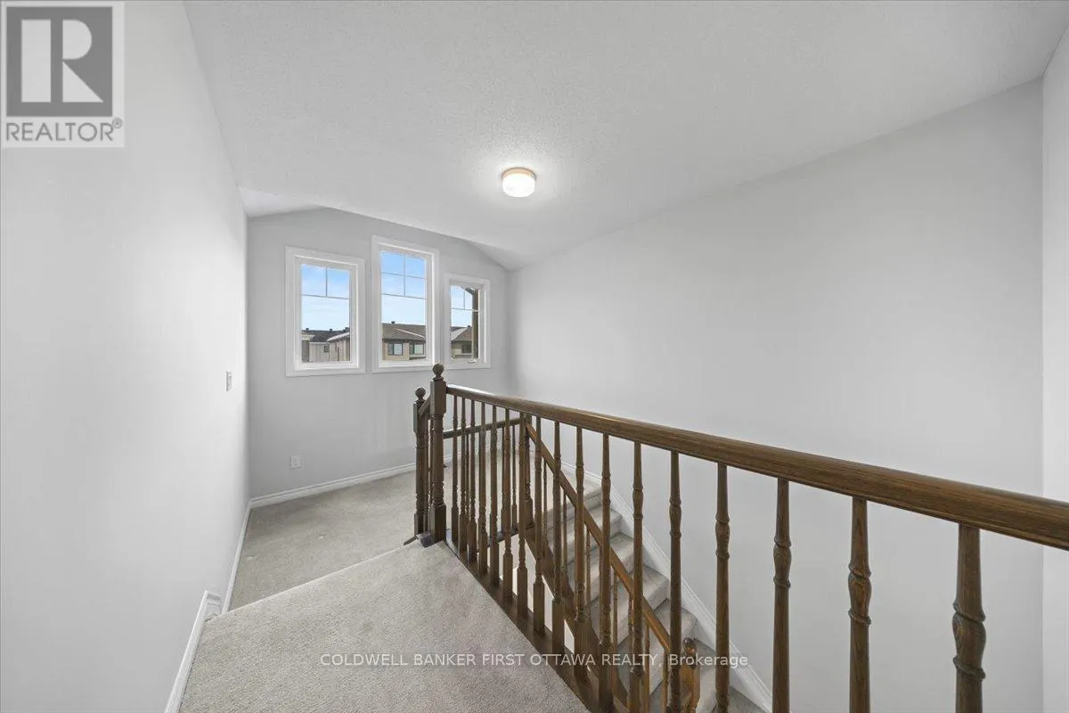 Cross Streets: Borrisokane Road. ** Directions: 509 FLAGSTAFF DR NEPEAN ON K2J 6W1. Refined 3 bedrooms and 2.5 bathrooms modern townhome, ideally located in the desirable Half Moon Bay community. Upon entry, you are welcomed by a generous foyer with a large closet. The main level features a bright, open-concept layout with a spacious great room and dining area, ideal for both everyday living and entertaining.The well-appointed U-shaped eat-in kitchen showcases white cabinetry, stainless steel appliances, contemporary finishes, stylish countertops, a white backsplash, and a convenient breakfast bar, complemented by a sun-filled breakfast nook with patio doors overlooking the rear yard. The second level offers three well-proportioned bedrooms, including an oversized primary suite with a walk-in closet, additional storage space, and a private ensuite featuring a glass walk-in shower. A convenient upper-level laundry room, two additional bedrooms, and a dedicated computer alcove-perfect for a home office-complete this floor.The finished lower level provides valuable additional living space and direct access to the attached garage. Ideally situated just steps from parks, walking trails, shopping, and public transit, this home is nestled within a vibrant, family-friendly neighbourhood. NO Roommates, NO pets above 15lbs and NO Smoking policy. Completed rental application, full credit score report and proof of income requirement. (id:27476)