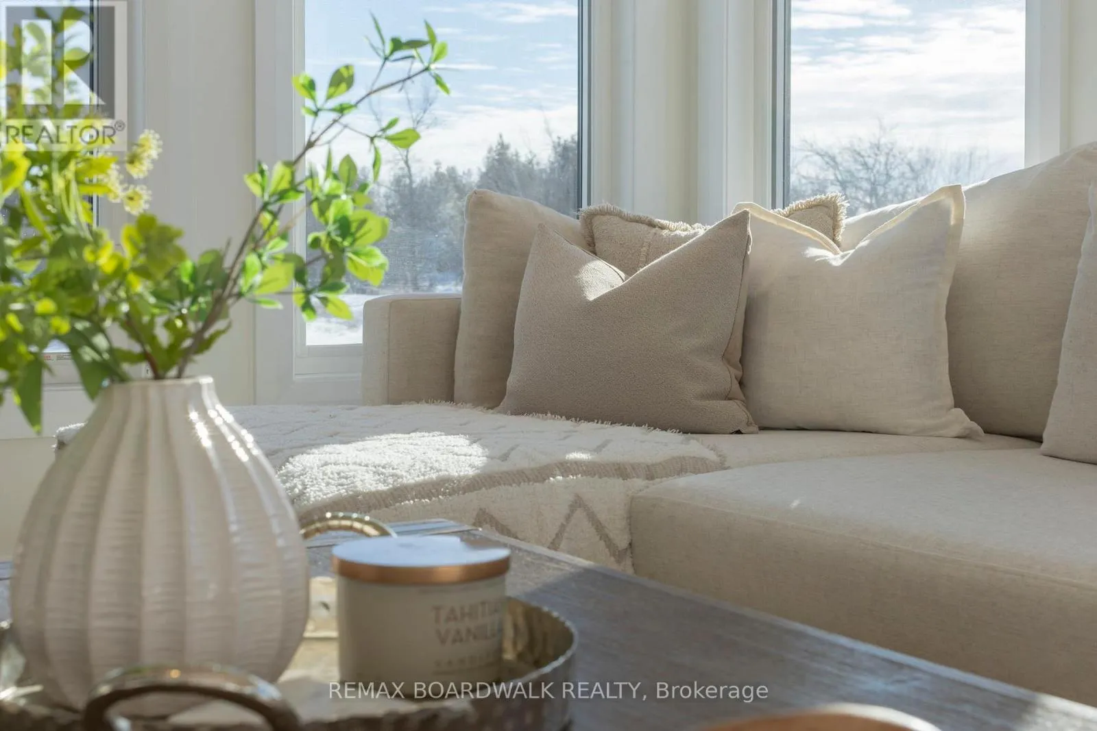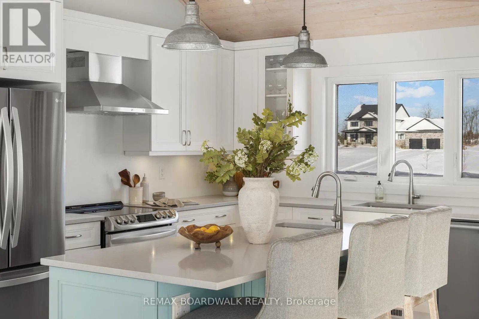 Cross Streets: Flewellyn Road and Dewmont Street. ** Directions: From Flewellyn turn onto Dewmont and then left onto Westar Farm Way. The property will be on your left hand side. This exceptional custom-built reverse walkout bungalow offers luxury, privacy, and timeless design on just under 2 acres of beautifully landscaped grounds. This stunning Linwood home is defined by superior craftsmanship, refined finishes, with special attention paid to every detail. The breathtaking 16-foot vaulted pine ceilings, rich hickory flooring, and striking Douglas fir beams on the main floor, add warmth and architectural presence throughout the home. The open-concept design is both expansive and inviting, filled with natural light and anchored by a showpiece kitchen featuring premium appliances, quartz countertops, and a generous island-perfect for hosting, gathering, and everyday living. The lower level is bright and airy with it's 9-foot ceilings, two additional bedrooms, an unforgettable spa-like bathroom, and a family room with additional space- perfect for a kid's play area, games room, gym, or workshop. Expansive windows throughout, create a seamless connection to the surrounding landscape, enhancing the sense of space and tranquility. Outdoors, enjoy a private, serene setting with newly planted trees, Brownstone rock walls and lush landscaping to feel like your very own peaceful retreat. Only minutes to Stittsville and Carleton Place and conveniently located close to the highway, your commute will be a breeze. This remarkable home delivers a rare opportunity to experience refined living in a beautifully crafted home, in a truly special setting. (id:27476)
