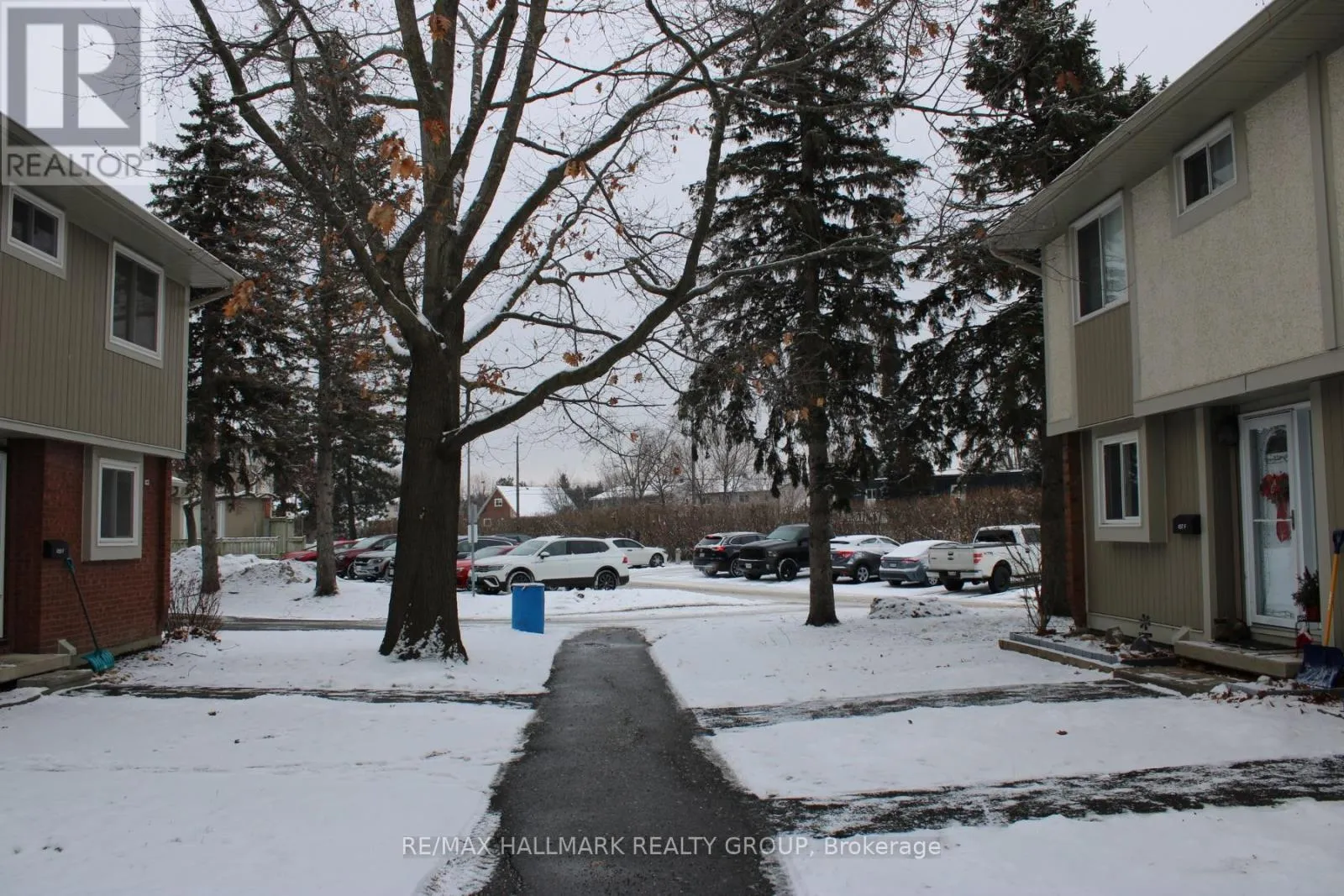Cross Streets: Moodie Dr and Tyrell. ** Directions: across Robertson Rd (loblaws), at Tyrell, turn left into parking lot, left again, follow lane down to the end. Visitor parking just before unit. Location location location... Uber convenient location, close to shopping, transit, parks & schools. Lots of green space. Open-concept kitchen with large breakfast bar overlooking the dining and living area. Sliding doors lead out to the maintenance free backyard with patio & deck. No rear neighbours and lots of mature trees surround the complex. Upstairs has 3 good-size bdrms plus a full bathroom. The basement is fully finished with a large rec room, 3pc bathroom and laundry/storage roo (id:27476)