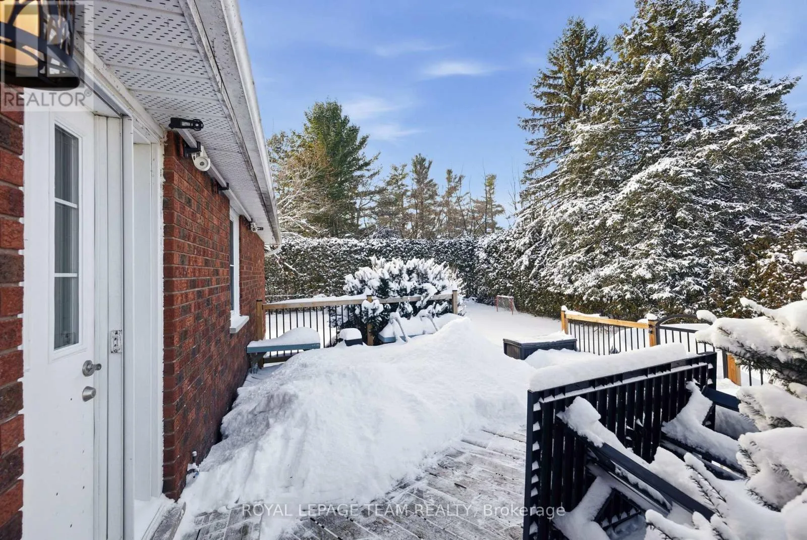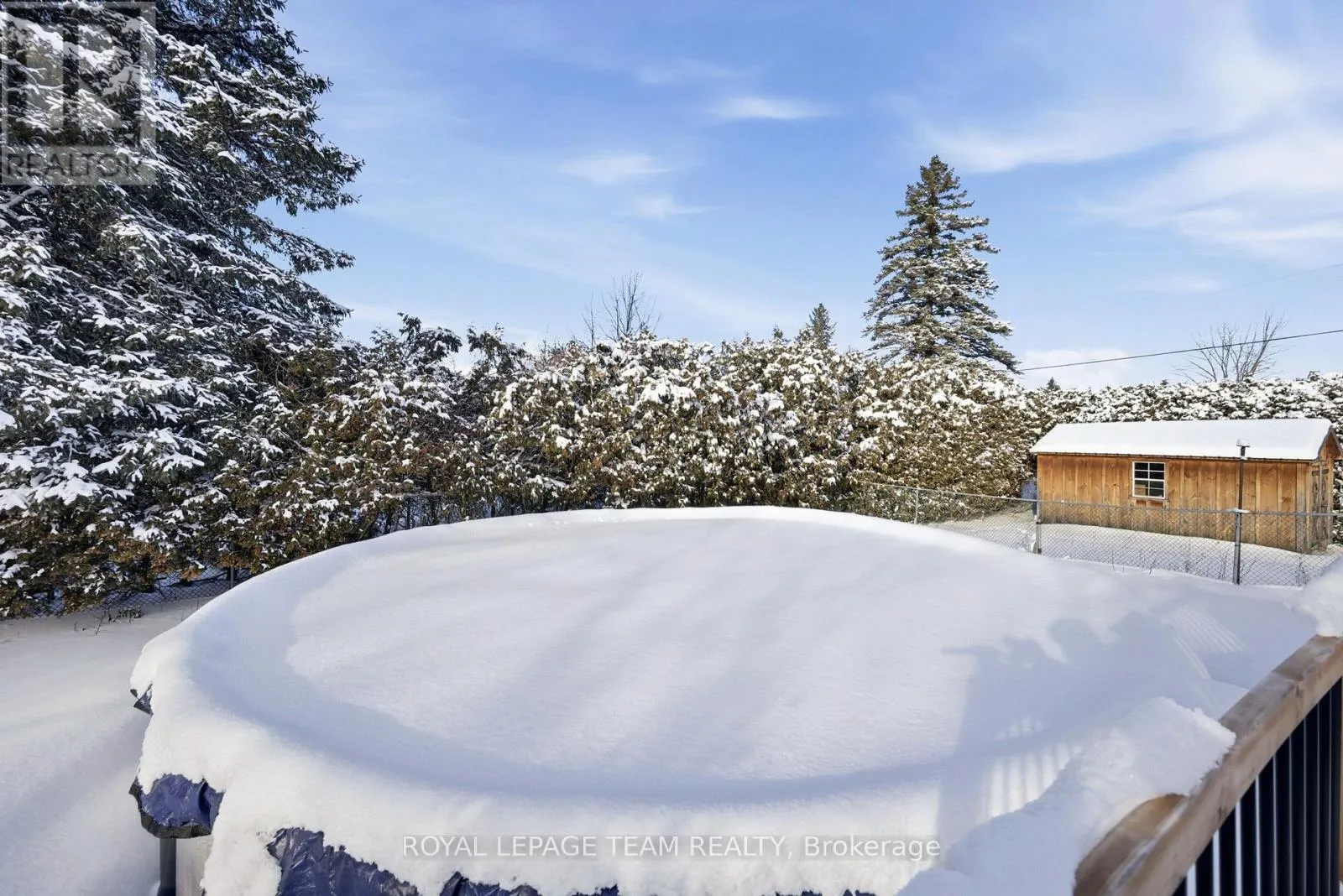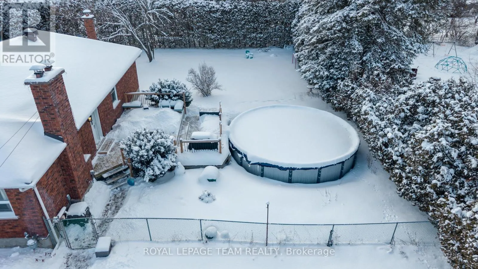 From Osgoode Main St; Right onto Elizabeth St Located on a quiet street in the heart of Osgoode Village, this all-brick bungalow offers exceptional space, privacy, and thoughtful upgrades on a fully private and hedged 140' x 160' (0.525-acre) lot. A bright foyer connects to the backyard, garage while welcoming you into the open concept main floor, where the sun-filled living room sits just off of the chef's kitchen. Hardwood floors flow throughout the whole main level, featuring a cozy family room with a fireplace and a dining area ideal for everyday living and entertaining. The updated kitchen is the heart of the home, showcasing granite countertops, a large island, high-end stainless steel appliances w/ gas stove, extended cabinetry, recessed lighting, and ample storage and prep space. The main floor offers a spacious primary bedroom, two additional family bedrooms, a 4-piece main bath. The finished lower level expands the living space with a large recreation room featuring an extra family room and bonus space, a fourth bedroom, a full 3-pce bathroom, laundry area, updated egress windows, and plenty of storage-ideal for guests, teens, or a home office. Step outside to enjoy the massive, private backyard, designed for entertaining with a raised deck, a separately fenced 24' heated salt-water pool (2022), and expansive hedged lawn offering complete privacy. Additional highlights include a paved driveway, 10' x 16' Crawford shed, 2nd shed and an oversized (22'2" x 24'5") two-car garage with backyard access and inside entry. Extensively updated for peace of mind, the home features natural gas heating, new Lennox A/C (2022), hot water tank (2025), electrical with 200-amp service plus 125-amps auxiliary panel, roof (2023), 24' Salt Water Pool with Thermowalls & Heater from Poolerama (2022), Paved driveway & landscaping and fresh paint (2025-2026). This move-in-ready home offers comfort, functionality, walkability to all your local amenities and long-term value in a sought-after village setting. (id:27476)