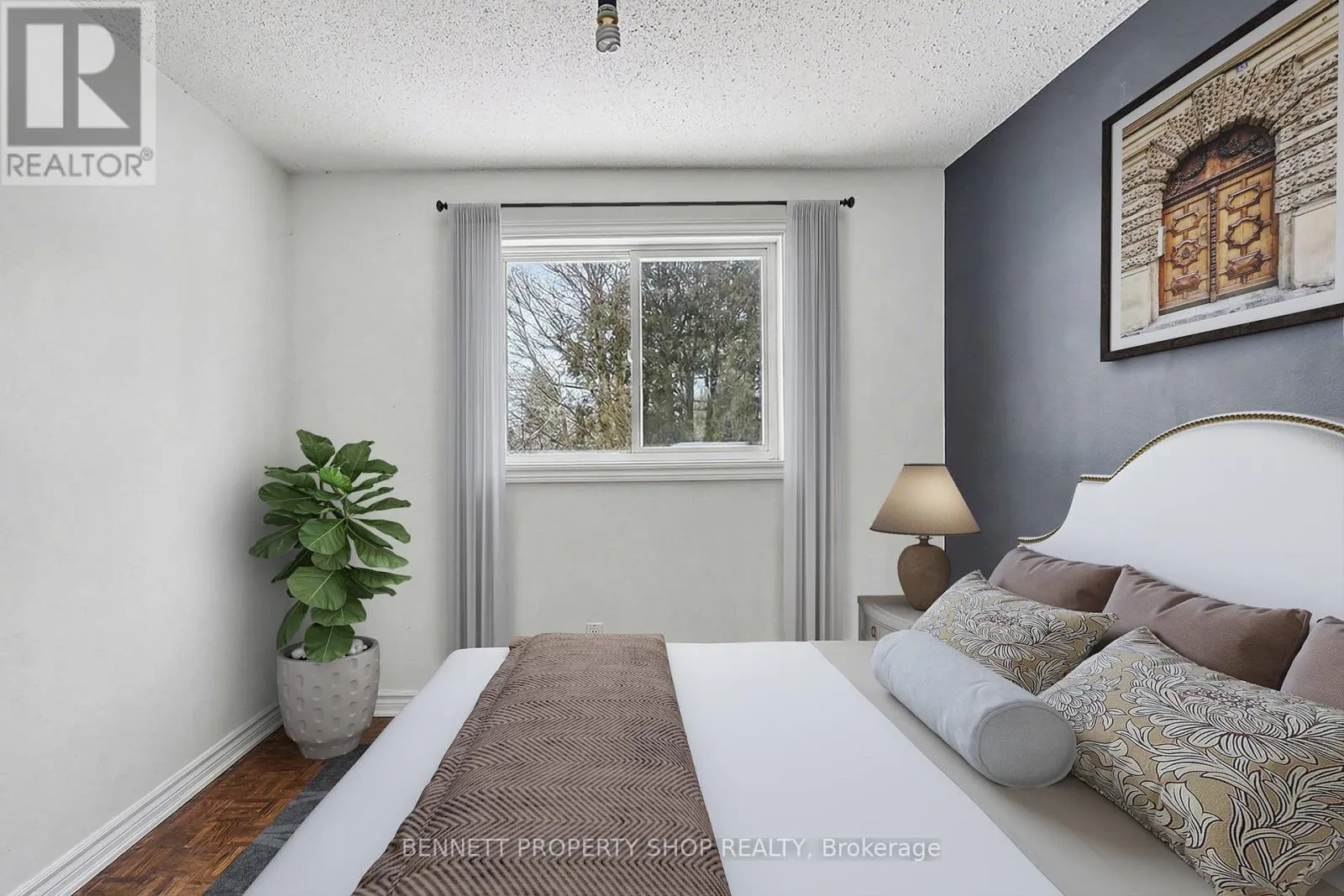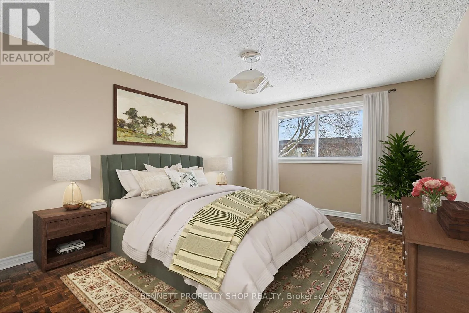 Cross Streets: Ridgemount Private & Wolmsley Crescent. ** Directions: Merival Road to Viewmount Drive to Glenridge Road to Wolmsley Crescent to Ridgepark Private. Well-maintained end-unit townhome located in the established neighborhood of Crestview, facing single-family homes and close to shopping, transit, and schools. Original parquet flooring throughout adds warmth and character. The main level offers a functional eat-in kitchen with granite countertops, stainless steel appliances, a breakfast bar, and ample storage. Bright living and dining areas feature an open, connected layout ideal for everyday living. The second level includes three well-proportioned bedrooms, a large linen closet, and a full bathroom with neutral finishes. A fully finished lower level provides additional living space suitable for a family room, home office, or recreation area, along with a laundry room offering extra storage. The private rear yard offers a comfortable outdoor space for relaxing or entertaining. Just a five-minute walk to a primary school, public school, tennis courts, grocery stores, and a gym, making this a convenient and family-friendly location. Some photos are digitally enhanced. (id:27476)