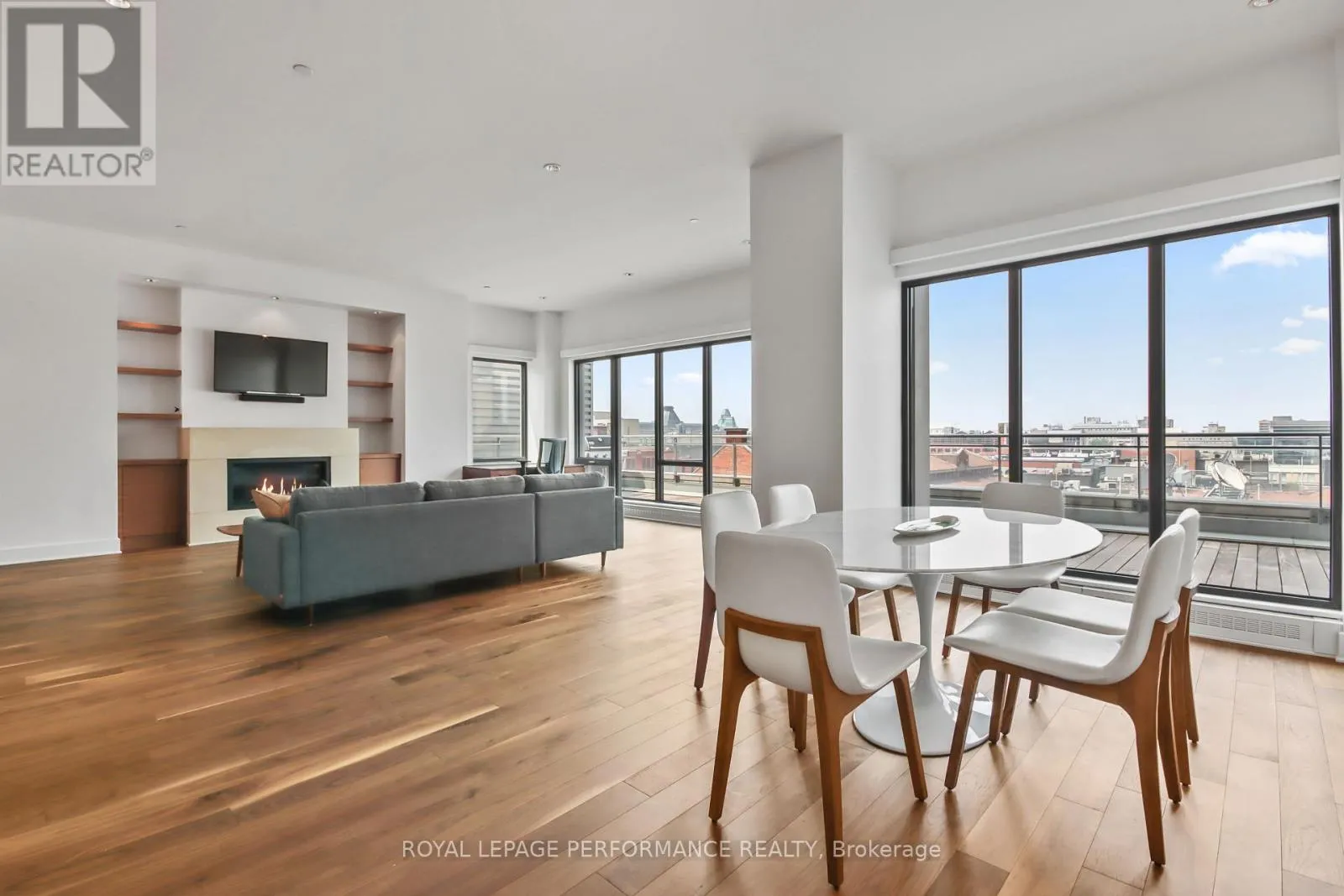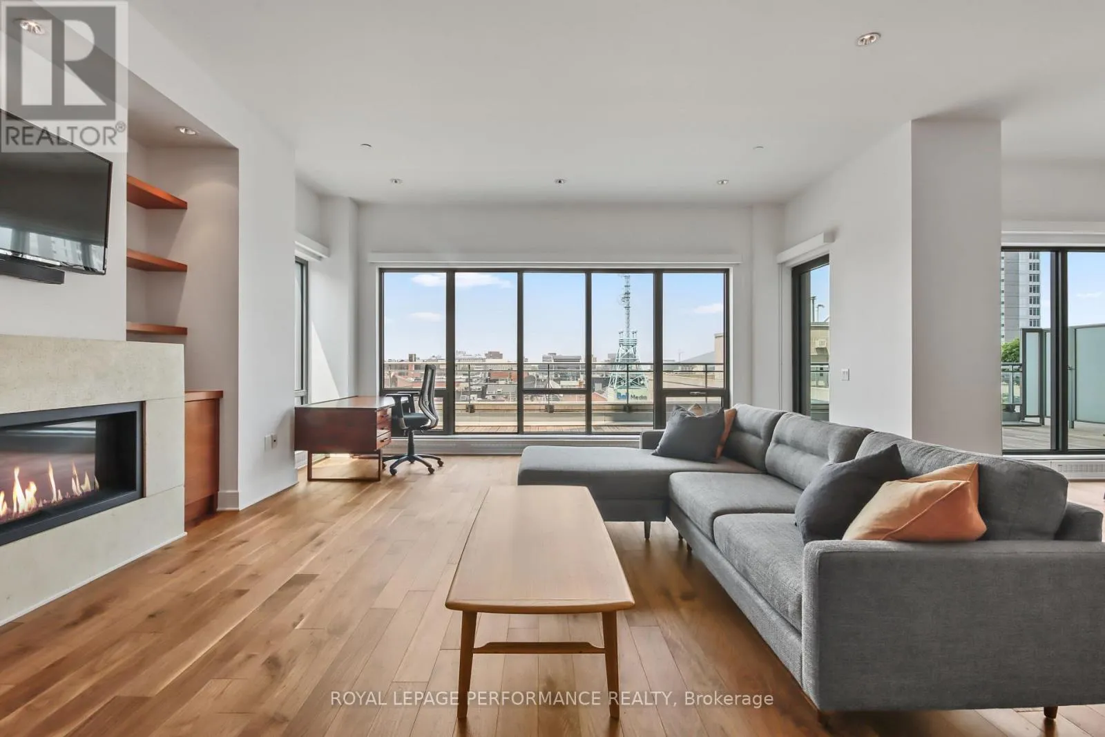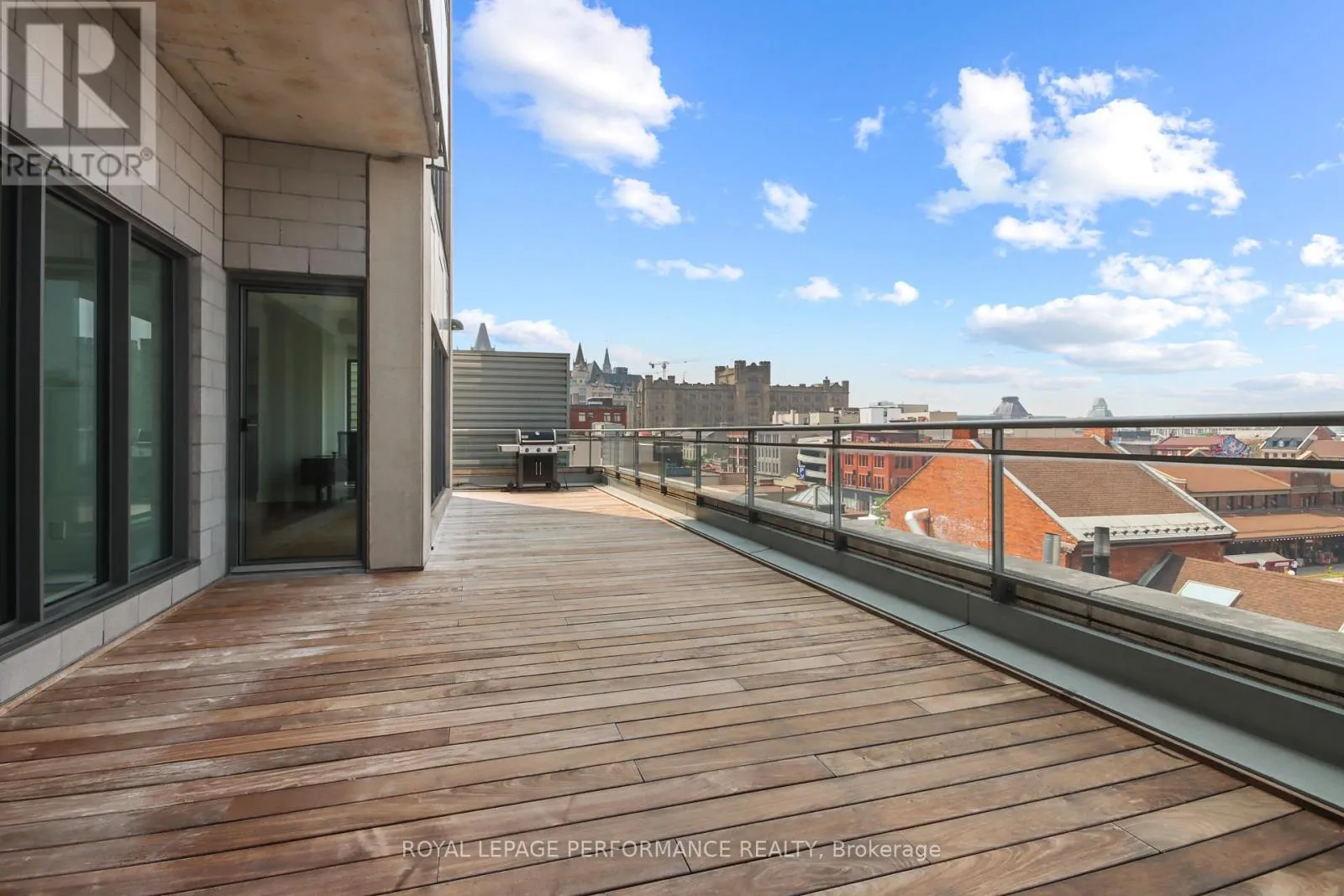 Cross Streets: Sussex. ** Directions: Susses to east on George. Stunning oversized Executive condo in the heart of Ottawa's Byward Market. Soaring ceilings, huge windows, immmaculate walnut floors, a gas fireplace and a massive private outdoor deck set this unit apart from most others. Offered with or without furniture, this apartment is ideal for those seeking a super stylish apartment with a gym, pool, sauna, and party room, all with 24 hour security and concierge. Steps to shopping, restaurants and coffee shops, Parliament and LRT. Very unique and rare offering. (id:27476)