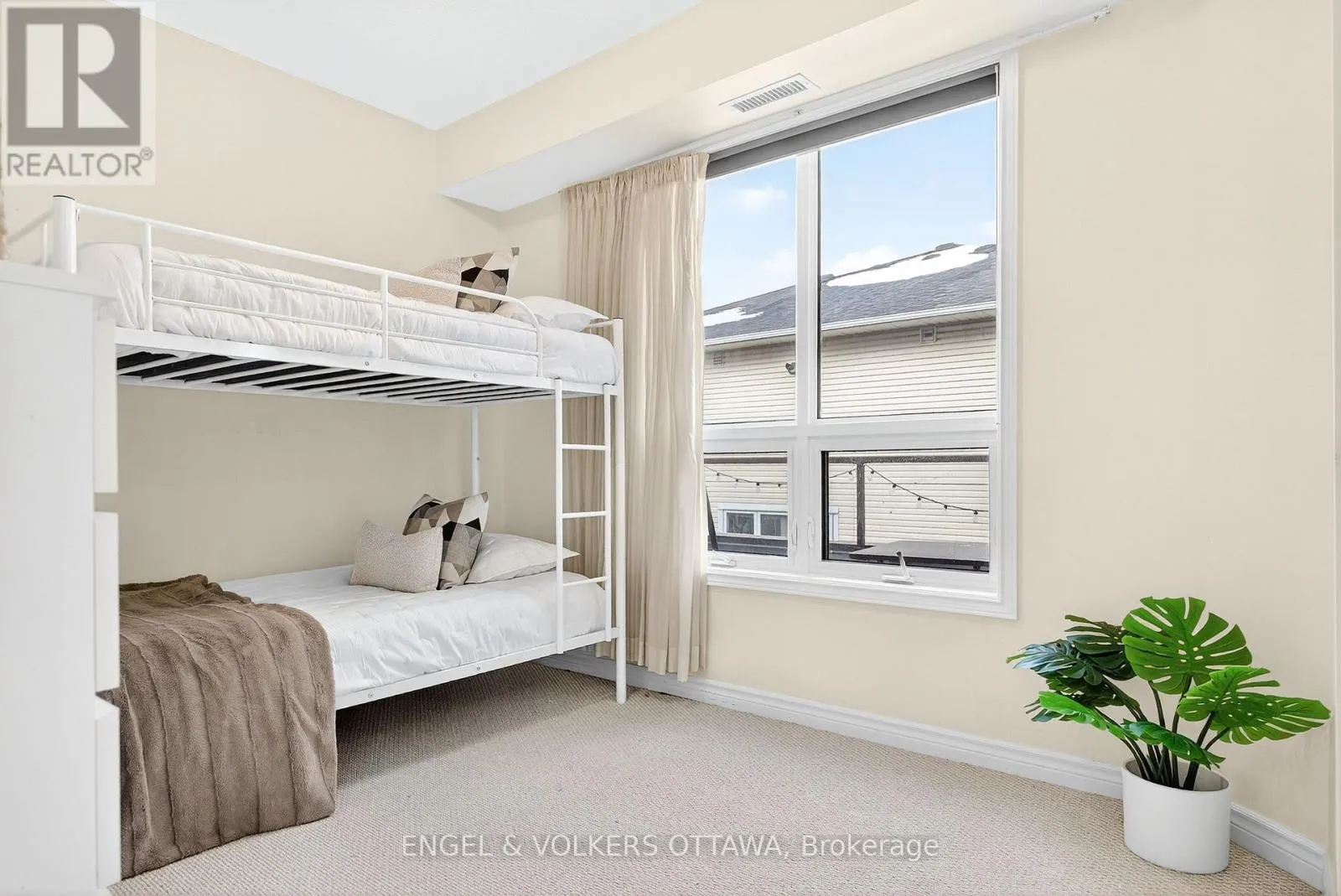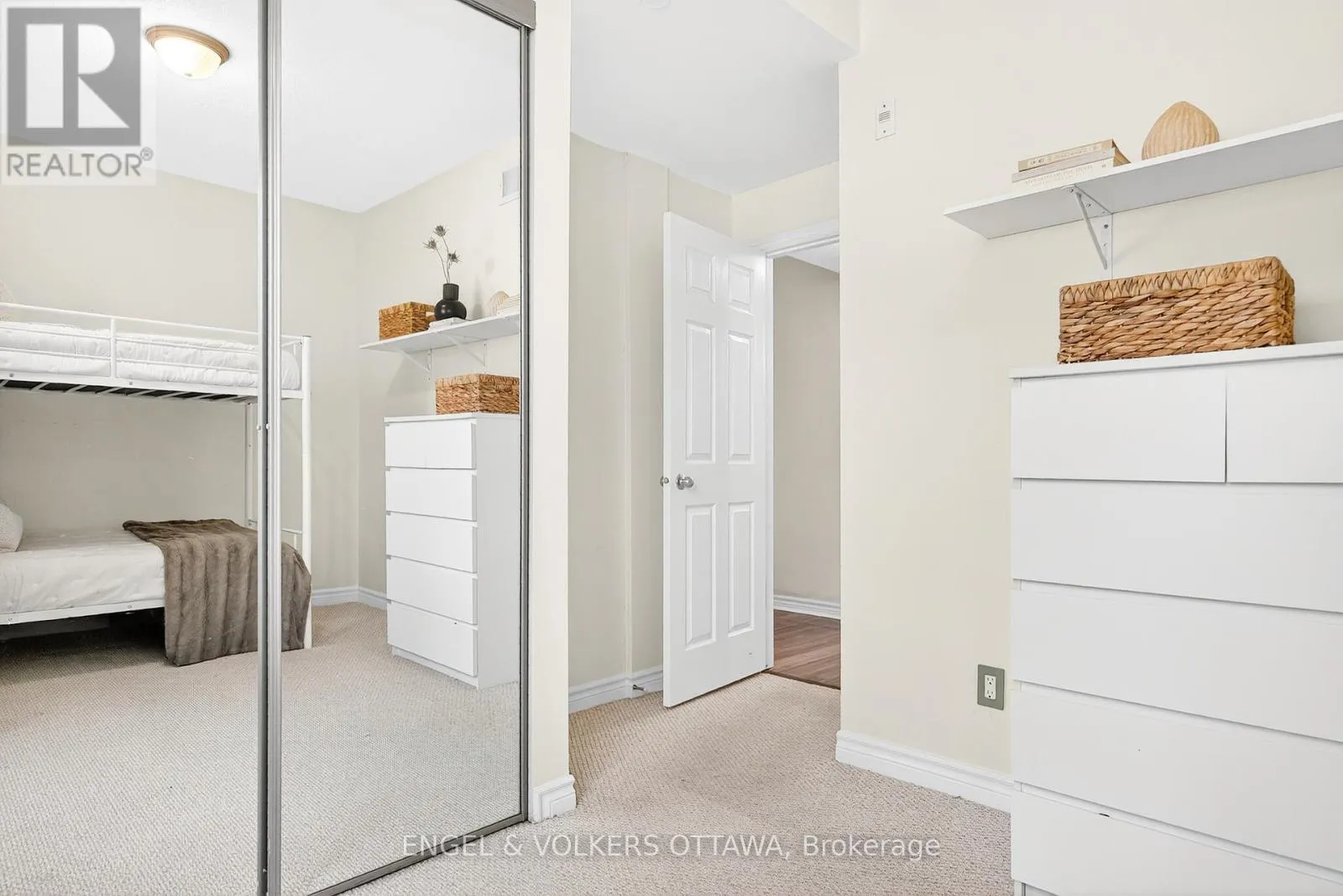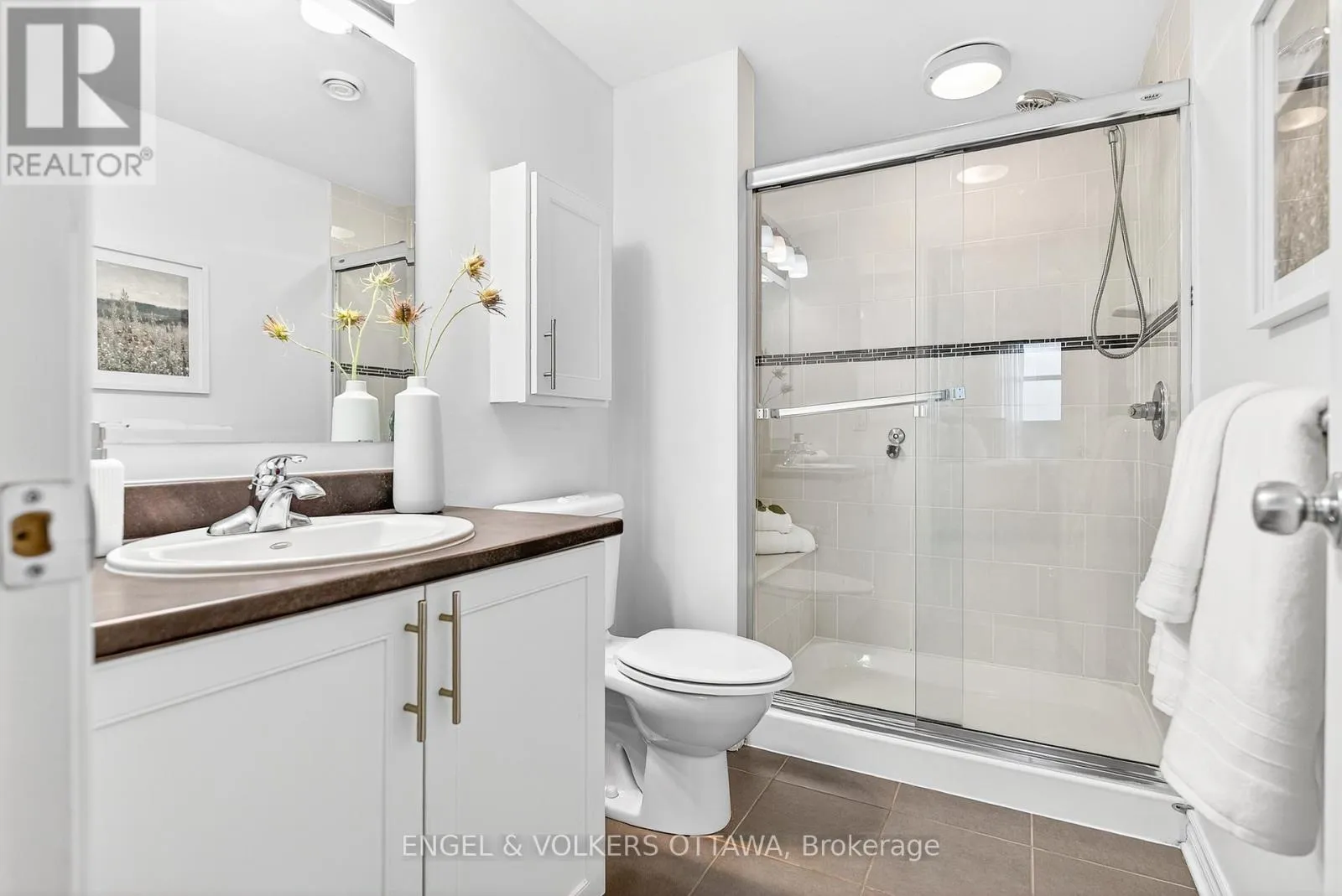 Cross Streets: From Longfields Dr & Chapman Mills Dr. ** Directions: From Longfields Dr turn onto Chapman Mills Dr. Located in the heart of Chapman Mills, this bright and thoughtfully designed Bravo model 2-bed, 2-bath condo spans approximately 1,038 sq. ft. and features a large walkout terrace. The main living area is warm and inviting, with a seamless flow between the dining, kitchen, and living spaces. Oversized windows fill the rooms with natural light, while the updated kitchen features white shaker cabinetry, granite countertops, stainless-steel appliances, and a peninsula with seating that opens into the dining area with direct access to the terrace. With wood-plank flooring and a clear glass railing, this unit's outdoor space is perfect for morning coffee, unwinding with a book, or enjoying views of the surrounding neighbourhood while dining. The primary bedroom, with a tray ceiling detail and plush carpeting, features ample closet space and leads to an ensuite with a walk-in shower. The well-proportioned secondary bedroom features a large picture window and mirrored closet doors, making it ideal as a children's or guest room. A second full bathroom, located near the unit's entrance, features tiled flooring and a tub/shower combo. Just off the main lobby, access to the garage space and a storage locker make unpacking the car a breeze! With everyday amenities just minutes away, including shopping, grocery stores, restaurants, public transit, and cafés, this home is ideal for both downsizers and young professionals in one of Barrhaven's most desirable neighbourhoods! (id:27476)