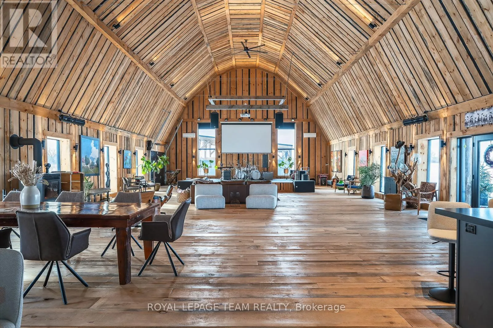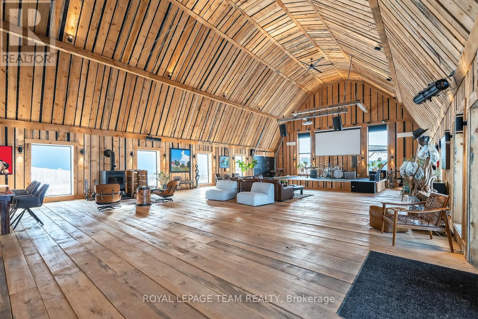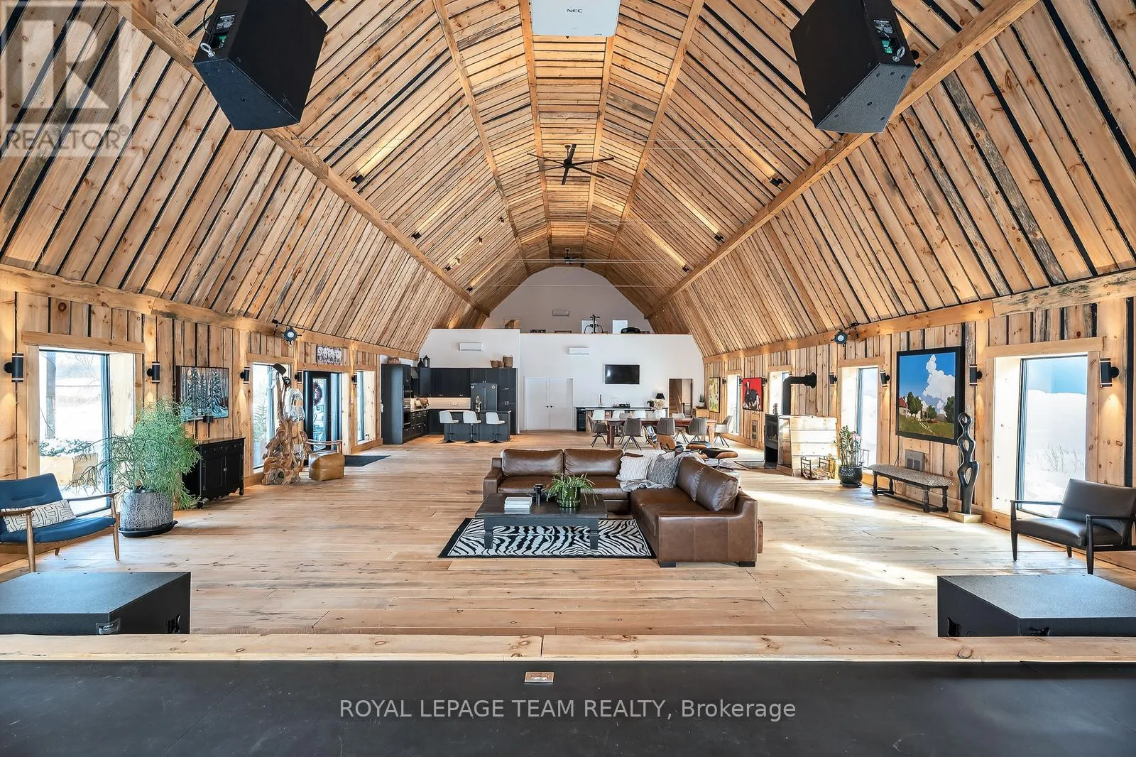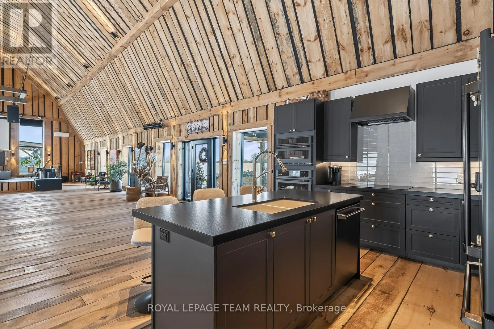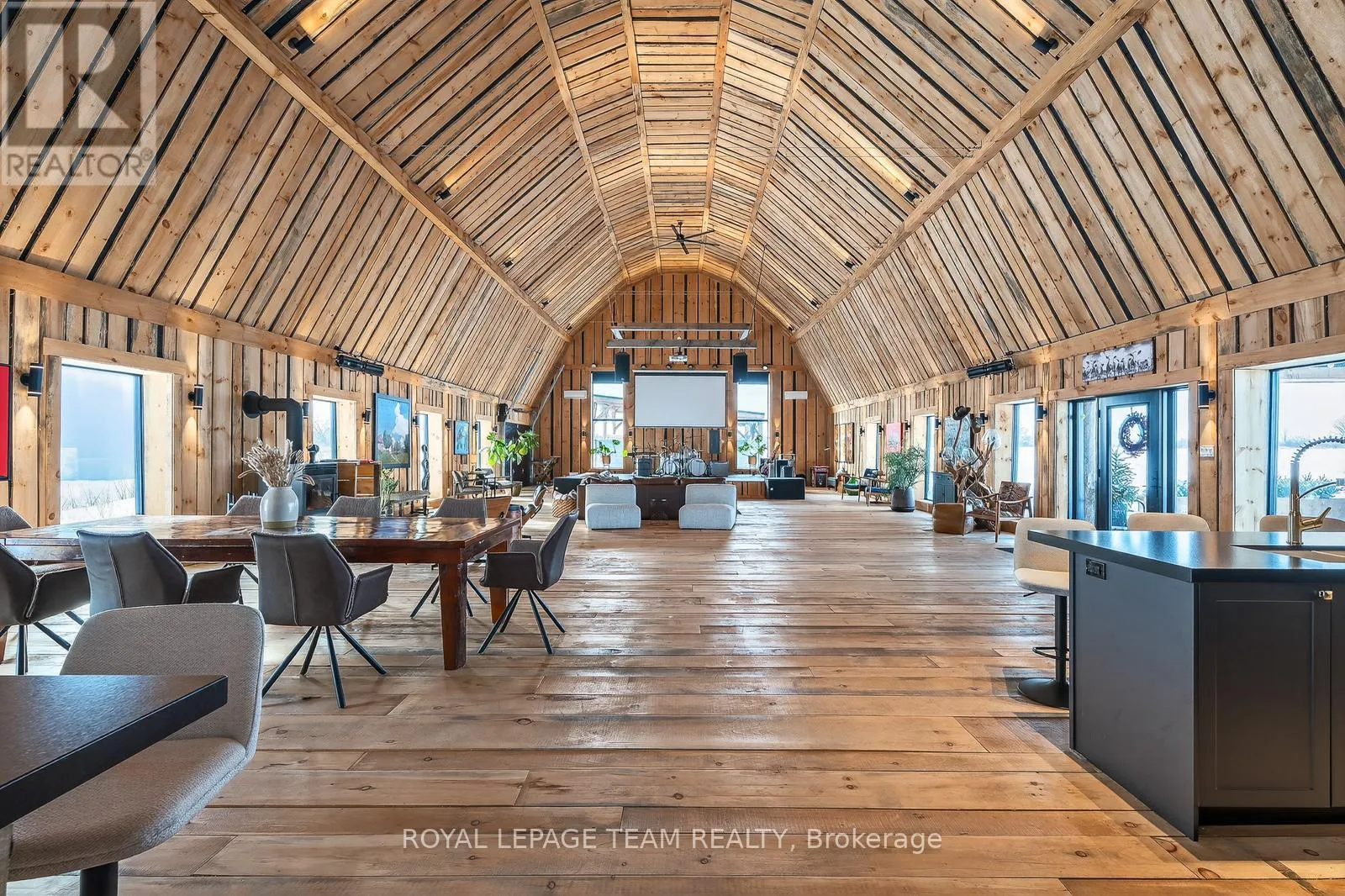 Cross Streets: Richardson Side Road at Huntmar. ** Directions: Terry Fox Drive to Richardson Side Road to Huntmar Drive. Unforgettable! A rare and remarkable barndominium offering monumental scale, moody elegance, and undeniable architectural presence. This extraordinary home reimagines barn chic through contemporary design, featuring a breathtaking Great Room with soaring domed ceiling, rich wood detailing, and dramatic lighting that create a cathedral-like atmosphere. The kitchen is striking and refined, with sleek black cabinetry, gold hardware, and a large island with farmhouse sink. The Great Room also features a chic bar, wood-burning stove, and oversized garage-style doors for flexible indoor-outdoor flow. For luxurious rest: the main-level primary offers privacy and comfort, while a loft, two additional bedrooms, and beautifully finished full bath complete the upper level. A truly once-in-a-lifetime residential rental opportunity. (id:27476)