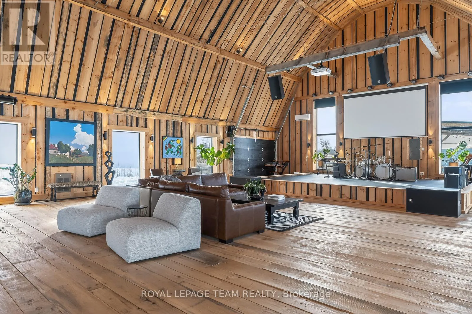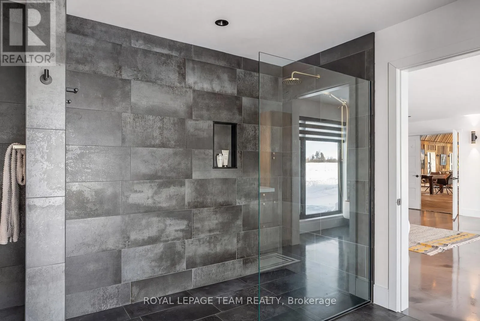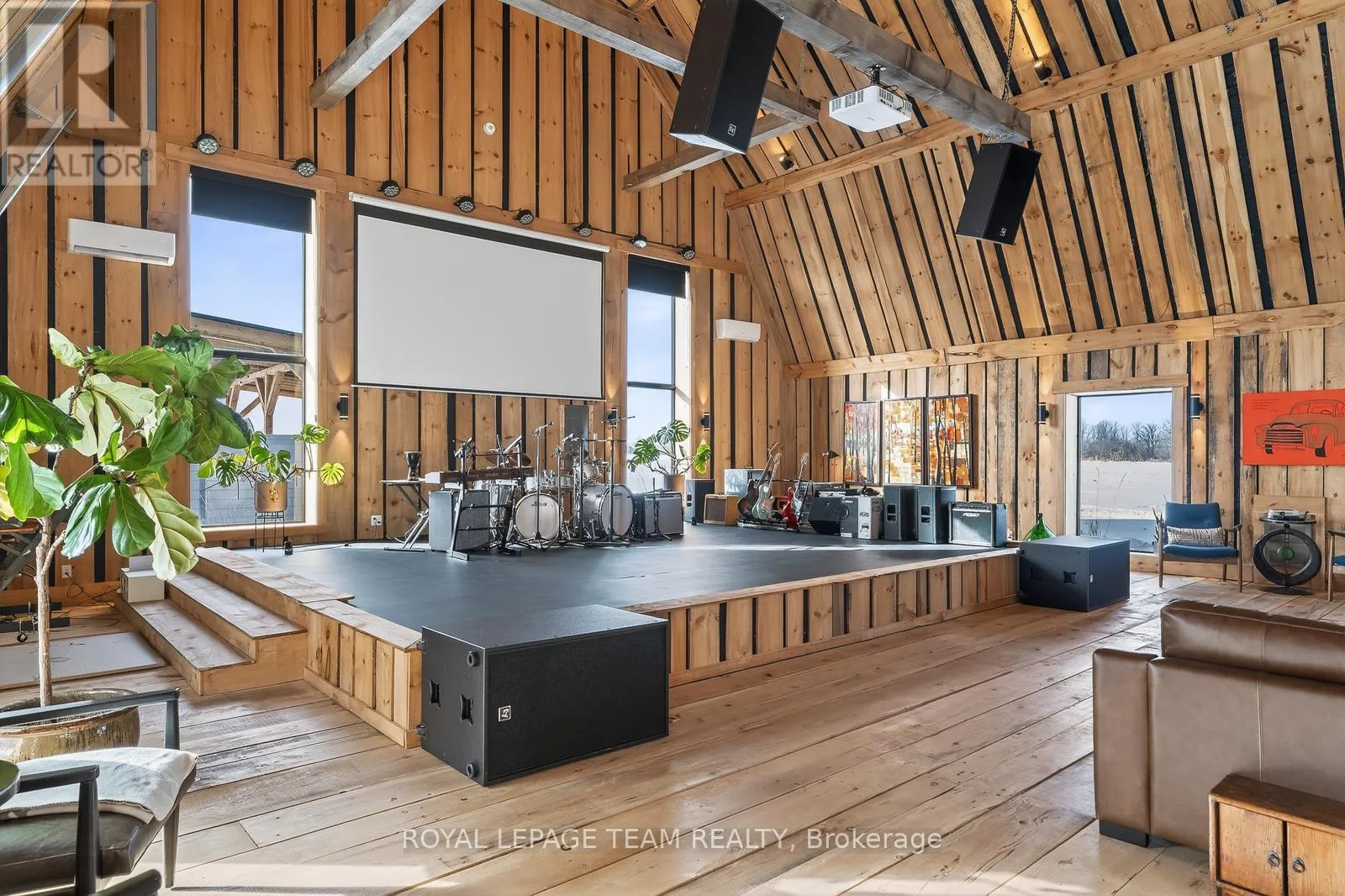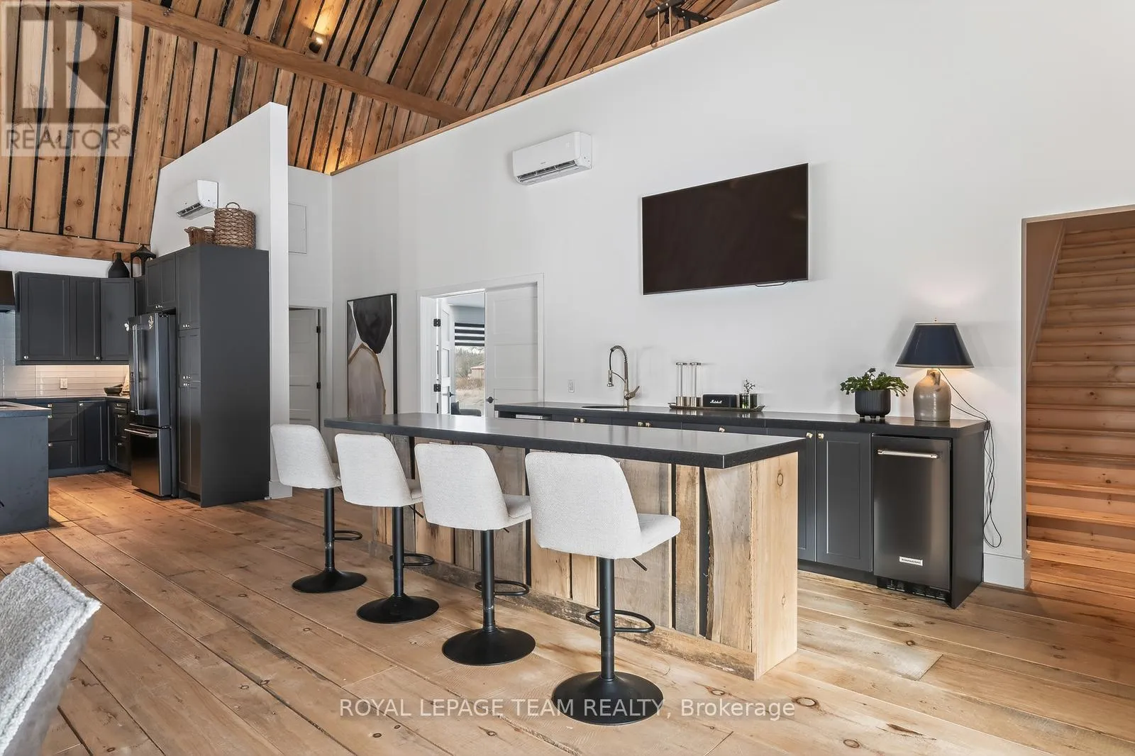 Cross Streets: Richardson Side Road at Huntmar. ** Directions: Terry Fox Drive to Richardson Side Road to Huntmar Drive. Unforgettable! A rare and remarkable barndominium offering monumental scale, moody elegance, and undeniable architectural presence. This extraordinary home reimagines barn chic through contemporary design, featuring a breathtaking Great Room with soaring domed ceiling, rich wood detailing, and dramatic lighting that create a cathedral-like atmosphere. The kitchen is striking and refined, with sleek black cabinetry, gold hardware, and a large island with farmhouse sink. The Great Room also features a chic bar, wood-burning stove, and oversized garage-style doors for flexible indoor-outdoor flow. For luxurious rest: the main-level primary offers privacy and comfort, while a loft, two additional bedrooms, and beautifully finished full bath complete the upper level. A truly once-in-a-lifetime residential rental opportunity. (id:27476)
