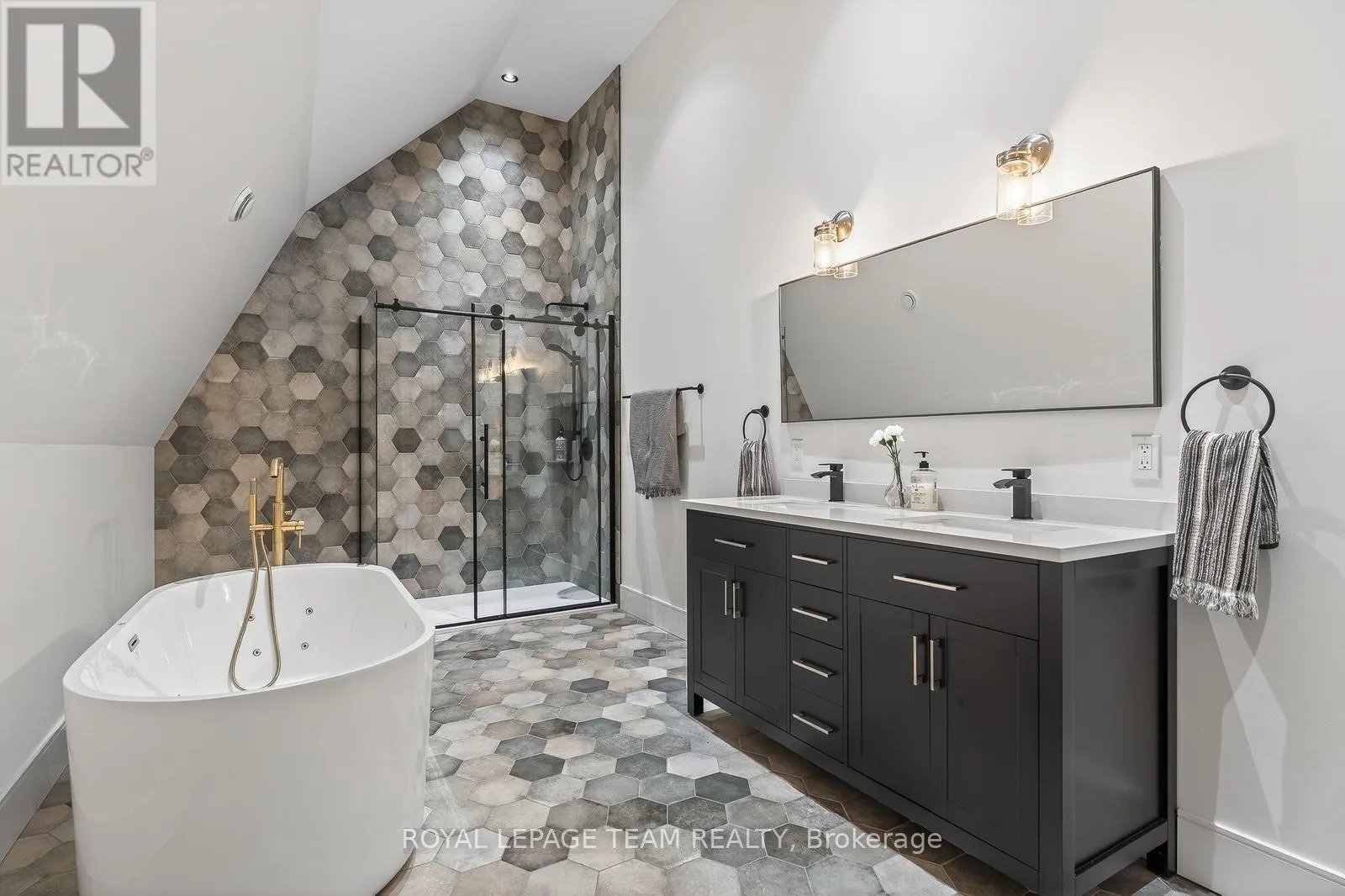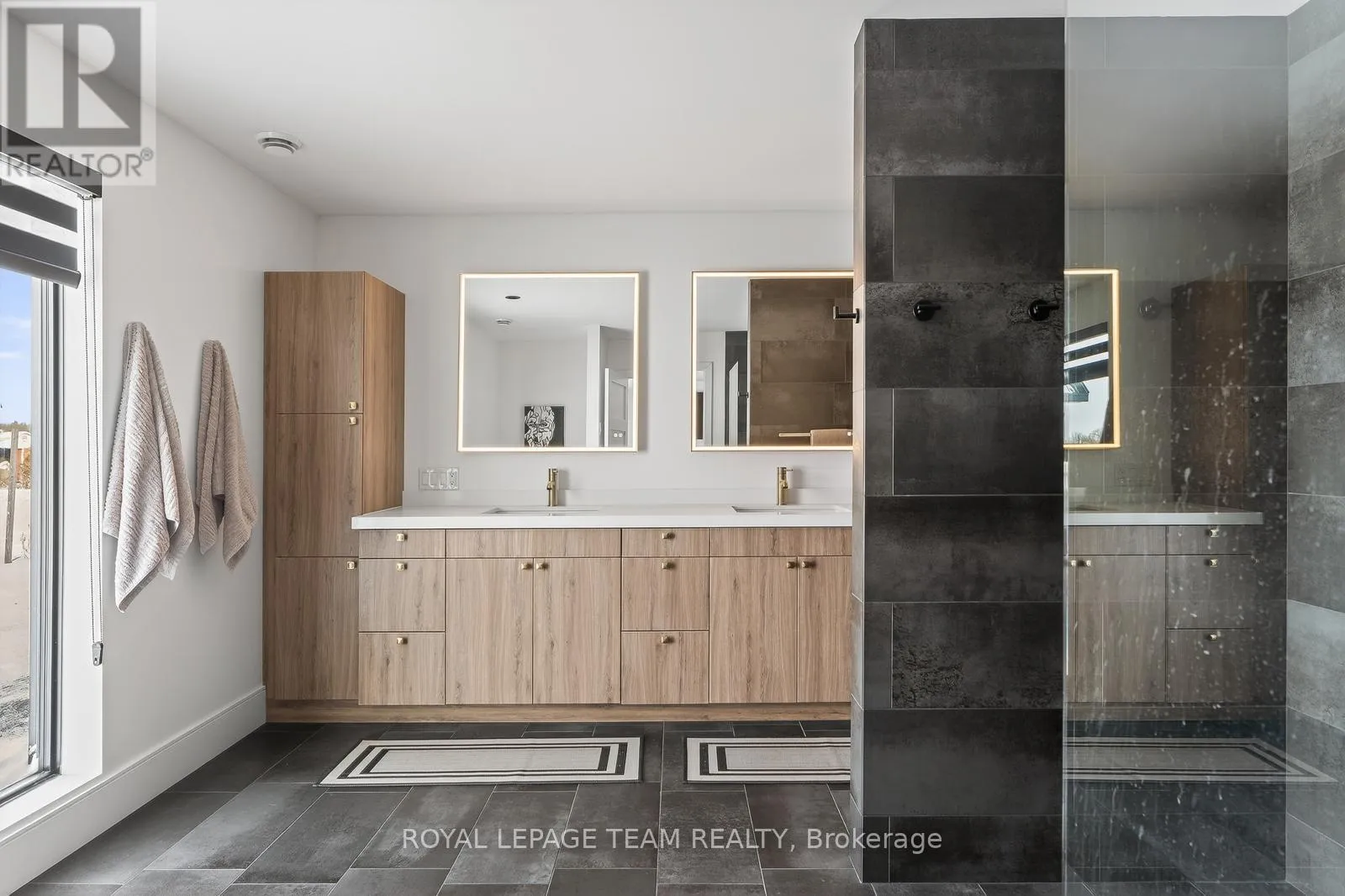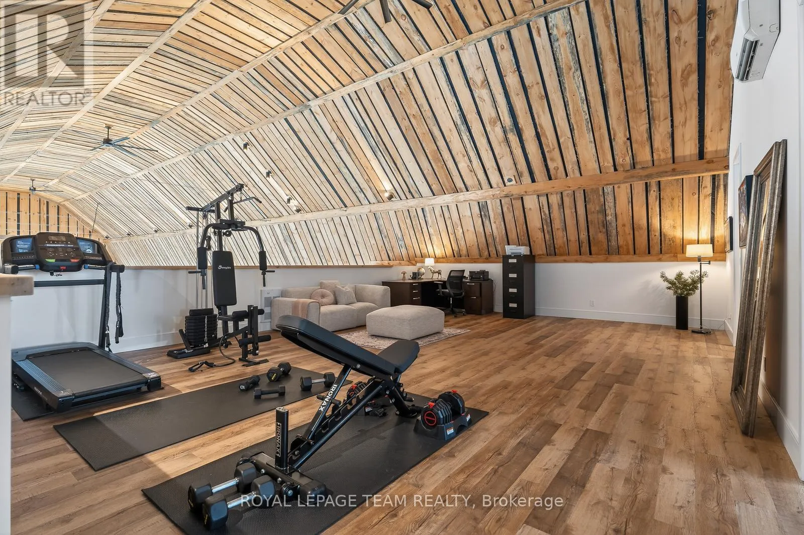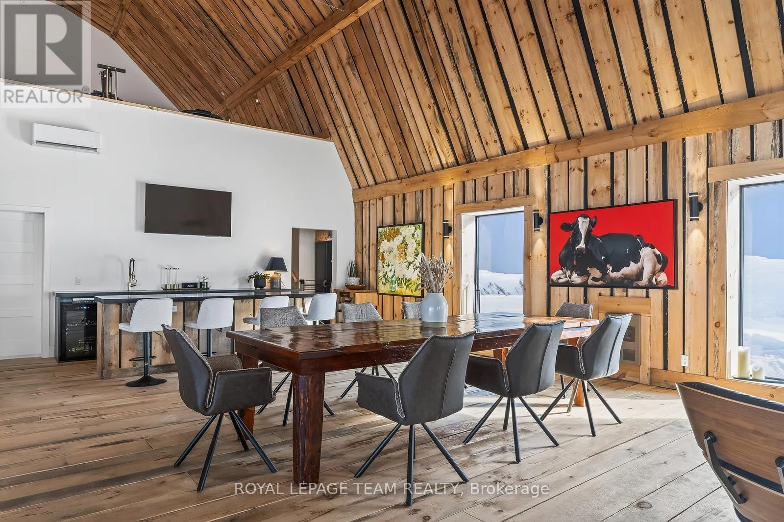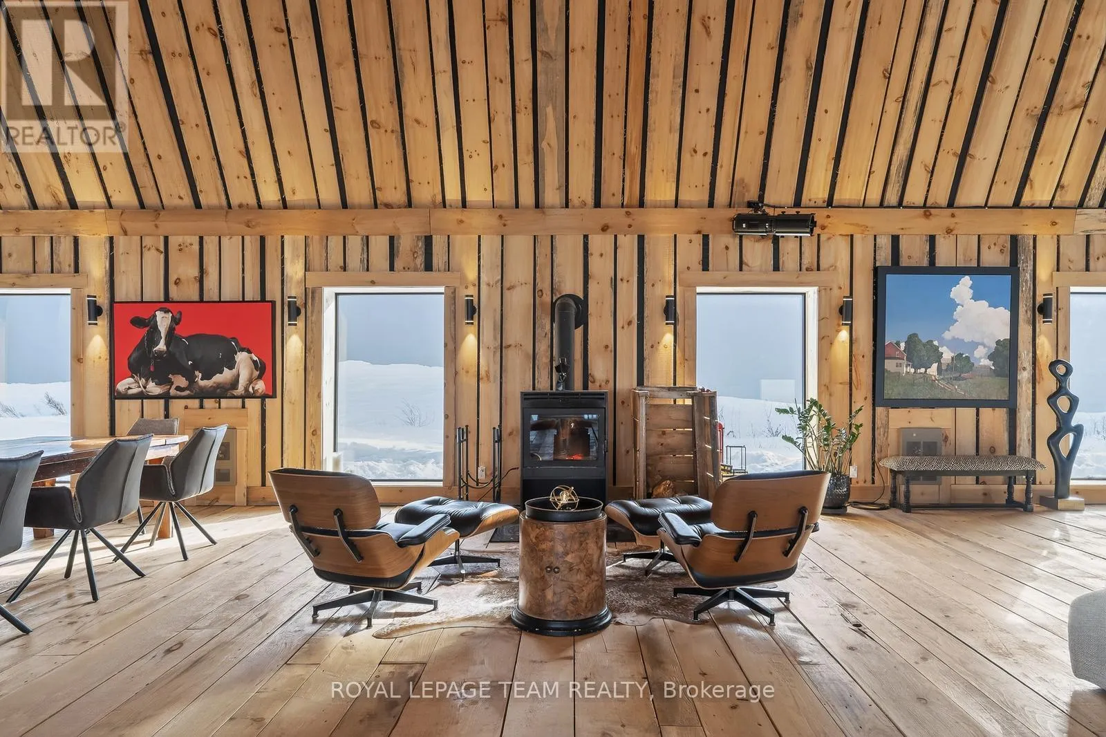 Cross Streets: Richardson Side Road at Huntmar. ** Directions: Terry Fox Drive to Richardson Side Road to Huntmar Drive. Unforgettable! A rare and remarkable barndominium offering monumental scale, moody elegance, and undeniable architectural presence. This extraordinary home reimagines barn chic through contemporary design, featuring a breathtaking Great Room with soaring domed ceiling, rich wood detailing, and dramatic lighting that create a cathedral-like atmosphere. The kitchen is striking and refined, with sleek black cabinetry, gold hardware, and a large island with farmhouse sink. The Great Room also features a chic bar, wood-burning stove, and oversized garage-style doors for flexible indoor-outdoor flow. For luxurious rest: the main-level primary offers privacy and comfort, while a loft, two additional bedrooms, and beautifully finished full bath complete the upper level. A truly once-in-a-lifetime residential rental opportunity. (id:27476)