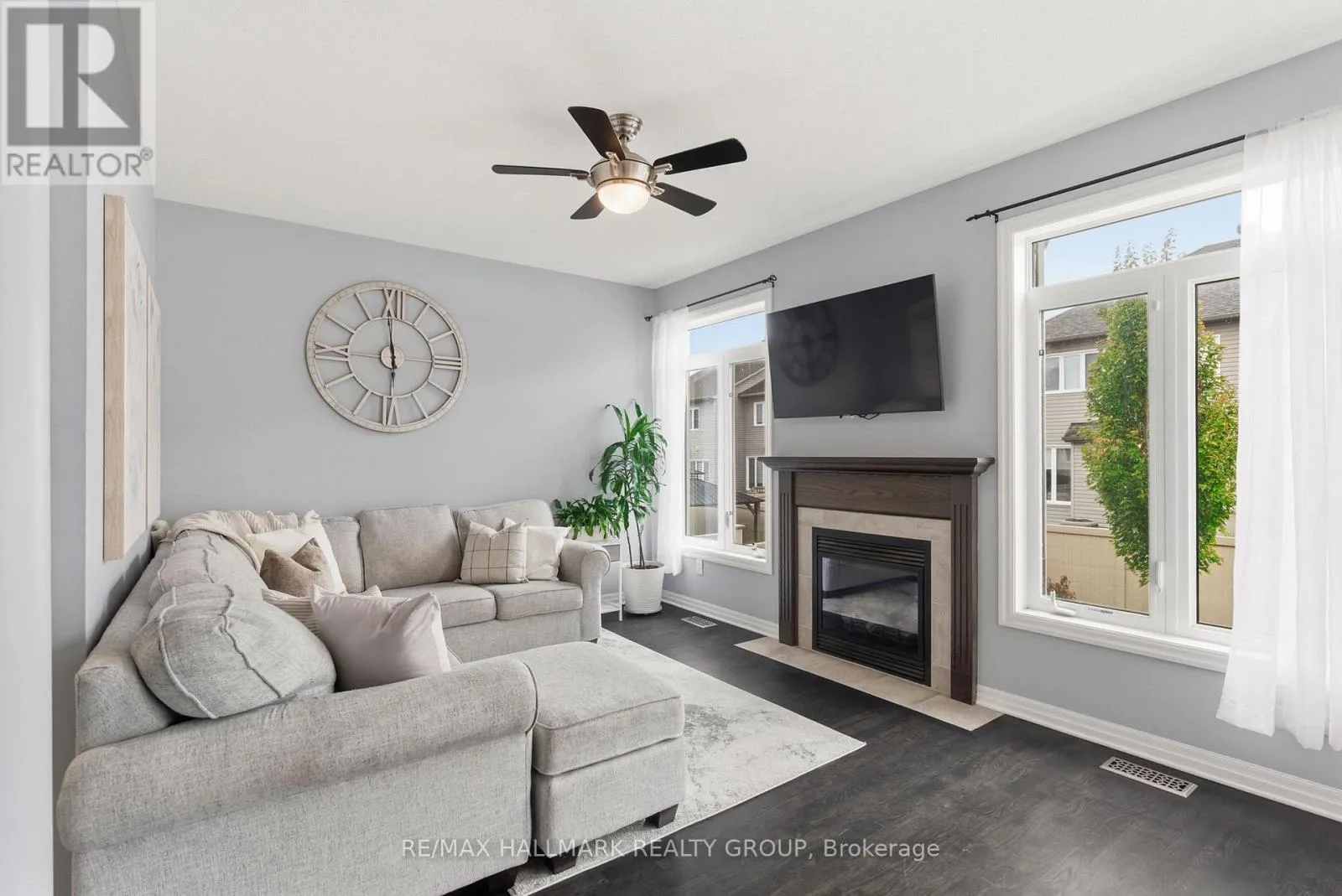 Cross Streets: Fernside St & Sunburst St. ** Directions: Take Bank St south to Rotary Way. Turn right on Fernside St. Turn left on Sunburst St. Experience exceptional value in this tastefully upgraded 4-bedroom, 3-bathroom home sits in the heart of Findlay Creek - a vibrant, family-friendly community known for its parks, schools, and easy access to everyday amenities. The main level is open and inviting, featuring 9-foot ceilings, rich hardwood floors, and an ideal layout for both family living and entertaining. The stylish kitchen boasts a granite island, updated tile, and a seamless flow into the family room, where a gas fireplace creates a warm, welcoming centrepiece. A convenient powder room and practical mudroom entry complete the main floor.Upstairs, you'll find four spacious bedrooms, including a bright primary suite with a private ensuite and walk-in closet. The second full bathroom has been tastefully upgraded, and a well-placed laundry room adds everyday convenience. Hardwood flooring continues throughout the upper level, complemented by new carpet on the staircase for a refined touch.The finished lower level expands your living space with large windows, a second family room, a versatile den or office, ample storage, and a rough-in for a future bathroom - offering great flexibility for guests or growing families.Step outside to a fully fenced backyard with a spacious patio, perfect for outdoor dining, play, or summer entertaining.Move-in ready and thoughtfully maintained, this home combines comfort, functionality, and timeless style - an ideal choice for families looking to settle in one of Ottawa's most desirable communities! Pre-inspection on file. (id:27476)