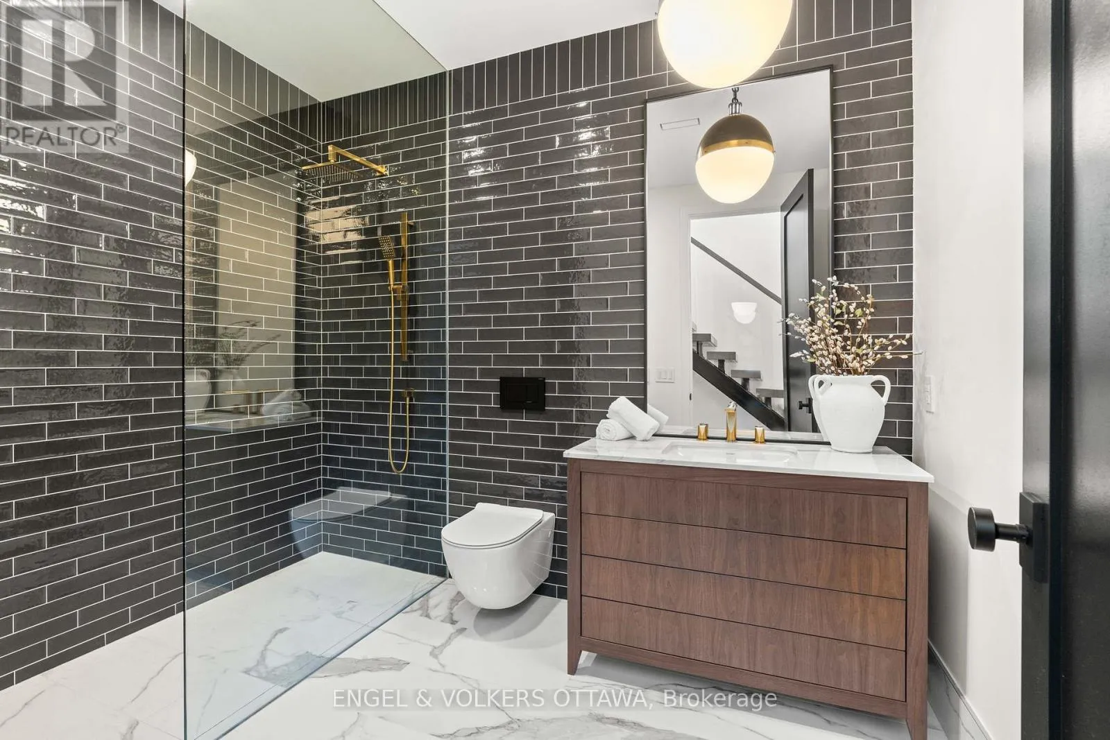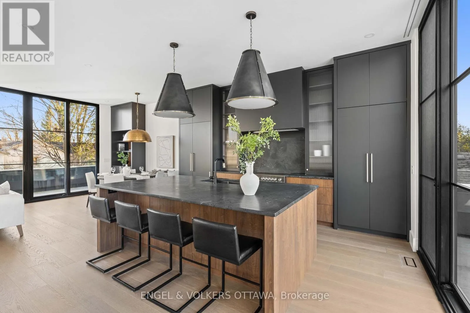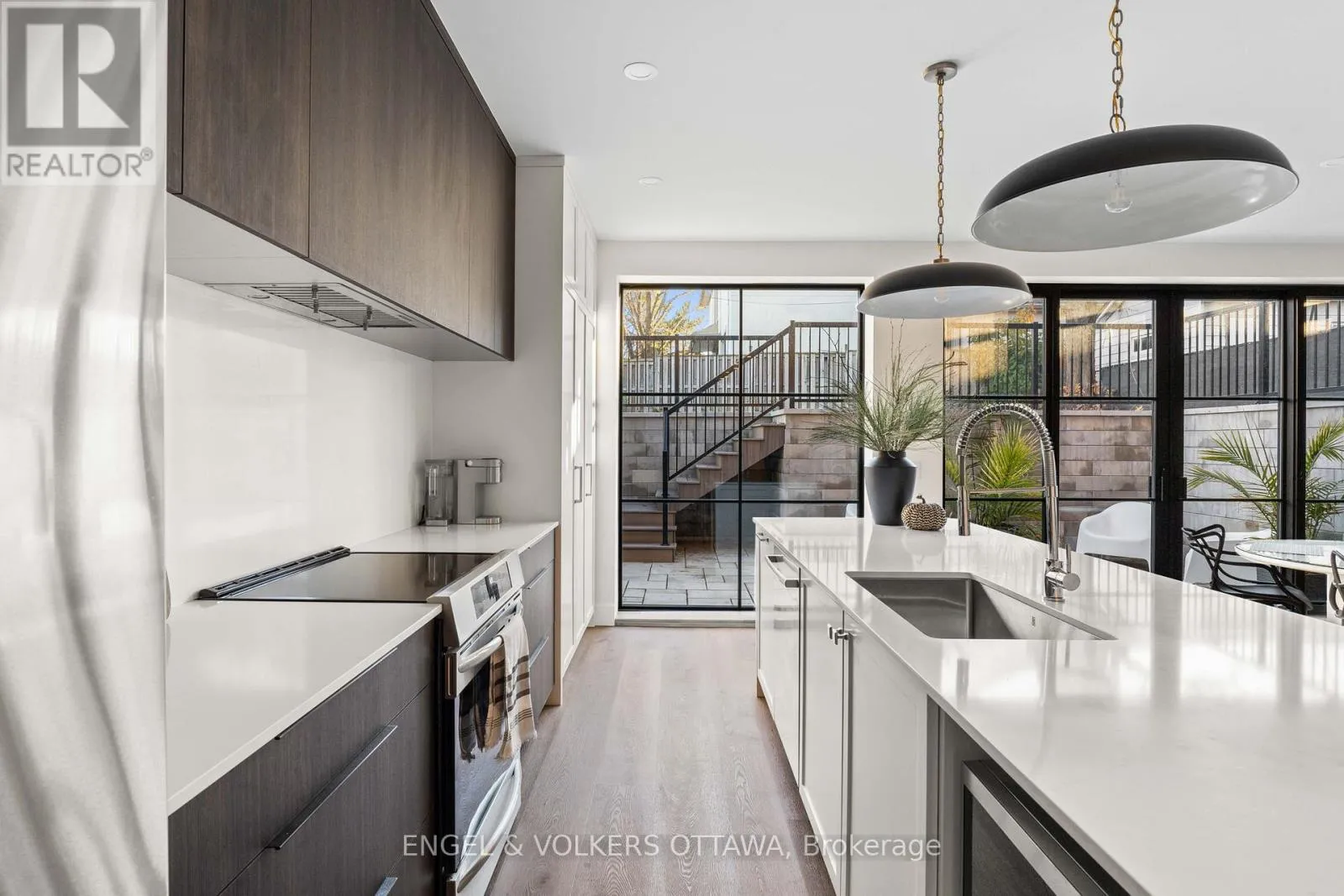 Kirkwood Ave to Byron Ave; Island Park Dr to Byron Ave Where Luxury, Location, and Lifestyle Converge. Discover this New York Brownstone inspired home in the vibrant heart of Westboro. Upon entry, a striking architectural staircase anchors the home, seamlessly connecting thoughtfully designed living and entertaining spaces. The upper level is breathtaking, with 10' ceilings, 10' Pella windows, and a designer kitchen featuring a 9' Quartzite island, premium Fisher & Paykel appliances, and custom RH hardware. Step outside to your private rooftop terrace with panoramic views of the serene Byron landscape. Throughout the home, custom walnut millwork and white oak flooring add warmth and refined sophistication. The primary suite is a true retreat, with floor-to-ceiling windows and a beautifully appointed ensuite. The lower level features a fully self-contained secondary dwelling unit, currently operating as a successful Airbnb, earning up to $9k/month, with 9' ceilings, designer finishes, oversized windows, and a private outdoor terrace. This exceptional home redefines modern luxury, blending urban elegance with sophisticated design and income potential. (id:27476)