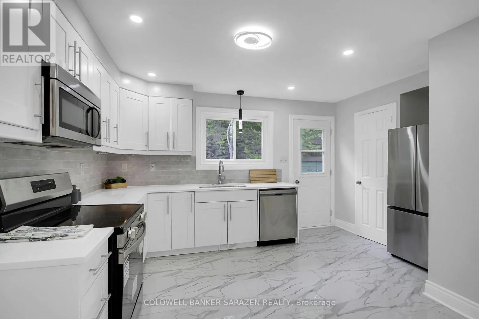 Carling Avenue to Kirkwood to Lepage Ave. This completely renovated townhome offers modern comfort and style across all levels including a fully finished basement. From top to bottom, no detail has been overlooked. The main floor features a bright, open-concept living and dining area with gleaming new hardwood floors. The stylish kitchen is a chefs delight, boasting refinished cabinetry, brand new quartz countertops, a new backsplash, new ceramic tile flooring, and brand new appliances. Elegant hardwood stairs lead to both the second floor and the basement. Upstairs, you'll find three generously sized bedrooms and a fully updated bathroom with new ceramic tile and a sleek, modern vanity. The lower level offers a spacious, newly finished recreation room with durable new laminate flooring -- ideal as a media room, home office, gym, or play area. Plenty of new recessed lighting throughout adds warmth and style, along with many other thoughtful upgrades. Step outside to enjoy a private back deck -- perfect for summer evenings and two convenient outdoor parking spaces. Located just minutes from downtown, with easy access to Hwy 417, and close to parks, shops, and cafes, this move-in ready home delivers the perfect blend of location, comfort, and lifestyle style. (id:27476)