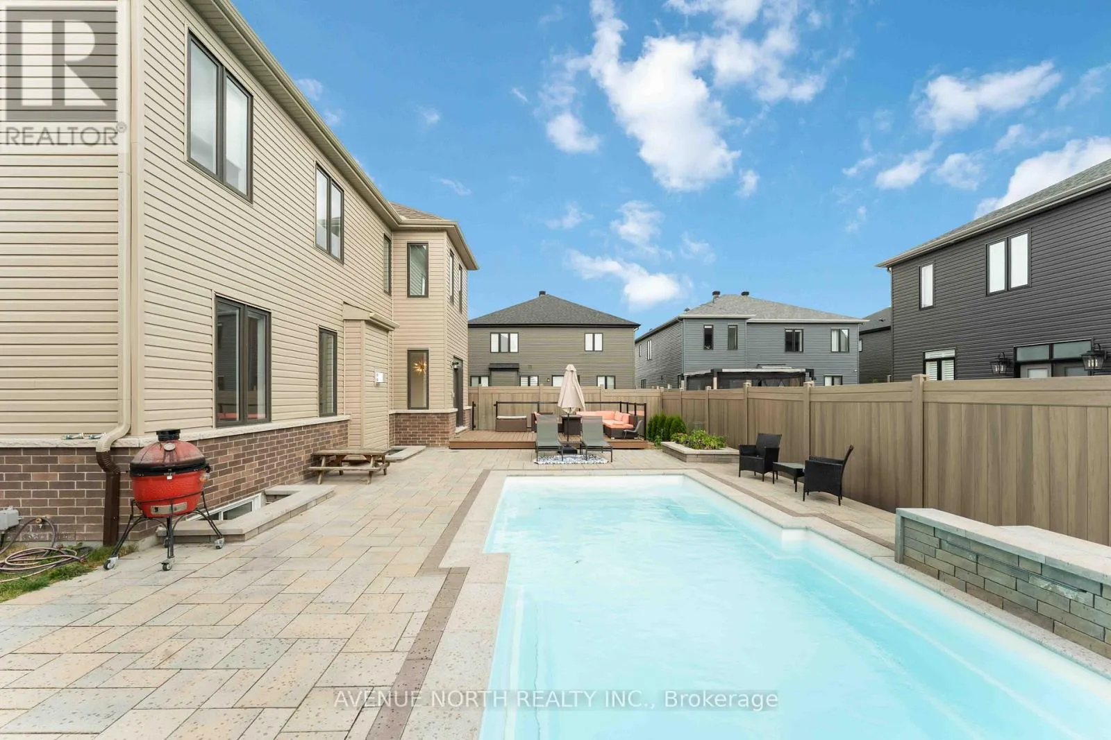 Cross Streets: Jetty Drive and Skysail Place. ** Directions: Longfields Dr to Rideau Valley Dr to Bridge Ave to Jetty Dr. Exceptional Minto Elderberry II model in the prestigious Mahogany community of Manotick. Situated on a generous 62' x 95' lot, this beautifully upgraded home offers over 4,000 sq ft of finished living space, complete with 5+1 bedrooms, 5 bathrooms and a rare 3-car garage w/ an extended driveway. Inside, the main level impresses with 9-ft ceilings, hardwood flooring, pot lights and a reimagined staircase that sets the tone for modern elegance. A versatile home office, main-floor bedroom and a custom mudroom w/ built-in cabinetry enhance daily functionality. The kitchen features quartz countertops, a waterfall island, tiled backsplash, walk-in pantry, upgraded cabinetry, pots & pans drawers and smart stainless-steel appliances, perfect for both everyday living and entertaining. Upstairs, you'll find 4 spacious bedrooms, all with walk-in closets & 9-ft ceilings. The primary suite boasts dual walk-in closets and a luxurious 5-piece ensuite. A second bedroom enjoys its own private ensuite, while the remaining two share a stylish Jack & Jill bathroom. The convenient second-floor laundry room includes upgraded sound insulation for added peace and quiet. All bathrooms throughout the home have been completely renovated with floor-to-ceiling tile, premium fixtures, and contemporary finishes. The professionally finished lower level adds even more versatility, featuring Control4 smart home technology, built-in speakers, a wet bar, playroom, gym, a spa-inspired bathroom, and a guest bedroom, ideal for hosting or multigenerational living. Step outside to your own private backyard oasis, fully fenced & landscaped for low-maintenance enjoyment. Features a fiberglass pool w/ waterfall feature, composite decking w/ glass railings, and interlock stone throughout the driveway & grand front entryway. This is a rare opportunity to own a stunning home that blends elegant design, modern technology & vibrant outdoor living in one of Manotick's most desirable neighborhoods. (id:27476)