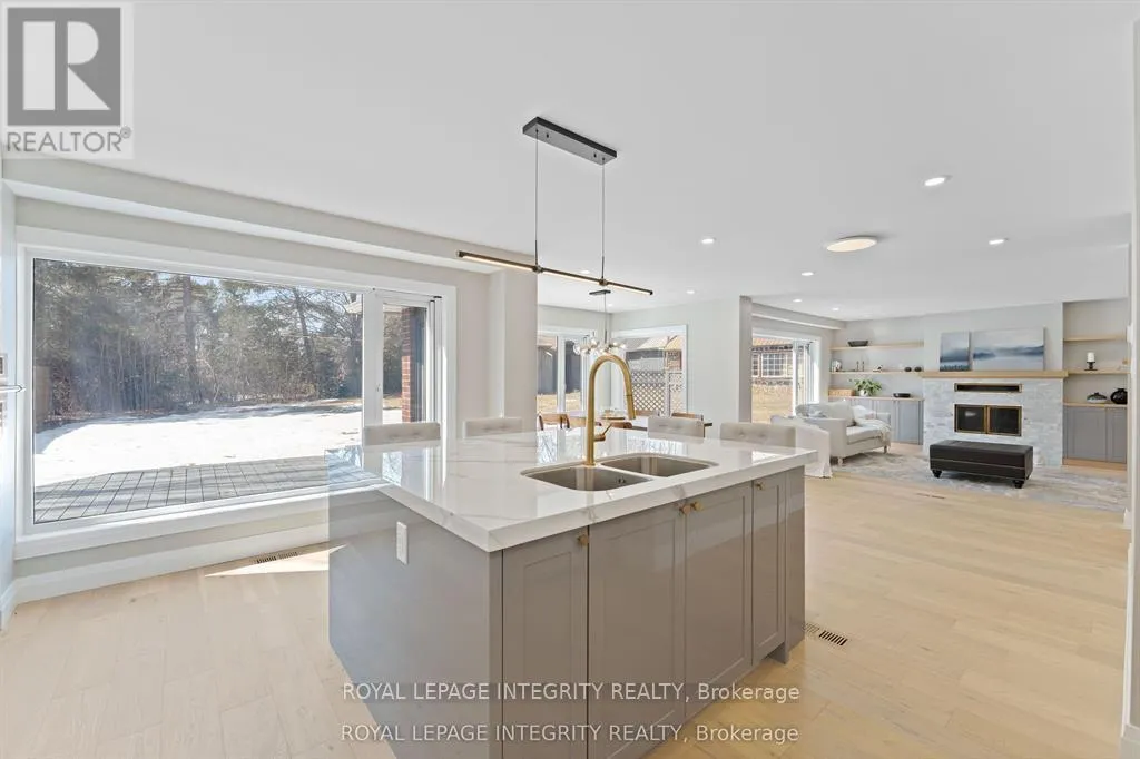 Woodroffe south of Strandherd WOW! Truly one of one. An exceptionally rare opportunity to own a fully renovated executive home on a massive 93' x 238' Feet estate lot in prestigious Hearts Desire, perfectly positioned across from the park and serviced with full city utilities. This is the kind of property that almost never comes to market, offering luxury, function, and unmatched outdoor flexibility in one complete package. Inside, the home has been completely redefined with hardwood flooring, custom millwork, pot lights, and designer fixtures throughout. At the center is a chef inspired kitchen designed to impress, featuring an oversized island, elegant cabinetry, and brand new high-end appliances, ideal for entertaining and everyday living. The bright, open living and dining spaces are flooded with natural light from floor to ceiling windows and overlook the serene, tree lined backyard, creating a seamless indoor & outdoor lifestyle. Upstairs, the expansive primary retreat delivers true comfort with a spa like ensuite and a custom walk-in closet. Three additional bedrooms feature custom closets and are complemented by a show stopping main bath. The fully finished basement adds even more versatility with a generous family room, 5th bedroom, full bath, laundry, and abundant storage, perfect for guests, teens, or multi-generational living. Outside is where this property becomes truly unmatched: 2 different outbuildings for storage plus 1 that is heated, powered outbuilding offering incredible flexibility, ideal for a workshop, studio, gym, home business, "man cave," or potential future coach house concept. The grounds are framed by mature oak and maple trees, with new fencing, a freshly paved driveway, and an oversized double garage. Steps to parks, schools, shopping, trails, and everything that makes this community so desirable. A landmark lot with endless possibilities, book your private showing today. Floor Plans Available. (id:27476)