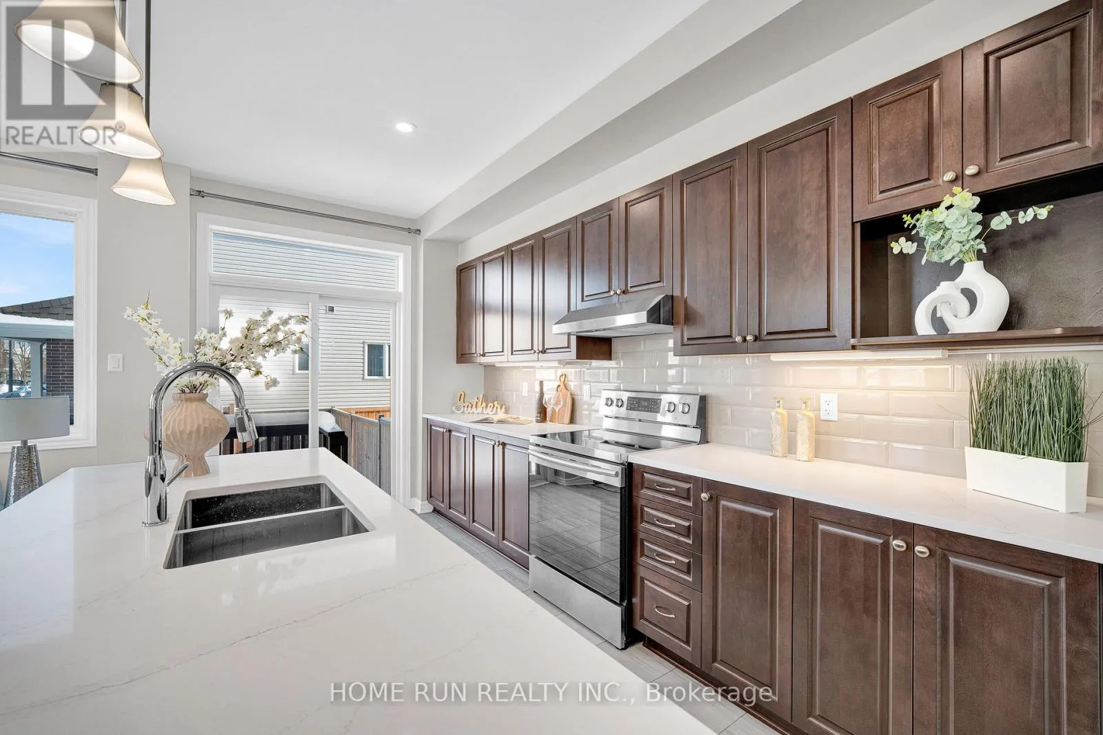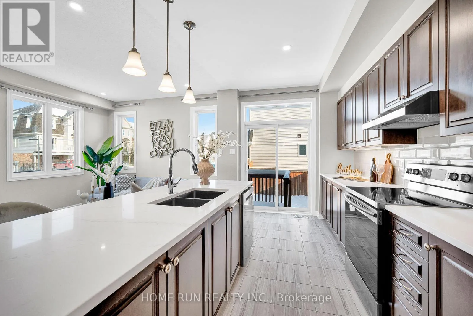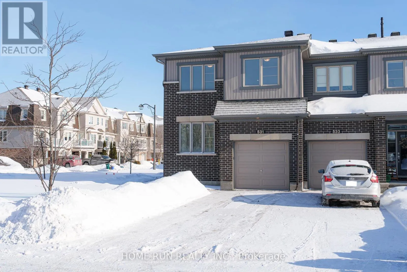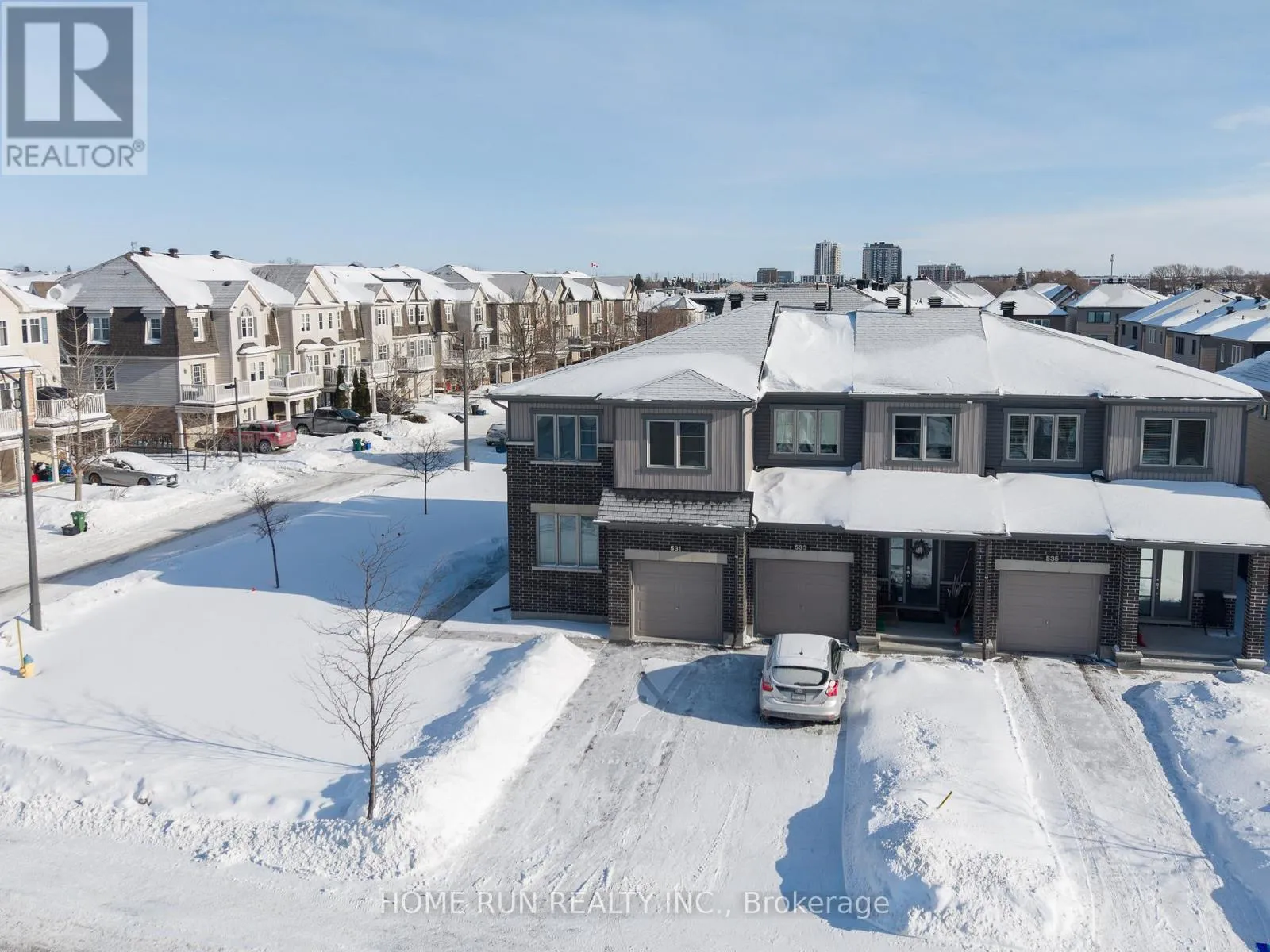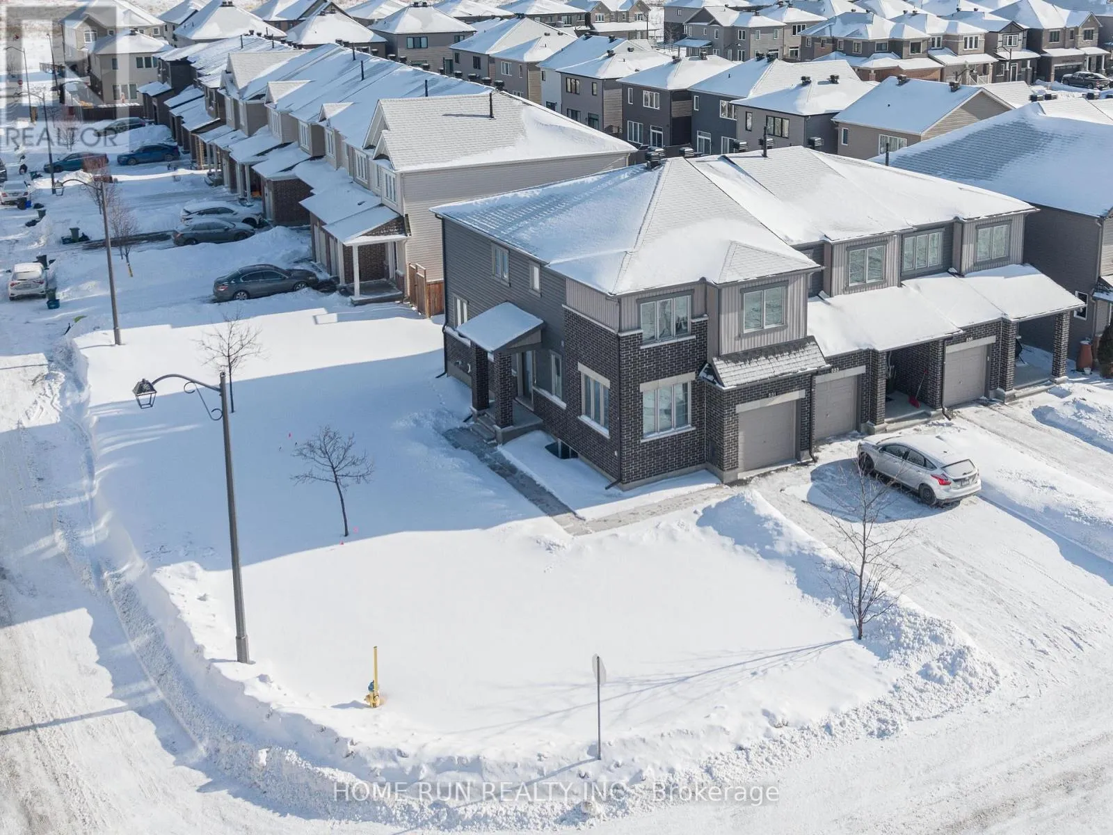 Cross Streets: Waterlilly Way. ** Directions: Waterlilly Waty to Lilith St. Rarely Offered 4-Bedroom End Unit on a Premium Corner Lot in Sought-After Heart's Desire, Barrhaven! This upgraded Minto Venice model offers over 2,100 sq. ft. of well-designed living space, combining exceptional size, natural light, and functionality. Situated on a generous premium corner lot, the property features an expansive yard. A long private driveway accommodates parking for two vehicles, in addition to the attached garage, offering parking for up to three cars in total.The sun-filled main level showcases an open-concept layout with abundant windows that flood the home with natural light. A versatile main-floor home office/den is perfect for today's work-from-home lifestyle. The bright kitchen features quartz countertops, a centre island with breakfast bar, walk-in pantry room, stainless steel appliances, and a spacious eating area with patio doors leading to the backyard. All bathrooms are also finished with quartz countertops, adding a cohesive and modern touch throughout the home.The second level offers a spacious primary bedroom complete with a walk-in closet and ensuite bathroom, along with three additional well-proportioned bedrooms, a full bathroom, and the convenience of second-floor laundry. The finished lower level provides a large family/recreation room with an oversized window, a convenient 2-piece bathroom, and ample storage space.Lovingly maintained and shows like new. Just minutes to Chapman Mills Marketplace, Costco, offering shopping, dining, and all essential amenities.A must-see property! (id:27476)