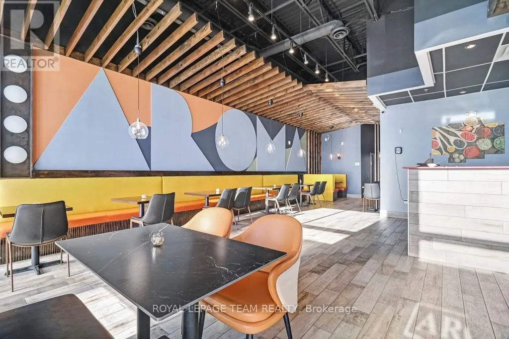Cross Streets: Bank St./Shuttleworth Dr. ** Directions: From Bank St. turn into the Cowan's Grove Plaza. A prime business opportunity with an exceptional leasing option are available in a desirable location. This contemporary restaurant unit is situated along a busy thoroughfare within a densely populated residential community, offering steady foot traffic and a strong local customer base. The space features a modern, functional design and is fully outfitted for immediate use, including a spacious commercial kitchen complete with an exhaust hood and all necessary restaurant infrastructure. The transaction is offered strictly as an asset sale, with the business name and branding open for discussion. The layout allows for versatility and can accommodate a broad range of culinary concepts, with particular suitability for ethnic food. The property benefits from excellent visibility, accessibility and parking and is conveniently located close to Royal Bank, Canadian Tire, FreshCo, and the Findlay Creek Animal Hospital. This turnkey space presents an outstanding opportunity for restaurateurs or investors seeking to launch or grow a business in an active and expanding community. (id:27476)