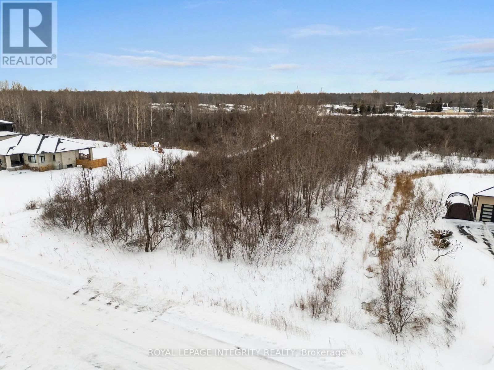 Mitch Owens east to Albion, left on Killymoon Way, Right on Ballycastle. Don't miss this rare opportunity to build in a prestigious enclave offering privacy, space, and long-term value! This exceptional vacant lot measures approximately 153.37 ft x 238.92 ft, representing about 0.84 acres, and features a highly desirable north-south orientation. With no rear neighbour and city-owned conservation land directly behind, the setting provides an added layer of natural privacy that is increasingly difficult to find. Located in a quiet, established neighbourhood of long-term homeowners, the property benefits from proven drainage and hard rock conditions, which may help support lower foundation costs compared to less established sites. The lot's orientation allows for excellent natural light throughout the day while minimizing west-facing heat, making it particularly well suited for an energy-efficient custom home design. The property offers municipal road frontage and, while not currently serviced, is considered serviceable, providing greater certainty than raw rural land. The lot is residentially zoned with no known restrictions, offering incredible flexibility for future plans. Buyers are advised to verify zoning, servicing, and building requirements to their own satisfaction. Plans and professional renderings are available upon request, providing a strong starting point for envisioning the potential of this remarkable site. Convenient access to Bowesville LRT and future transit expansion further enhances long-term value and connectivity, making this an outstanding opportunity for those looking to build in a sought-after and forward-looking location. Book your private showing today! (id:27476)