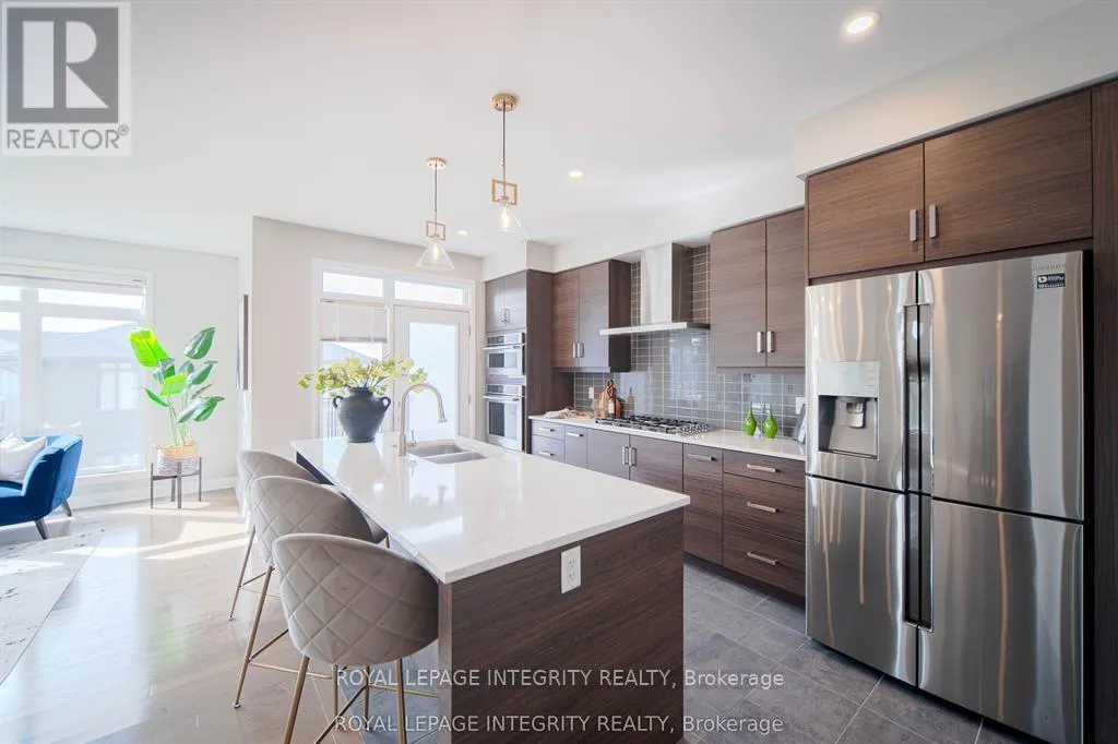 Drive north-west on Terry Fox Dr, turn right into Huntsville Dr, and turn left into Greensand Place, the home will be on your left. Detached home in Richardson Ridge built in 2019 by Uniform. WALK-OUT BASEMENT! TWO ENSUITES! Situated on a fan-shaped lot with a backyard measuring 43.88 ft wide, this home combines modern design with functional living. Enjoy a welcoming front porch, a bright and spacious tiled foyer, and a mudroom with a walk-in closet and powder room. The main level features 9' smooth ceilings, natural oak hardwood floors, quartz countertops, and abundant pot lights throughout. A main-level den is ideal for professionals working from home. The open-concept living and dining area includes a gas fireplace, TV wall mount, and a large southwest-facing window overlooking the backyard. The modern kitchen offers a large island, tile backsplash, walk-in pantry, undermount stainless steel double sink, and premium stainless steel appliances. Smart cabinetry with seasoning racks and a hidden trash bin ensures a clean, functional space. The patio door opens to the deck. Upstairs boasts four spacious bedrooms, including a primary suite with a coffered ceiling, walk-in closet, and luxurious 5-piece ensuite. An upgraded floor plan adds a second bedroom with its own ensuite plus a shared 3-piece bath with direct access from another bedroom. The walk-out basement includes a 3-piece rough-in, ready for future customization. Located within top school boundaries and close to shopping, parks, and transit - this home offers luxury, functionality, and convenience all in one. (id:27476)