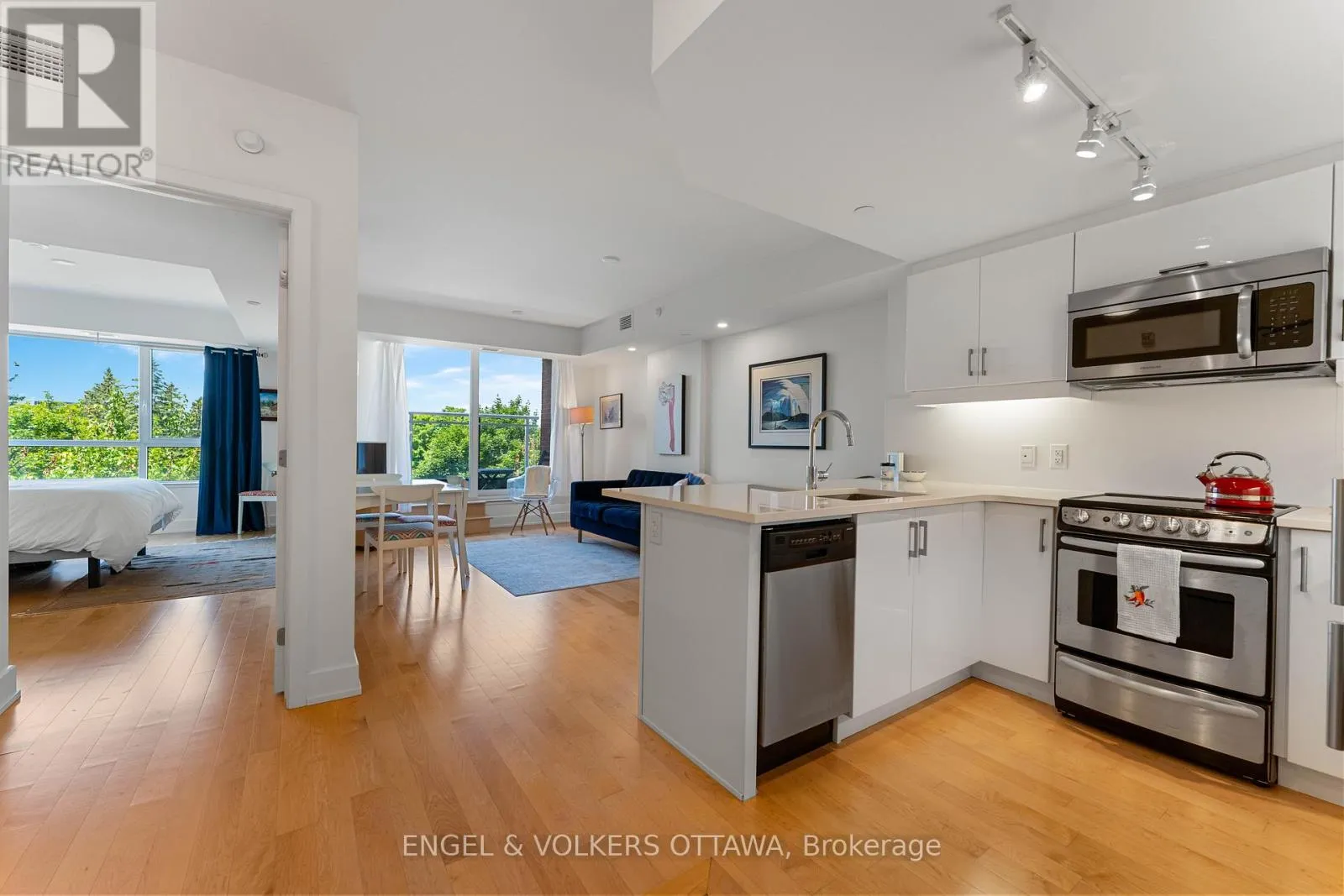 Cross Streets: KING EDWARD AND BRUYERE STREET. ** Directions: KING EDWARD TO BRUYERE STREET. Located in the prestigious Waterstreet Condo building, this one bedroom, one bathroom unit offers stunning views of Bordeleau Park & the Rideau River. Situated in a prime location close to cafes, shops, embassies, universities, museums, and art galleries, this condo is perfect for those who appreciate convenience & a vibrant lifestyle. Enjoy beautiful walking & biking paths just steps from your door. This gently lived-in unit features quartz counters and maple hardwood flooring, creating a bright and spacious living area. Enjoy your morning coffee on the balcony overlooking the park and water. The large primary suite includes built-in wardrobes in the walk-in closet, and the unit boasts a full-size washer & dryer. Amenities include a fitness centre, party room, watercraft and bike storage, and a stunning rooftop patio. Additionally, the condo comes with underground heated parking and a large storage locker for added convenience. Tranquil living in the heart of the city! (id:27476)