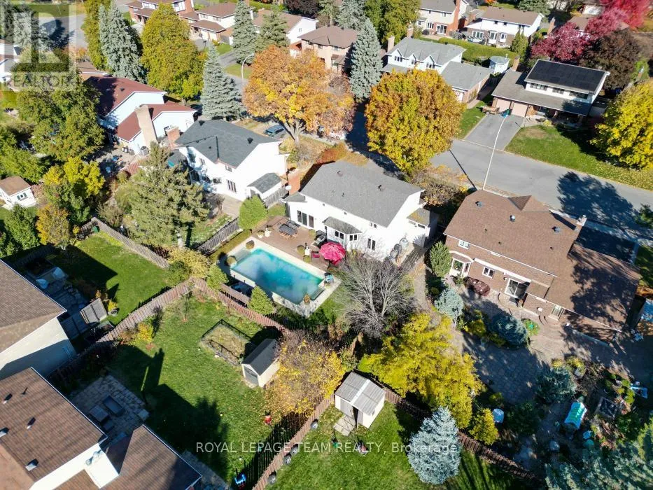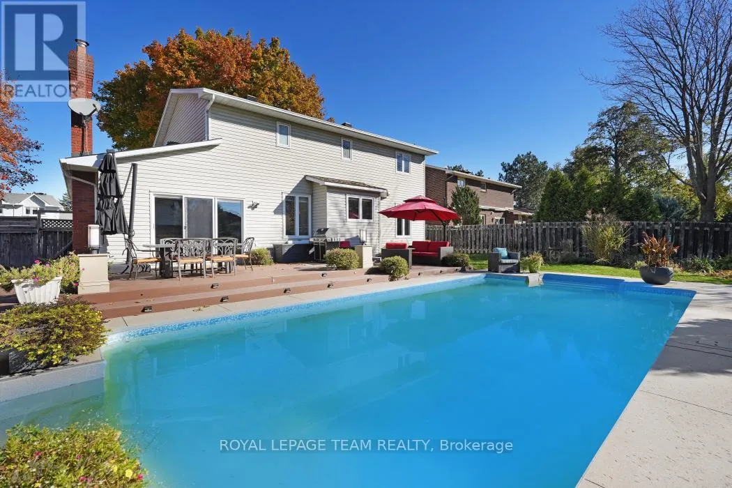 Cross Streets: Fallowfield Road and Holitman Drive. ** Directions: Woodroffe Ave., south, west of Fallowfield Drive, south on Holitman Drive. Residence is #28 on the west side of Holitman Drive. We are thrilled to present a rarely offered, meticulously maintained four-bedroom, three-bathroom residence, custom-built by Holtizer, in the highly sought-after Knollsbrook neighborhood of Barrhaven. Situated on a mature, beautifully landscaped 70' x 100' lot, this exceptional home seamlessly blends timeless charm with chic modern updates. The main floor is designed for entertaining, featuring an expansive living and dining area complemented by a gourmet chef's kitchen. The kitchen is fully equipped with top-grade appliances, stone counters, accent lighting, and a massive center island. Adjacent to the kitchen, a cozy family room with a wood-burning fireplace offers direct access to an incredible backyard oasis. Designed for outdoor enjoyment, the fully fenced backyard features a heated saltwater in-ground pool, multi-level PVC decking, a natural gas fire pit, ambient lighting, and a large storage shed. The second level offers an oversized primary bedroom with custom "his and her" walk-in closets, along with two additional spacious bedrooms. For daily convenience, the functional mudroom provides abundant storage, a full-size fridge, and a large closet. This property is perfect for active families and outdoor enthusiasts. Don't miss the opportunity to make this incredible house your new home. (id:27476)