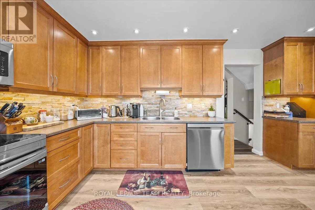 Cross Streets: Montreal Rd and Crownhill. ** Directions: Montreal Rd, south on Elwood, left on Seguin and it becomes Crownhill, left on Sumac and left on Chimney Hill Way. Welcome to a bright, updated, carpet-free 3-bedroom, 2-bathroom condo townhome located in a desirable neighbourhood featuring two covered parking spaces. The lower level features a convenient 3-piece bathroom, laundry room, and a versatile den/office/storage. The main level showcases a renovated kitchen with eating area, modern cabinetry, and pot lights, with direct access to a large balcony-perfect for relaxing or enjoying summer BBQs. A generously sized dining room with built-in shelves and cabinetry flows into a spacious living room highlighted by a wood-burning fireplace, all set on luxury vinyl flooring. This level also leads to a fenced, landscaped yard. Upstairs, you'll find a well-sized primary bedroom with built-in closet cabinetry, along with two additional bedrooms. All three bedrooms feature ceiling fans and laminate flooring. Ideally situated close to public transit, schools, parks, playgrounds, the O-Train, shopping, Costco, restaurants, and more, with easy access to Highway 417. (id:27476)