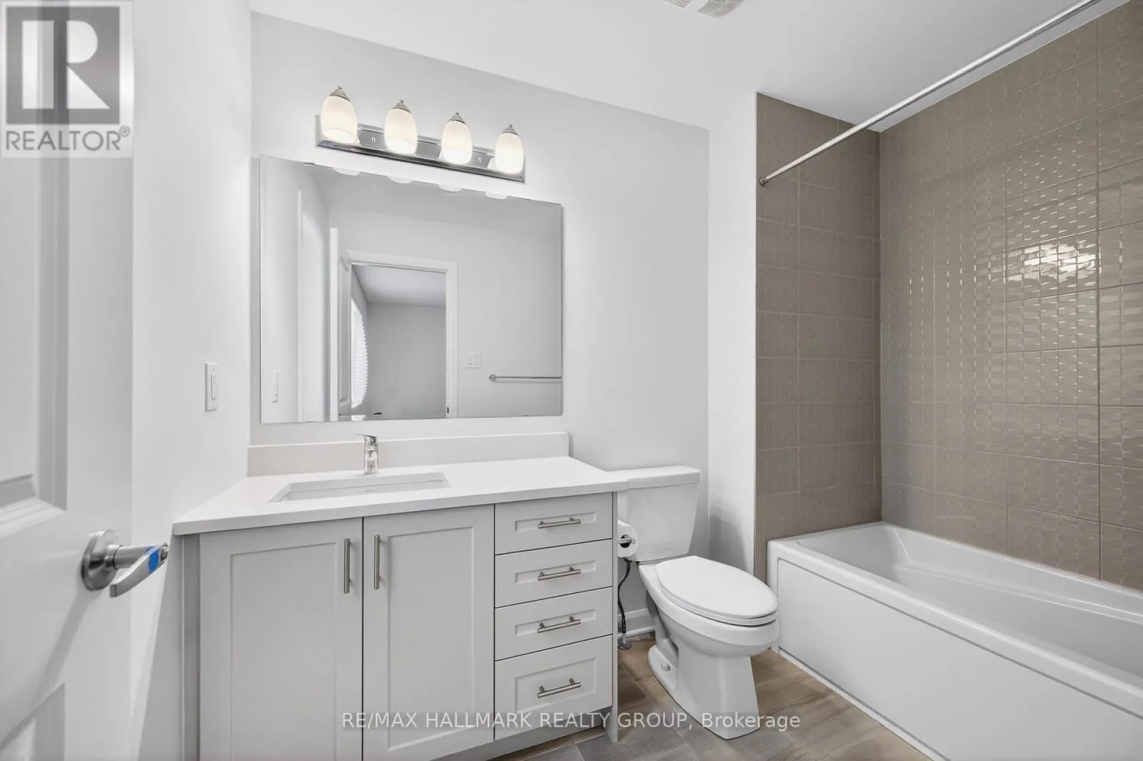 Cross Streets: March Rd. & Invention Blvd. ** Directions: March Rd. to Invention Blvd. right onto Vibert Douglas Dr. left onto Jennie Trout Ter. right onto Eileen Vollick Cres. Welcome to 887 Eileen Vollick Crescent, a brand new, never lived in, move-in ready Cohen Executive Townhome by Minto, located in the highly sought-after Brookline community of Kanata. This modern 3-bedroom, 2.5-bath home offers a bright and functional layout with 9-foot smooth ceilings on the main floor, hardwood flooring throughout the principal living areas, and a beautifully upgraded kitchen featuring quartz countertops, contemporary cabinetry, stylish backsplash, and potlights. The second level includes three well-sized bedrooms, two full bathrooms, and convenient upstairs laundry. The spacious primary bedroom boasts a walk-in closet and private ensuite with quartz vanity and upgraded tile finishes. The unfinished basement provides excellent future potential for a recreation room, home office, or additional living space, and also includes a 3-piece rough-in for a future bathroom. Additional upgrades include quartz countertops in all bathrooms, modern oak railing, added electrical and lighting upgrades, garage door opener with keypad, and tasteful tile and carpet selections throughout. Ideally situated in a growing, family-friendly neighbourhood close to parks, schools, shopping and major commuter routes-this is an exceptional opportunity to own a brand-new home without the wait. (id:27476)