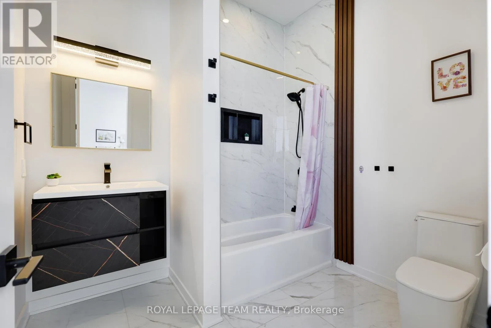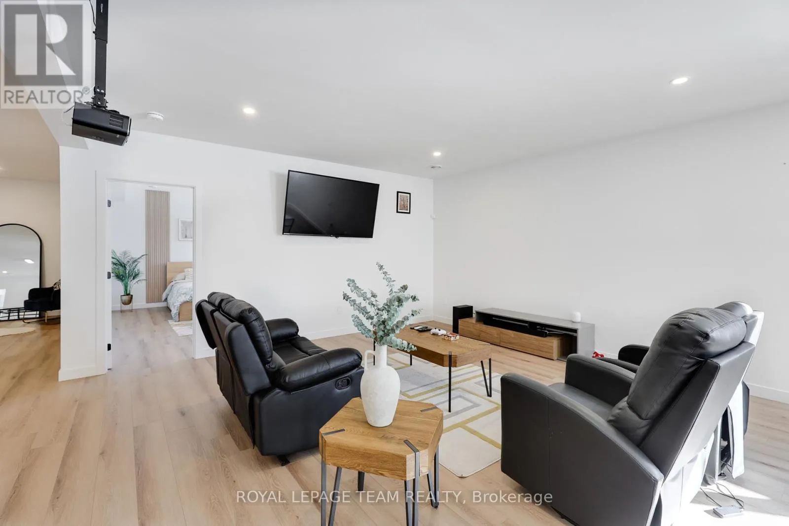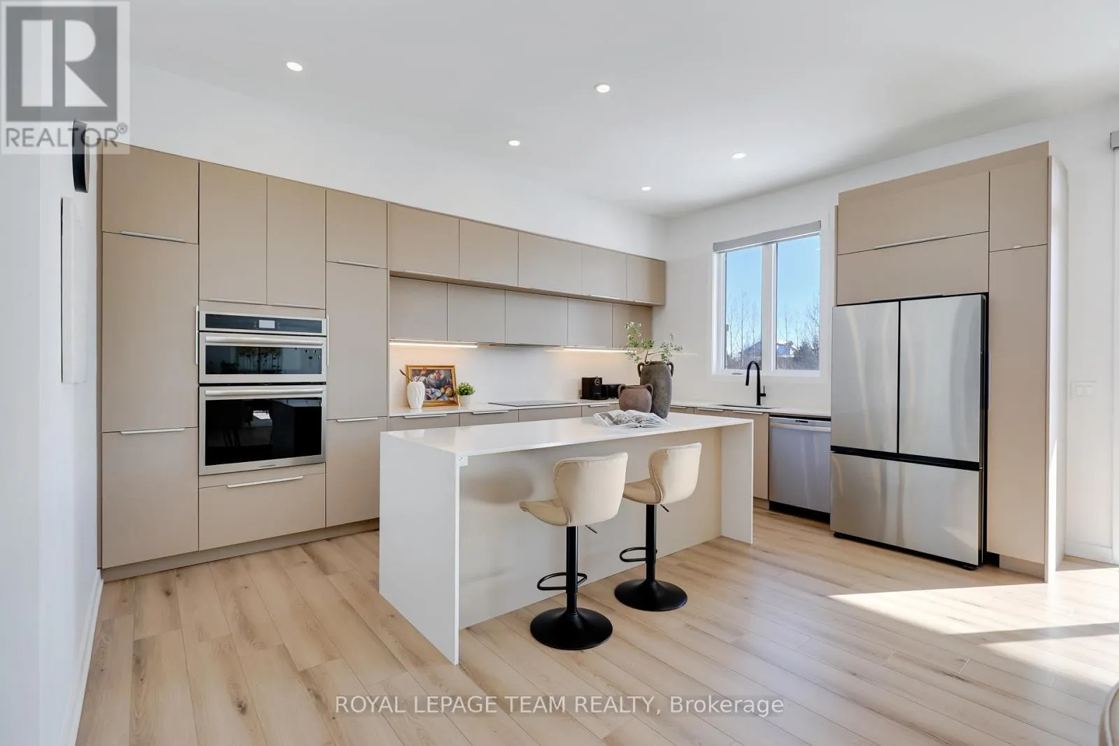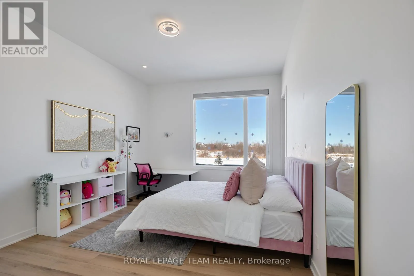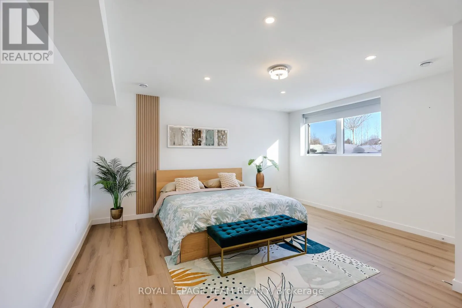 Cross Streets: Marchurst Rd and Synergy Way. ** Directions: Head Southwest on March Road, turn right onto Marchurst Rd, then turn left onto Synergy Way, turn left to stay on Synergy Way, the home will be on the left. This custom-built luxury bungalow offers over 5600 sq ft of total finished living space, set on a rare estate-sized lot of over 2 acres in an upscale, low-density community. Built in 2023, the home combines modern design with exceptional space and privacy, while remaining conveniently located near major amenities and Ottawa's high-tech employment hub. The thoughtfully designed layout includes 5 bedrooms and 4 bathrooms, with 3 bedrooms on the main level and 2 bedrooms in the lower level, ideal for multi-generational living, flexible family needs, or home office use. Ceiling heights reach up to 15 ft in the foyer and living room, with 10 ft ceilings across the main level, complemented by large black-framed double-pane windows that flood the home with natural light and enhance its architectural presence. The open-concept living area flows seamlessly into a modern kitchen featuring a waterfall quartz island, full-height quartz backsplash, custom soft-close cabinetry, and a premium appliance package. The primary suite offers a private retreat with a spa-inspired ensuite, including a freestanding soaking tub, glass-enclosed rain shower with body jets, and a custom walk-in closet. The lower level extends the living space with a spacious recreation area, electric fireplace (included), dedicated home gym, additional bedrooms, and a full bathroom finished to the same high standard as the main floor. Outdoors, the property features professionally landscaped grounds, interlock patios and walkways, a covered terrace, custom pergola, mature trees, multi-zone irrigation, and architectural exterior lighting. Additional highlights include a 4-car attached garage with epoxy flooring, extensive parking, smart home technology, comprehensive LED lighting, full security system, and electric fireplaces on both levels. This move-in-ready bungalow presents a rare opportunity to enjoy space, privacy, and modern luxury in one of the area's most desirable communities. (id:27476)