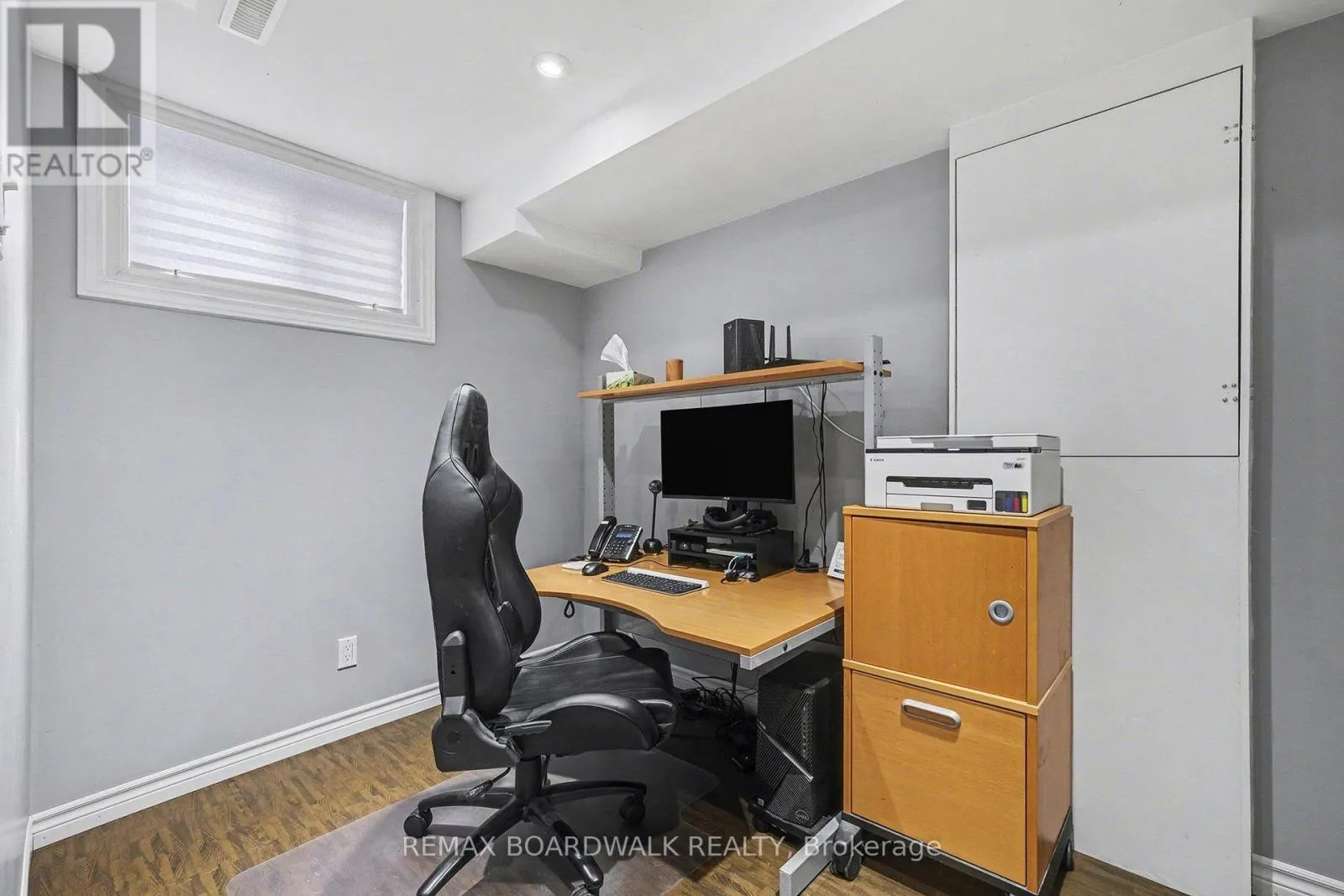 Cross Streets: Charlemagne and Valade. ** Directions: Tenth Line to Charlemagne, Charlemagne to Valade. Step inside 448 Valade Crescent and feel instantly at home. This thoughtfully cared-for 3-bedroom, 2-bathroom townhouse offers a bright, airy atmosphere and the ease of carpet-free living throughout. Sunlight pours into the main floor, where an open-concept living and dining space creates the perfect setting for relaxed evenings, family gatherings, and effortless entertaining. The refreshed kitchen is both practical and inviting, with workspaces and storage that make everyday meals and weekend hosting feel seamless. Upstairs, three comfortable bedrooms provide peaceful retreats at the end of the day, each featuring vinyl plank flooring and plenty of natural light. The primary suite is a true highlight, complete with two spacious walk-in closets - an unexpected luxury that adds both comfort and convenience. A well-appointed full bathroom serves the upper level with style and functionality.The lower level adds valuable versatility, offering a warm and welcoming space ideal for a family room, complete with a home office, extra storage and a spacious laundry room. Set in a well-established community close to schools, parks, shopping, and transit, this home suits a wide range of lifestyles - from first-time buyers to investors and downsizers alike. Residents also enjoy access to fantastic amenities, including a nearby playground and an outdoor pool, perfect for enjoying sunny days close to home. Move-in ready, filled with light, and designed for real life, this is a place where memories are waiting to be made. (id:27476)