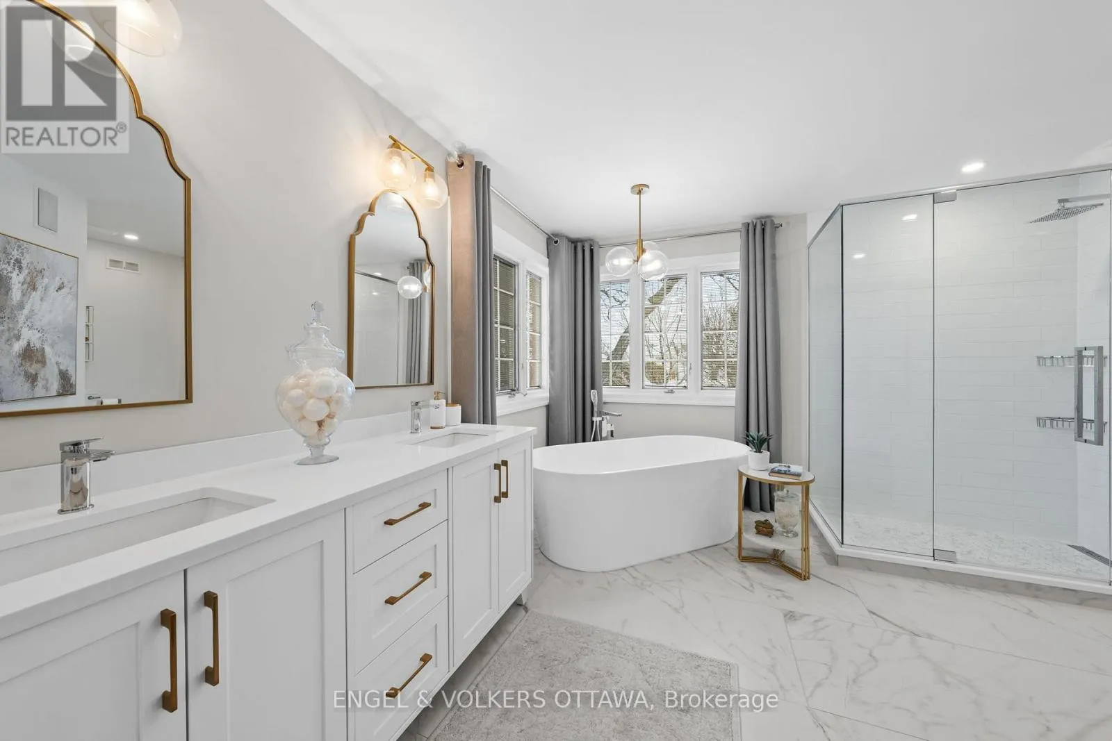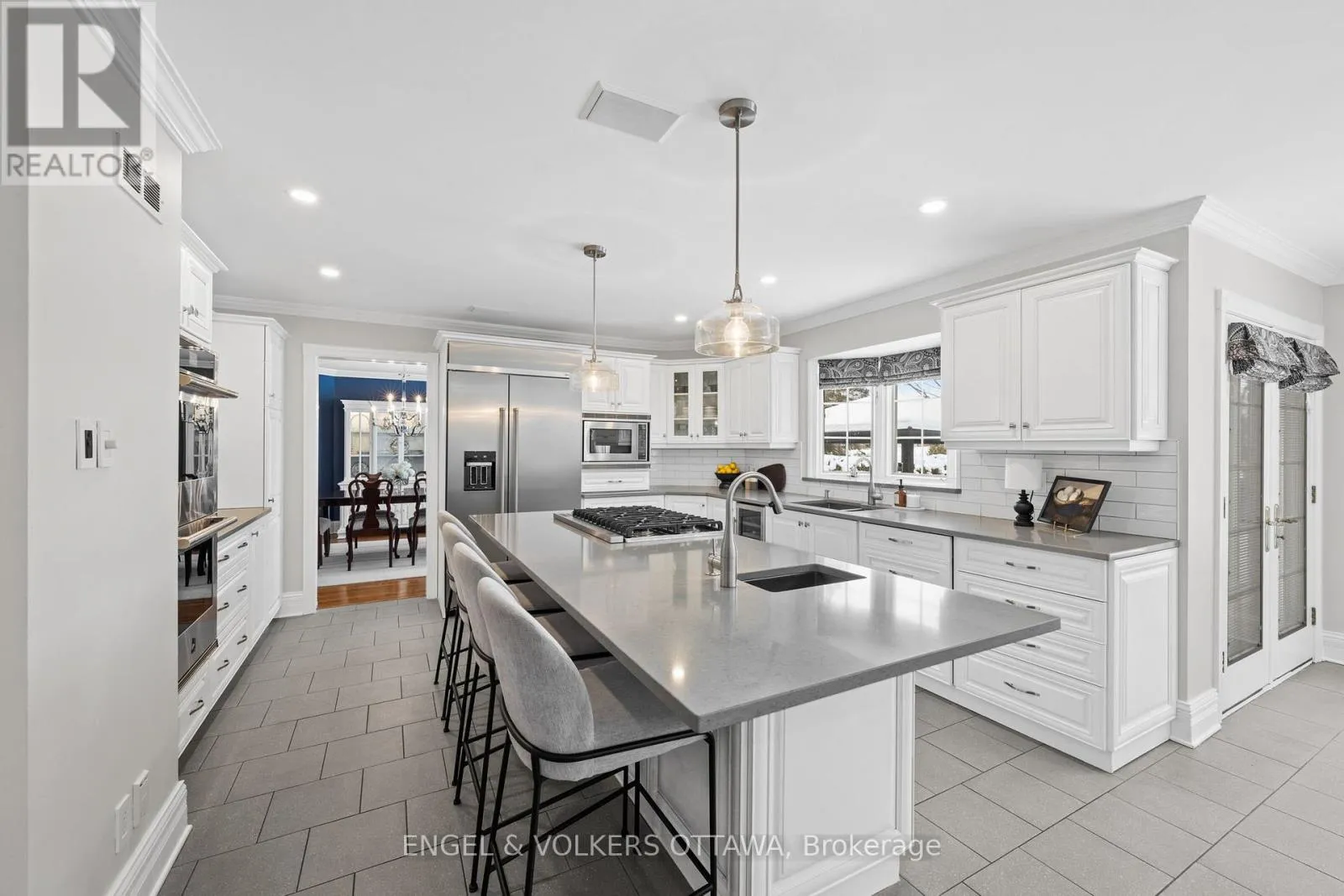 Cross Streets: Weybridge & Jockvale. ** Directions: Jockvale Road to Weybridge Drive, Right on Seabury Gate, Right on Shiregreen Drive, Right on Eagle Chase Court. This one-of-a-kind all-brick two-storey custom residence, gracefully situated on a rare double lot within a quiet, coveted court, is truly breathtaking. Impeccable attention to detail & meticulous craftsmanship enhance the beauty of this elegant and timeless home. Upon entry, you are welcomed by a stunning hardwood staircase & a classic cross-hall design, unveiling a gracious den, formal living room, & intimate dining room accented by French doors-perfectly curated for both entertaining & everyday living.The heart of the home showcases a spectacular chef's kitchen featuring an oversized island, premium appliances, & an impressive walk-in pantry. The adjoining breakfast area is warmed by a striking double-sided fireplace & provides seamless access to the breathtaking backyard oasis, creating an effortless flow for indoor-outdoor living. Just off the kitchen, the beautifully appointed great room is inundated with natural light, offering a welcoming space to unwind or entertain family & friends. A highly functional mudroom and laundry area feature expansive quartz countertops, abundant storage, & a full refrigerator & freezer, leading seamlessly to the impressive three-bay garage complete with newly epoxied floors and fresh paint.The upper level offers three generously proportioned bedrooms & a serene primary suite retreat, highlighted by a luxurious ensuite featuring a custom oversized shower and freestanding soaker tub-designed to deliver a spa-inspired experience. A beautifully renovated main bathroom completes this level, blending timeless style with custom finishes.The thoughtfully finished lower level features a welcoming family room centred around a cozy gas fireplace, an additional bedroom, a newly renovated bathroom, & abundant storage-creating a versatile and refined space, perfect for guests or an in-law suite. Ideally located near excellent schools, endless amenities, and the 416-an extraordinary offering that stands in a class of its own. (id:27476)