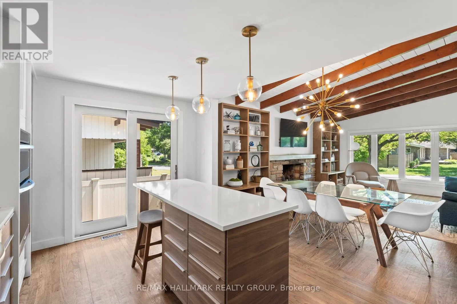 Palmer and Summit FULLY FURNISHED - ALL INCLUSIVE UTILITIES - Chalmers Mid Century Modern Bungalow in the heart of prestigious Alta Vista! 4 bed/3 FULL BATH is pro designed, making it the IDEAL TURN-KEY residence! Be welcomed into this architectural gem with soaring 12 ft ceilings w/ EXPOSED CEDAR BEAMS spanning the entire main-entertaining space! The OPEN CONCEPT kitchen feat. HIGH END SS APPLIANCES complete w/ GAS RANGE, & BUILT-IN CONVECTION OVEN & MICRO! Cozy up to TWO WOOD-BURNING FIREPLACES! The MAIN FL DEN is the ideal work from home office! The Master Retreat is SPACIOUS w/ DBL CLOSETS & DBLE SINK ENSUITE! The lower level feat. an additional 1600 sqft of living space: family room, full bathroom, 2nd mini Office, rec/play room, 2 STORAGE ROOMS & spacious LAUNDRY w/ FREEZER & AMPLE STORAGE! Walk to 3 hospitals: CHEO, Riverside & General. 1 km from Rapid Transit Station, 10 min. to D-TOWN; TOP Schools and dog-friendly Grasshopper Park 700m walk! (id:27476)