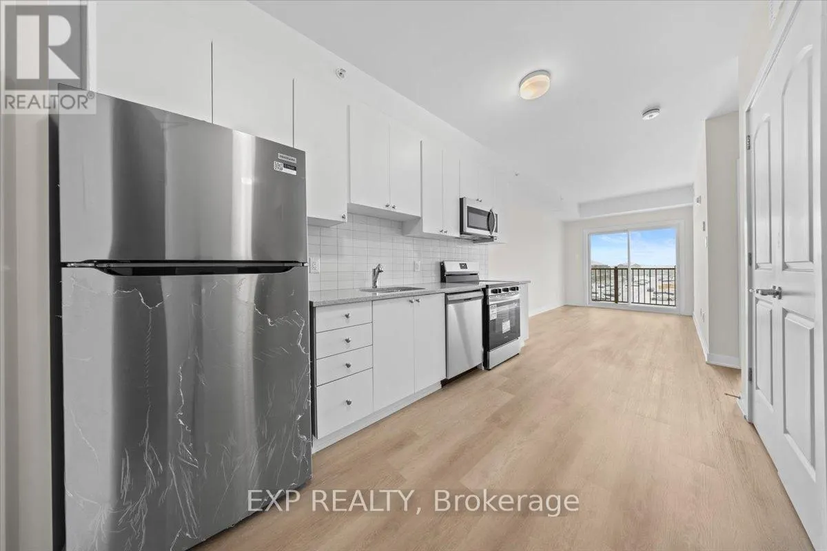 Cross Streets: Brian Coburn Blvd/Tenth Line Road. ** Directions: Brian Coburn Blvd and Tenth Line Road. LIMITED TIME ONLY - NO CONDO FEES FOR TWO YEARS!! Experience modern living at its finest with The Dawn model by Mattamy Homes. This brand new 710 sqft condo features a spacious 1bed + den/1 bath layout. FIVE appliances included! The kitchen boasts stunning quartz countertops and a stylish backsplash, creating a sleek and functional cooking space. Enjoy the elegance of luxury vinyl plank flooring that flow seamlessly throughout the home complemented by smooth 9' ceilings that enhance the open feel. Step out onto your private balcony off the living room, perfect for relaxing and enjoying the view. Nestled in a prime location this apartment offers easy access to the great outdoors with nearby Henri-Rocque Park, Vista Park and the Orleans Hydro Corridor trail. For sports enthusiasts, the Ray Friel Recreation Complex and Francois Dupuis Recreation Centre are just a short drive away. Walk to shopping and restaurants. Convenience is at your doorstep with planned neighbourhood retail spaces on the main floor and easy access to transit. THIS HOME IS UNDER CONSTRUCTION. Photos used are to showcase builder finishes. (id:27476)