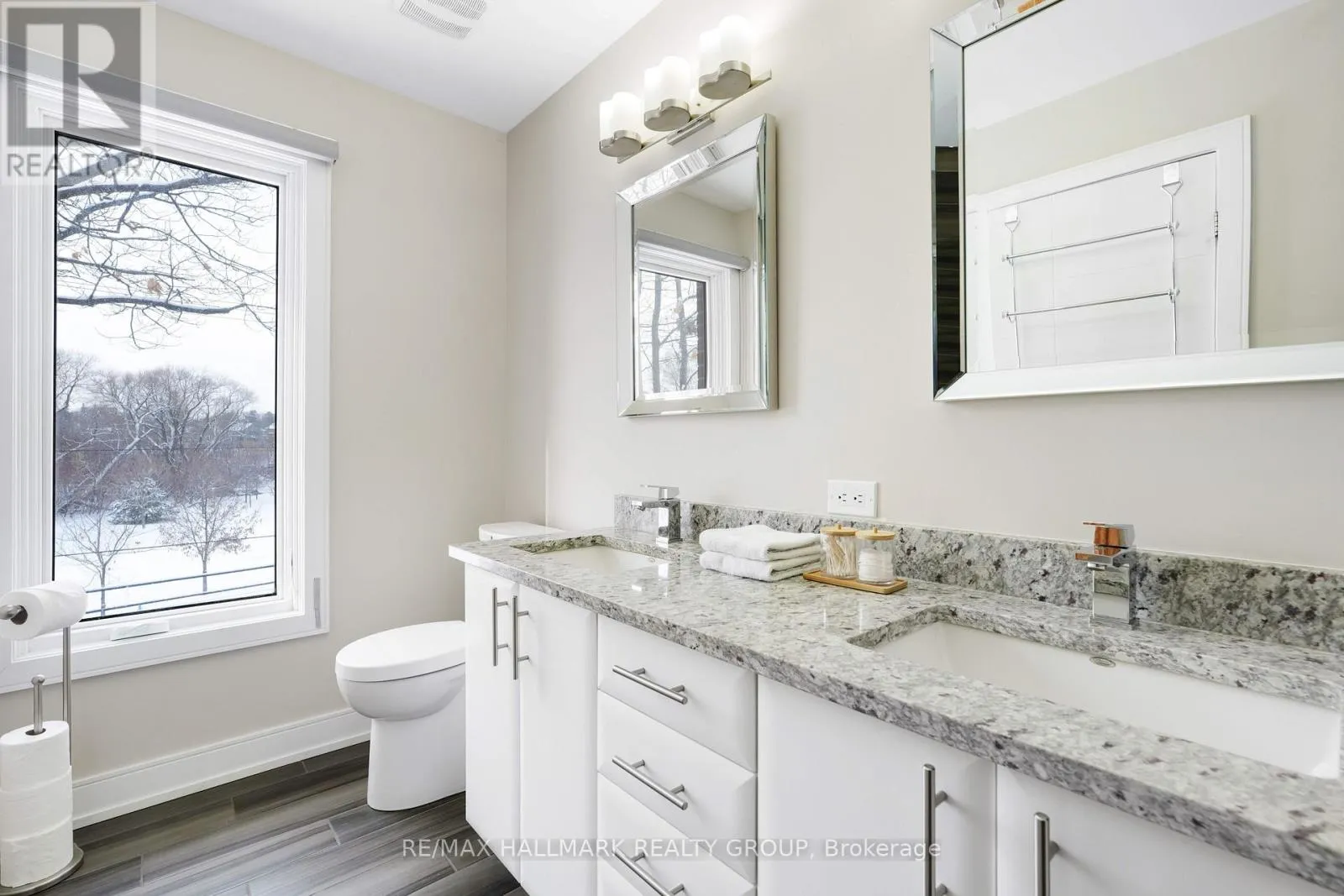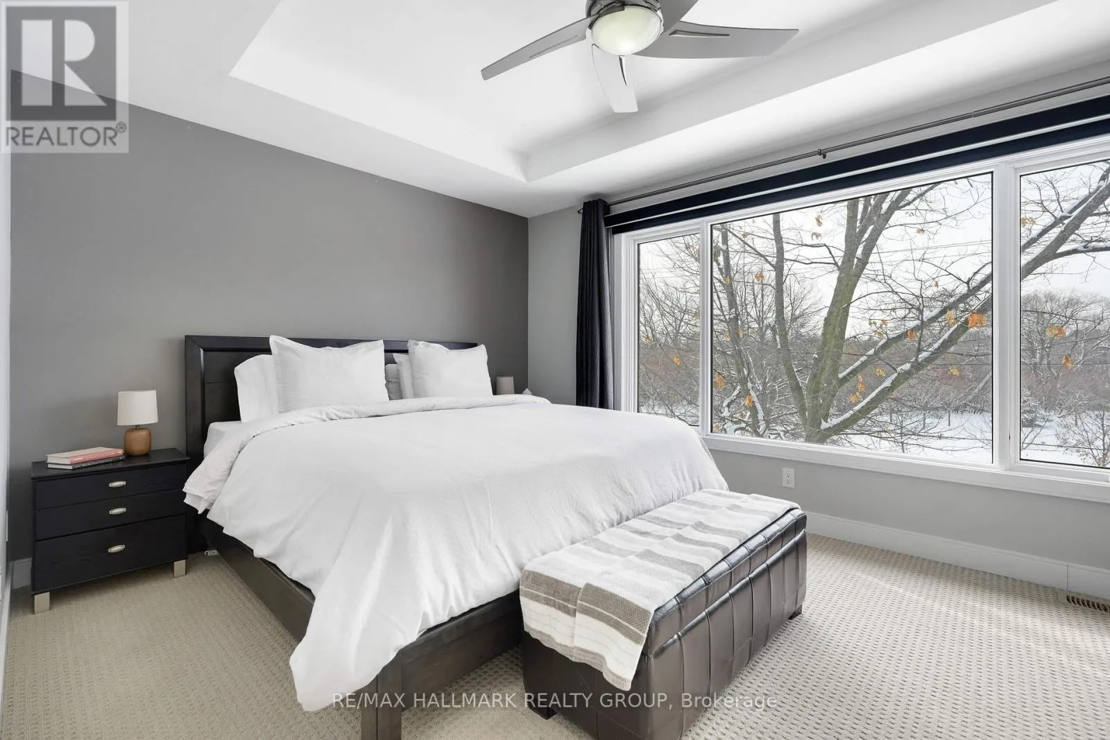 Cross Streets: Queen Mary - North River. ** Directions: Vanier Parkway to Queen Mary, West on Queen Mary to North River, Left onto North River. Exceptional River View Home Overlooking NCC Parkland & the Rideau River. This stunning 2+1-bedroom residence offers striking architecture, & approx. 2340 sq. ft of living space with breathtaking west-facing river views, & a prime location in one of Ottawa's most desirable enclaves. Perfect for downsizing or embracing a low-maintenance, carefree lifestyle, this home combines modern luxury w functional design. The front entrance features imported ceramic tile, solid oak staircases w wrought-iron railings, & a designer stone accent wall that sets a refined tone. The versatile main-level space is ideal for a home office, fitness studio, or creative workspace, complemented by a stylish powder room with upgraded finishes. The fully drywalled lower level, currently a workshop, can easily be converted into a media room or additional living space. The second level is dedicated to entertaining, w open-concept living and dining areas, luxurious hardwood flooring, a gas fireplace as a focal point, and expansive floor-to-ceiling windows framing westward views over NCC parkland & the Rideau River. The kitchen is perfect for hosting, featuring granite countertops, stainless steel appliances, upgraded tile, & a convenient eat-in bar. The adjacent dining area offers custom built-in bench seating with hidden storage. The upper level includes two spacious bedrooms, each with a walk-in closet and private ensuite bath. The primary ensuite boasts a custom enlarged glass shower with upgraded tile finishes. Additional highlights include custom blinds on all windows, pot lighting throughout the entertainment level, luxurious Berber carpet in bedrooms, a direct gas BBQ connection on the expansive deck, and a gas clothes dryer. Enjoy an exceptional location step from the Rideau River, scenic walking and cycling paths, Rideau Tennis & Sports Club, The Bridge Public House, and seamless access to Sandy Hill and downtown via the Adawe Crossing pedestrian bridge. (id:27476)