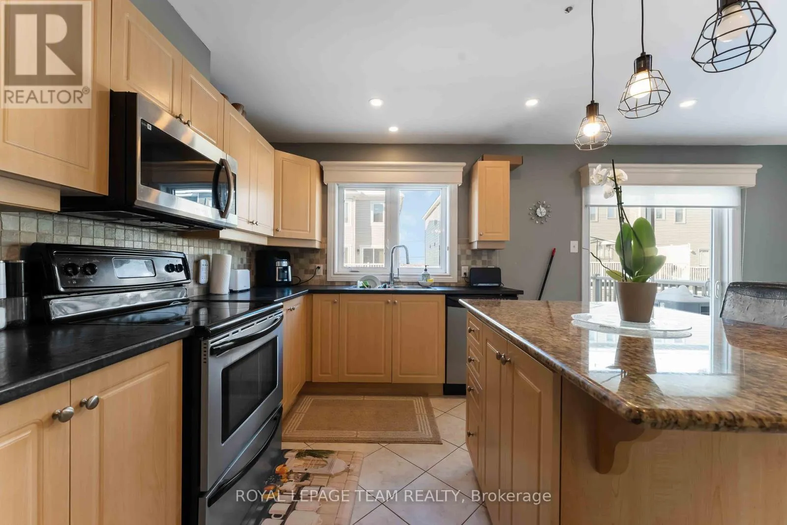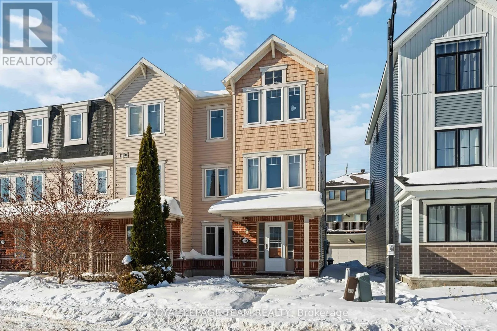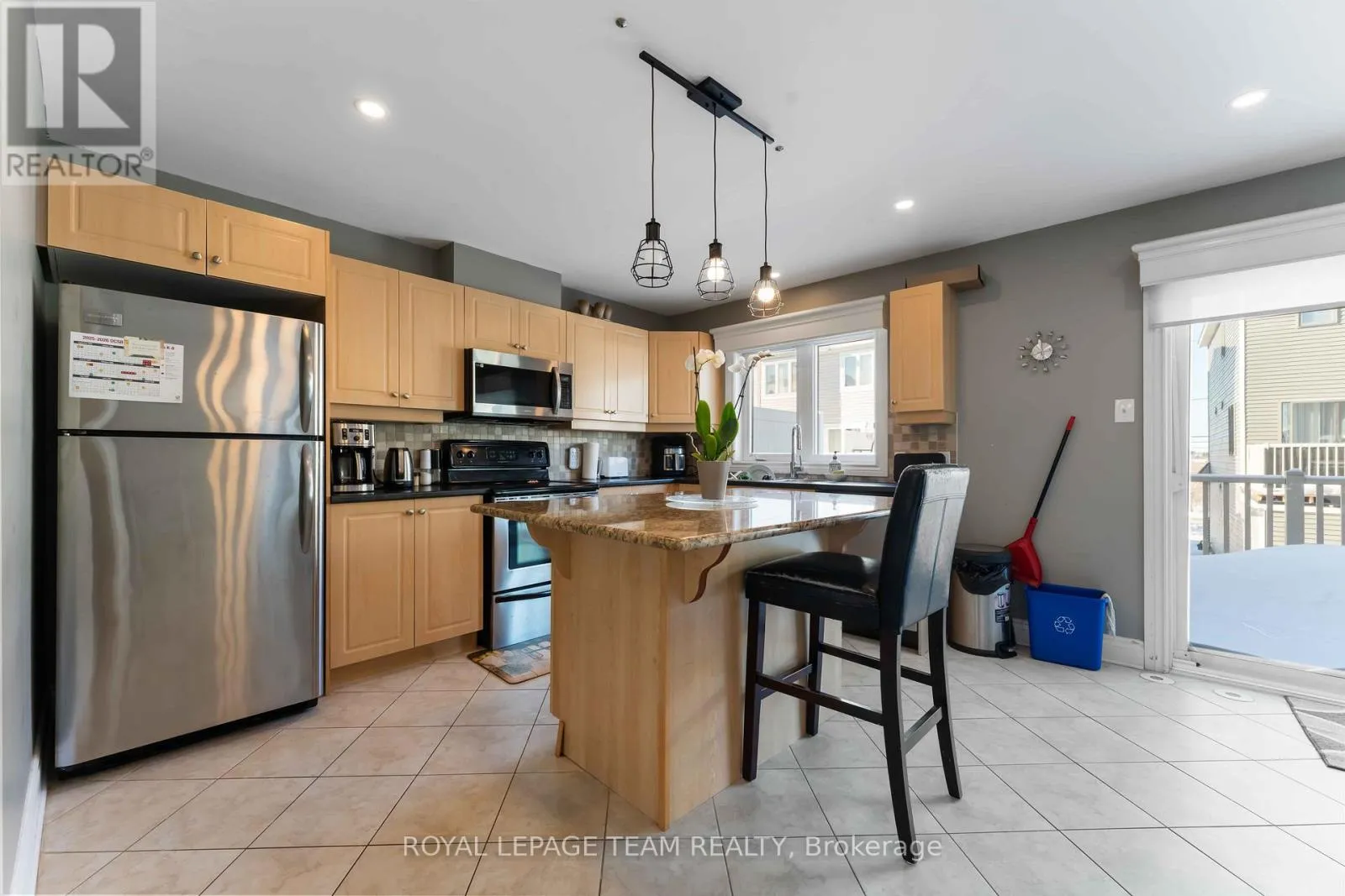 Huntmar to Maplegrove to Rosehill to Harmattan. Welcome to 161 Harmattan Drive! Bright and spacious 3-storey, 3-bedroom end-unit townhome offering a double car garage and perfectly situated on a quiet street. The main level offers a versatile recreation room and convenient laundry. The second level features a sun-filled kitchen with ample cabinetry, granite island countertops, pantry, and pot lighting, along with an open living/dining area. Step out to the large balcony off the kitchen, complete with a gas BBQ hookup-perfect for entertaining. The upper level includes three generously sized bedrooms, a full main bath, and a primary suite with walk-in closet and ensuite featuring a walk-in shower. Carpet throughout bedrooms and stairs. Easy access to Hwy 417, shopping including Tanger Outlets, entertainment and sports at the Canadian Tire Centre, and nearby recreation & many top-level schools. Come see why you will want to call this home. Book your showing today! (id:27476)