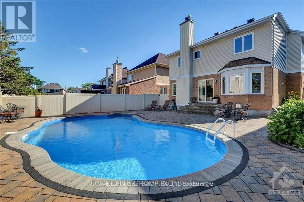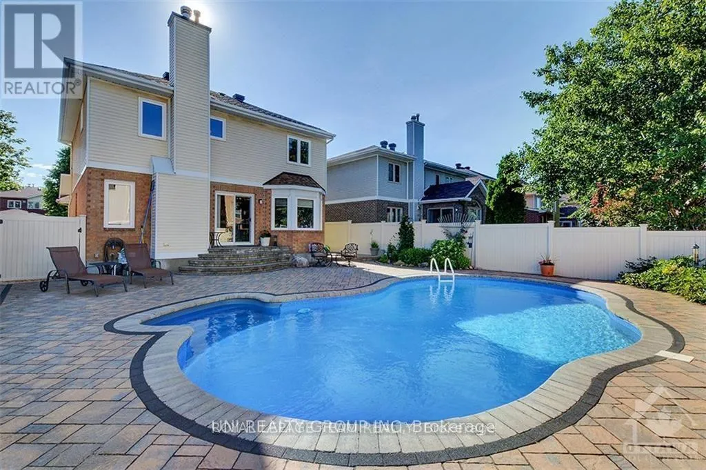 Cross Streets: Centrepointe Drive to Dalecroft Crescent. ** Directions: Off Centrepointe Drive near Baseline Road, in the Centrepointe area. Welcome to this beautiful Minto built home nestled on a quiet crescent in the heart of prestigious Centrepointe on a fully fenced 42' x 108' lot, just steps from Centrepointe Park. This sun filled two storey property offers a timeless and functional layout featuring 3 spacious bedrooms, 4 bathrooms, main floor laundry with a convenient side door and fully finished basement, beautifully renovated interior throughout. The inviting foyer is very functional, while the kitchen showcases oak cabinetry, quartz countertops, a central island, and an eat in area open to the family room with new laminate flooring and a cozy wood burning fireplace. Patio doors lead to a private backyard oasis complete with an in ground saltwater pool, custom interlock patio and walkways, professionally landscaped grounds, perennial gardens, and refined night lighting, perfect for entertaining or unwinding all summer long. The second level offers a spacious primary bedroom with an ensuite featuring a whirlpool tub, separate shower, and walk-in closet, along with two additional well sized bedrooms. The finished lower level adds exceptional versatility with a spacious rec room with the 2nd fireplace, hobby or office space, and an additional powder room, ideal for teens or an in law suite. Additional highlights include a 16' wide garage with double driveway and an interlock front entrance with illuminated steps. Ideally located minutes to Algonquin College, Highway 417, College Square, and the future Baseline LRT station, this move in ready home seamlessly blends traditional elegance, modern comfort, and an unbeatable location, Centrepointe living at its best. Heat Pump(2023). Some photos are virtually staged, and 24 hours irrevocable is required on all offers. (id:27476)