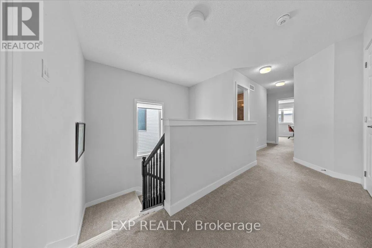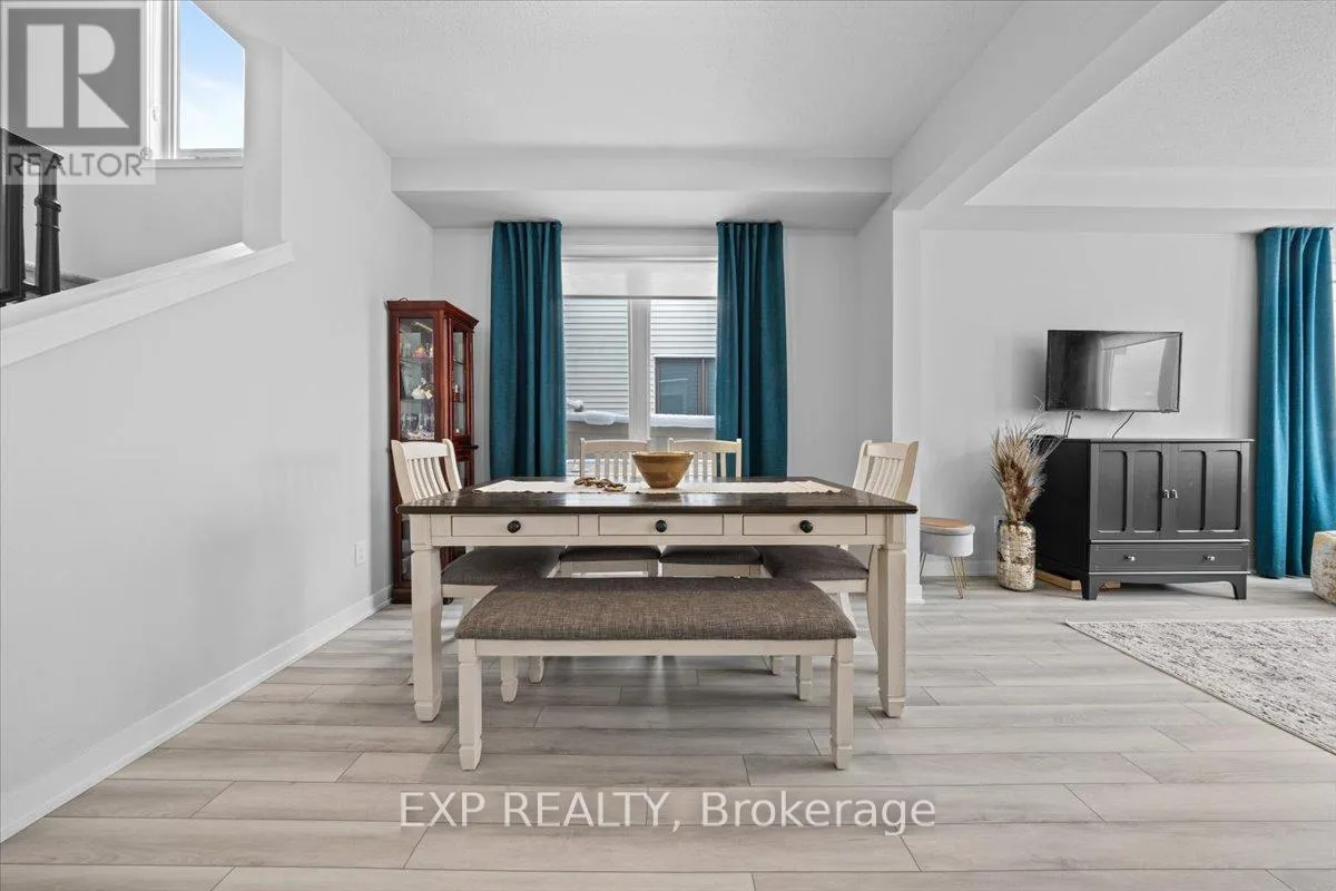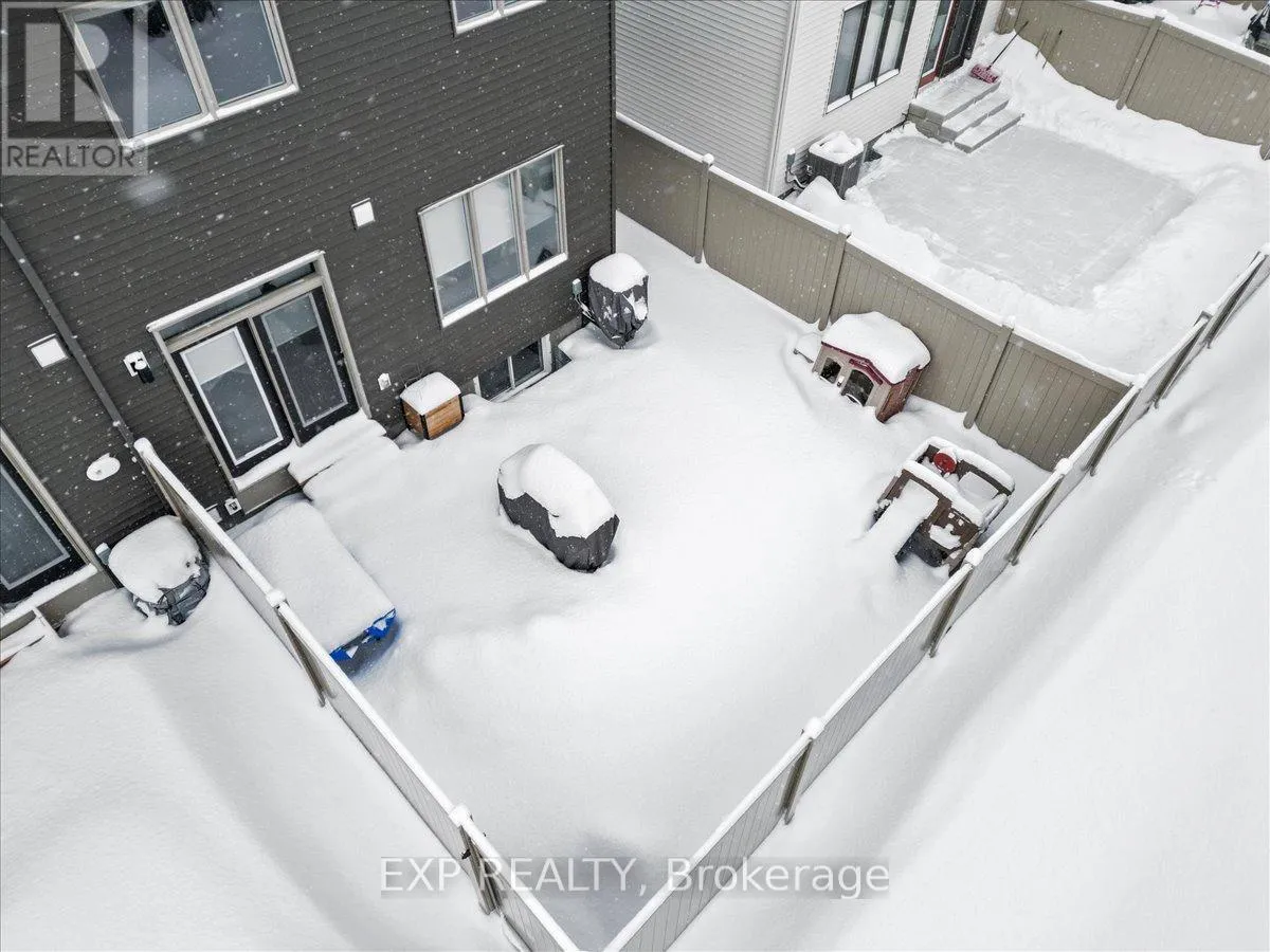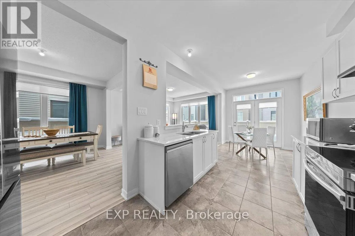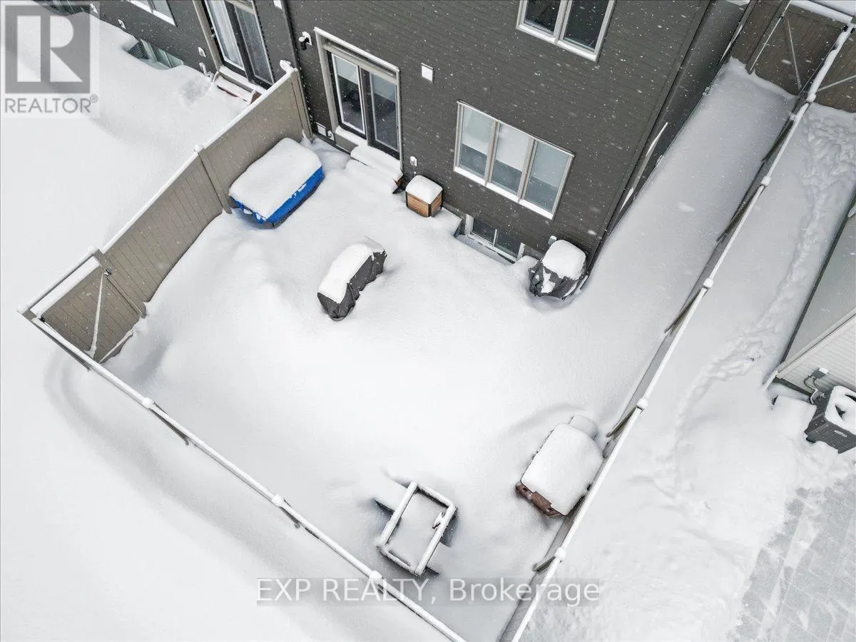Eagleson Road to Perth Street to Meynell to Quilter Row Welcome to this beautifully maintained 4 bedroom end-unit townhome offering style, comfort & thoughtful upgrades throughout. The bright main floor features luxury vinyl flooring and a modern kitchen with quartz countertops, perfect for both everyday living & entertaining. Enjoy peace of mind with an extended warranty on all appliances and owned furnace, water heater & air conditioner. Custom blinds are installed throughout the home, adding both elegance & privacy. Step outside to the backyard featuring an interlock patio, PVC fencing, and a BBQ gas line ready for hookup, ideal for outdoor enjoyment. Additional highlights include eavestroughs and a basement with rough-in plumbing for a future bathroom, offering excellent potential for added living space. A move-in-ready home with quality upgrades inside & out-perfect for modern living. (id:27476)