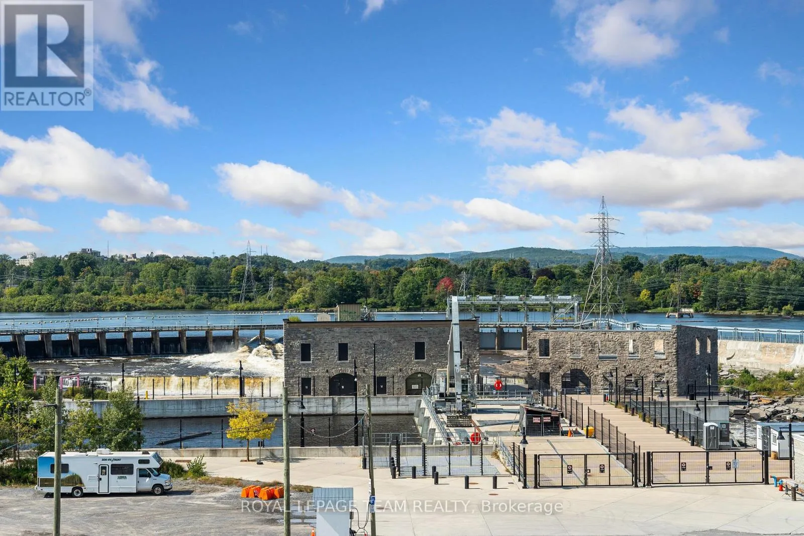 Cross Streets: Miwate Pvt & Chaudiere Pvt. ** Directions: North on Booth Street. Left on Miwate Private. Discover unparalleled waterfront living with this charming 1 bed, 1 bath condo overlooking the Ottawa River. Spanning 557 sq ft, this unit offers a bright, spacious layout with an open-concept living area and a 50 sq ft balcony showcasing partial waterfront views. The kitchen is outfitted with sleek stainless steel appliances, while the entry features a convenient closet. In-unit laundry, underground parking, and an additional storage locker enhance everyday convenience. Residents enjoy a lifestyle-focused community with a cashierless convenience store in the building for quick, on-the-go essentials, as well as a building-wide CSA program through Mike's Garden Harvest for fresh, local produce delivered right to your doorstep. Located steps away from parks, extensive bike paths, Pimisi LRT station, Place du Portage, and Terrasses de la Chaudière, this home is perfectly situated for urban living. Embrace the carbon-neutral community, celebrated for its planning excellence, including the ISOCARP Grand Prize in 2017. Enjoy amenities such as a gym, bike/pet wash station, reading loft, and bike storage. This is more than just a home-it's a lifestyle. (id:27476)