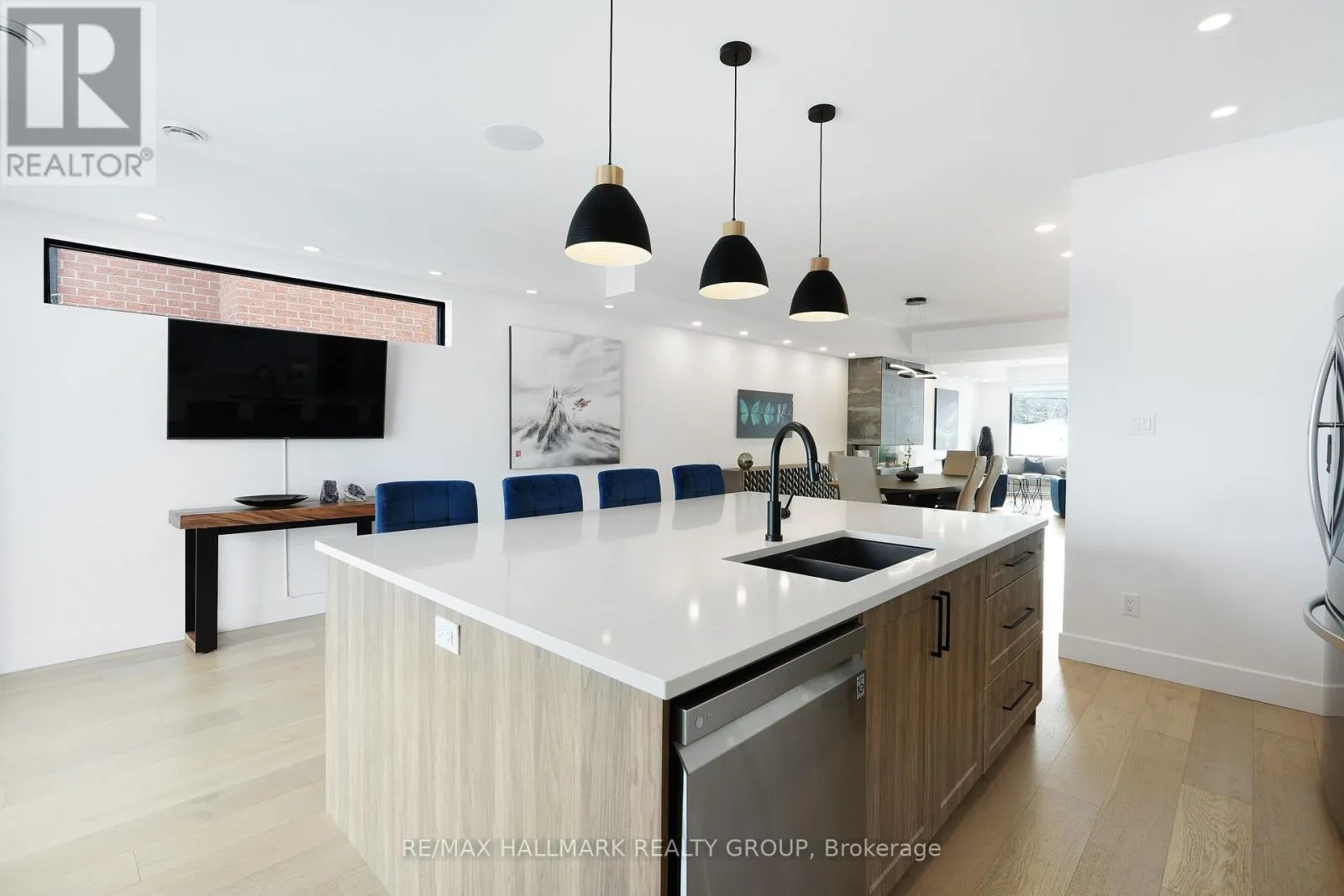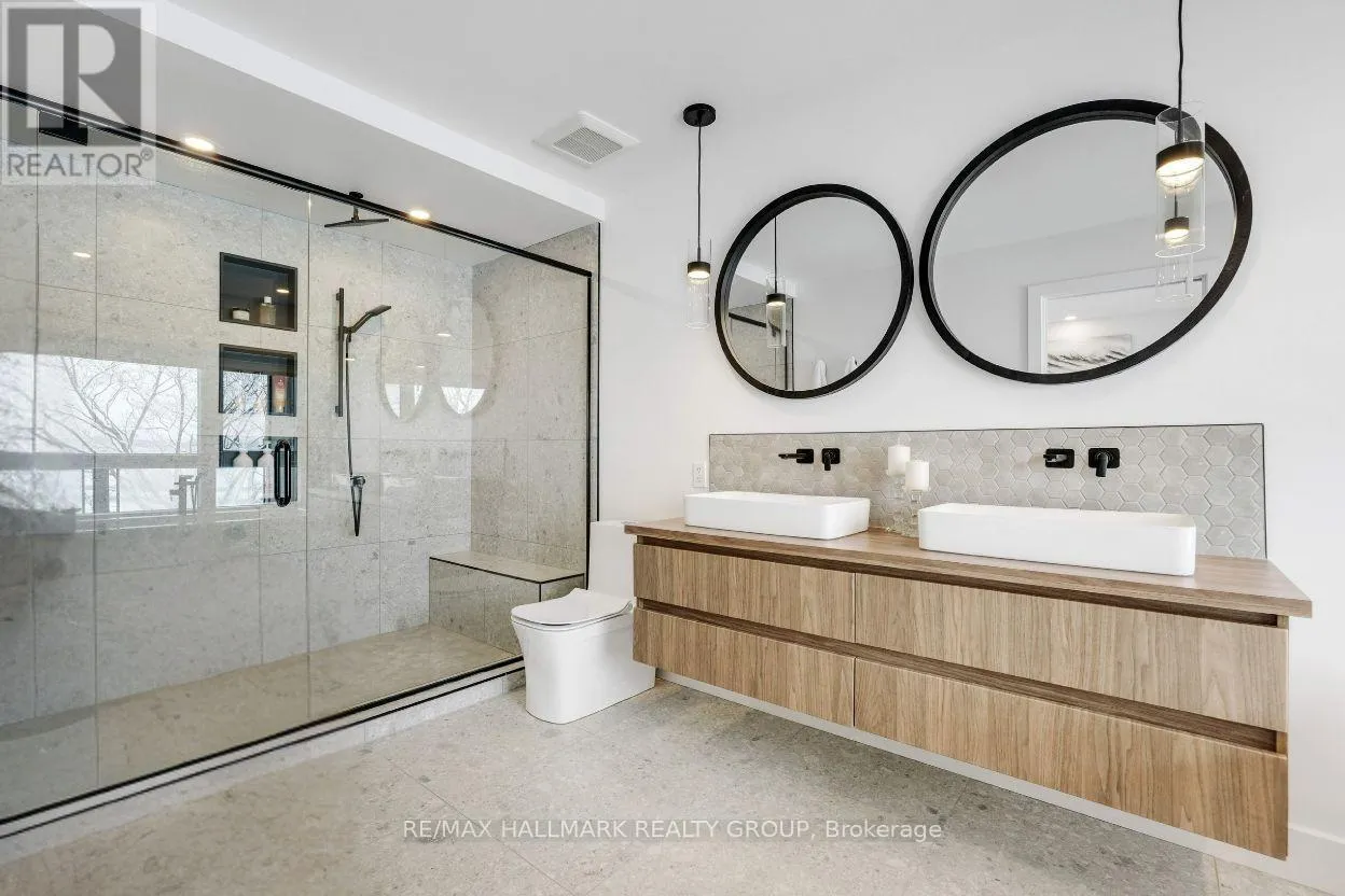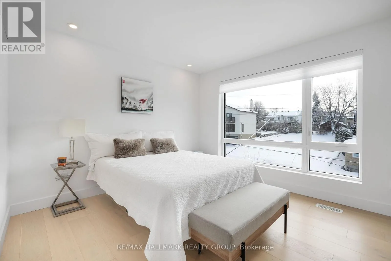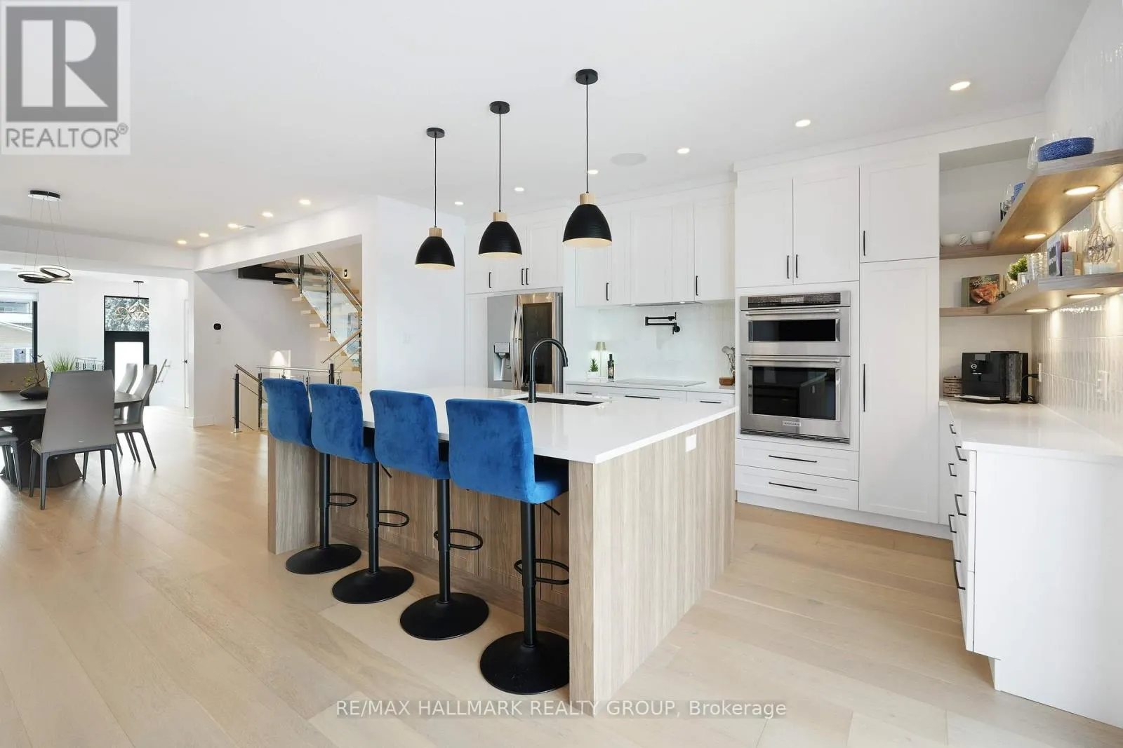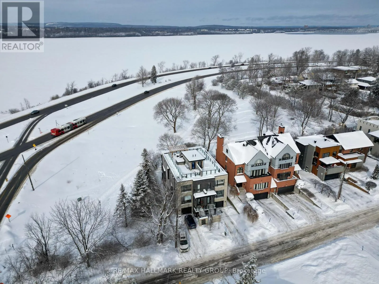 Cross Streets: Woodroffe Avenue - Rice Avenue. ** Directions: 417 to Woodroffe Avenue North to Rice Avenue near the Parkway or Parkway, South on Woodroffe Avenue 1st left on Rice Avenue. Luxurious 3-Storey Residence Backing onto NCC Parkland w Panoramic Ottawa River & Gatineau Hills Views Built in 2023 and set in a quiet, tucked-away downtown location, this exceptional 3+1 bedroom residence backs directly onto NCC parkland and offers breathtaking year-round views of the Ottawa River and Gatineau Hills. Featuring striking architecture and curated designer finishes, this home delivers a rare blend of privacy, elegance, and an unparalleled riverside lifestyle. The open-concept main level is designed for both grand entertaining and refined everyday living. A spacious living room is anchored by a stunning three-sided gas fireplace, flowing seamlessly into an expansive dining area ideal for hosting large gatherings. The chef's kitchen is a true showpiece, showcasing a dramatic 5' x 8' quartz island, top-of-the-line cabinetry blending sleek modern finishes w textured wood accents, and exquisite appliances perfect for gourmet creations. A stylish powder room with floating vanity & designer wave-pattern accent tile completes the level. Step outside to the spacious terrace off the kitchen, ideal for al fresco dining with tranquil river views. The second level features a serene primary suite with captivating vistas of the Gatineau Hills. The spa-inspired ensuite offers a double glass steam shower, freestanding soaker tub, double vanity, imported porcelain tile finishes. Two additional generous bedrooms share a beautifully appointed guest bath. A thoughtfully designed laundry room includes full-size appliances, folding counter, and hanging rod. Steps lead up to the spectacular rooftop terrace with sitting area, six-person hot tub, and aluminum and glass railings creating a private elevated retreat. The walk-out lower level offers an additional bedroom, full bath, & spacious media room with terrace doors to the patio and fenced rear garden with private gate to parkland. Garage includes workshop space and secure storage. Simply unbeatable. (id:27476)