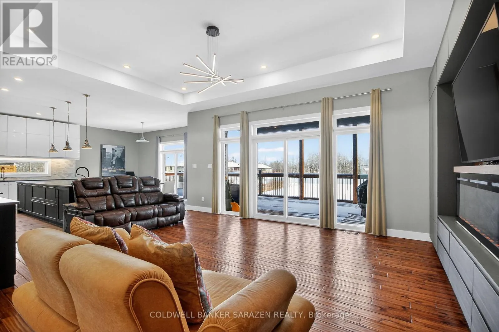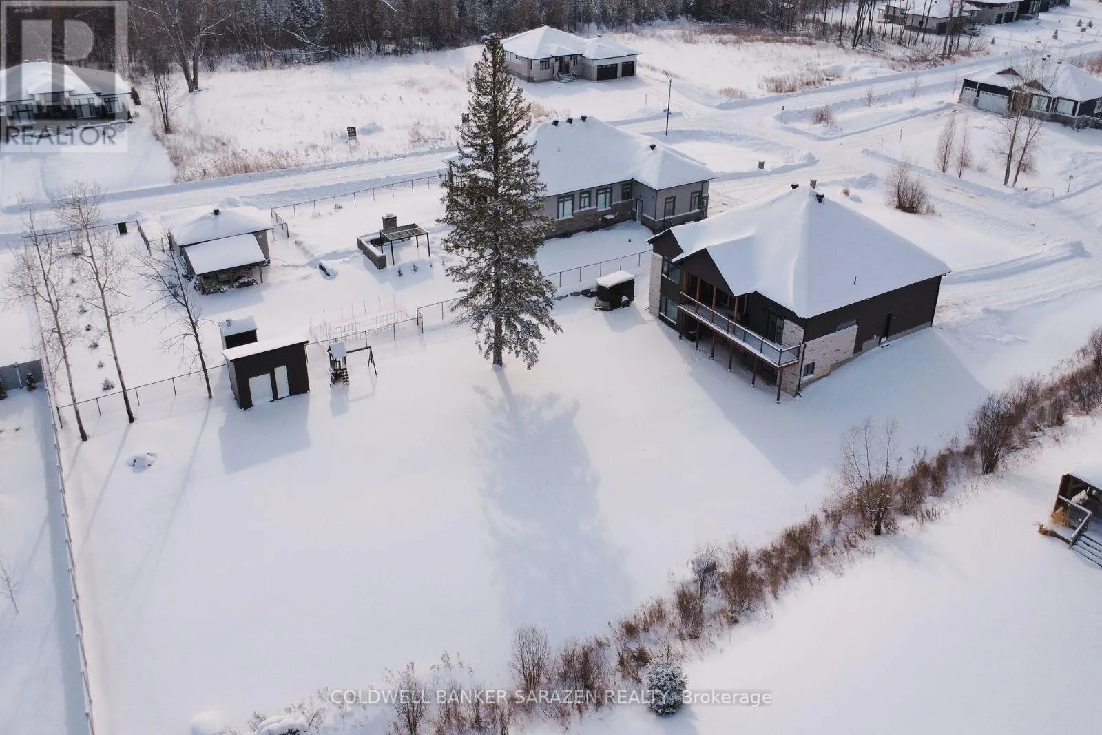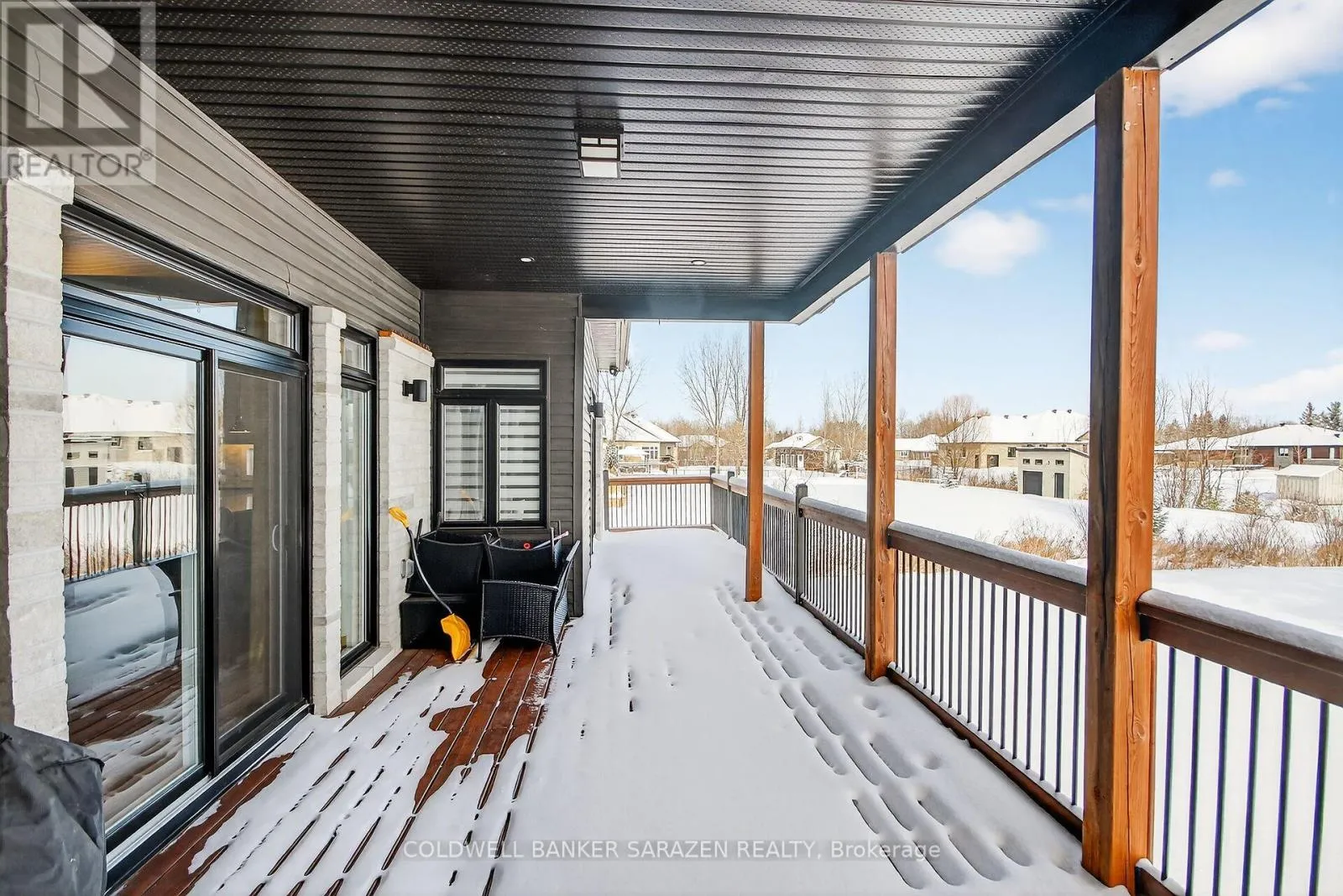 Cross Streets: Evening Shadow Ave & Magic Morning Way. ** Directions: South on Bank Street towards Greely Evening Shadow Avenue Magic Morning Way. Welcome to an extraordinary opportunity in the tranquil community of Greely! Presenting a custom executive bungalow nestled on a 116x300-sqft parcel, offering ~4160-sqft of inviting living space (up & down), with 3+2 bedrooms; 3 full baths; & abundant access to outdoor spaces. The main level offers 10' ceiling heights, 11' in the living rm, & a layout made for entertaining. The chef's kitchen is a showstopper w/ quartz countertops; 2 sinks; a fabulous island w/ breakfast bar seating; a butler's pantry; plenty of cabinet and counter space; & access to the sun filled portion of the full-width deck -- offering backyard views & covered & exposed seating. The living room features a feature wall w/ a stunning fireplace & plenty of storage; coffered ceilings & pot lights; & patio doors to full-width deck. There are 3 bedrooms on the main level, including the primary, which includes a large walk-in closet; stunning 5-piece ensuite w/ double sinks; a separate shower & soaker tub; pot lights; patio doors to the deck overlooking the large yard. The second bedroom is adjacent to the full family bath; & the third bedroom is currently used as an office. The main level laundry room is conveniently located. Hardwood floors on the main level & staircase to the lower level. The walkout lower level features a offers tremendous finished space, including two bedrooms w/ above-grade windows; a den/home office/hobby room; full bathroom; & patio door w/ walkout access to the covered ground-level patio & backyard. Spacious oversized garage w/ 14.5' walls and two 8'x8' garage doors; inside entry; & side door access to the yard. The surfaced driveway offers parking for several vehicles. There is a 10'x16' full-height shed w/ garage & entrance doors. 2 modern floor outlets (living room & office/bedroom). Tucked away at the end of a dead-end street w/ limited through traffic. This is more than a home - it's a lifestyle in one of Ottawa's most desirable communities. Book your private tour today! (id:27476)