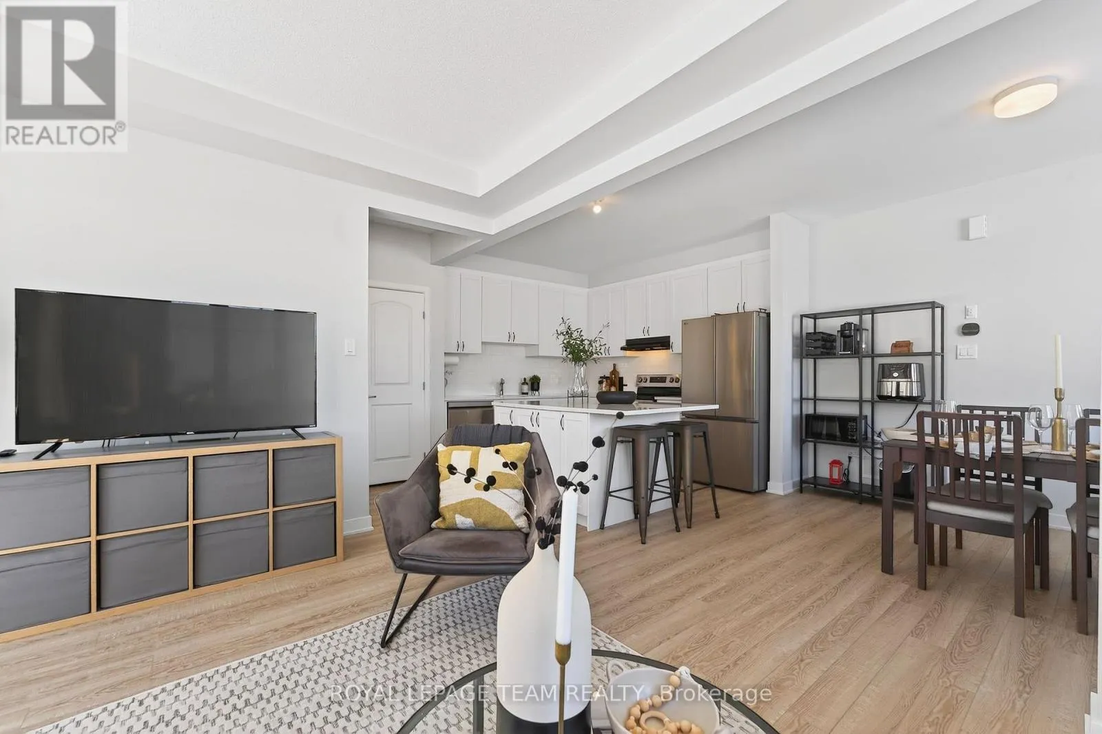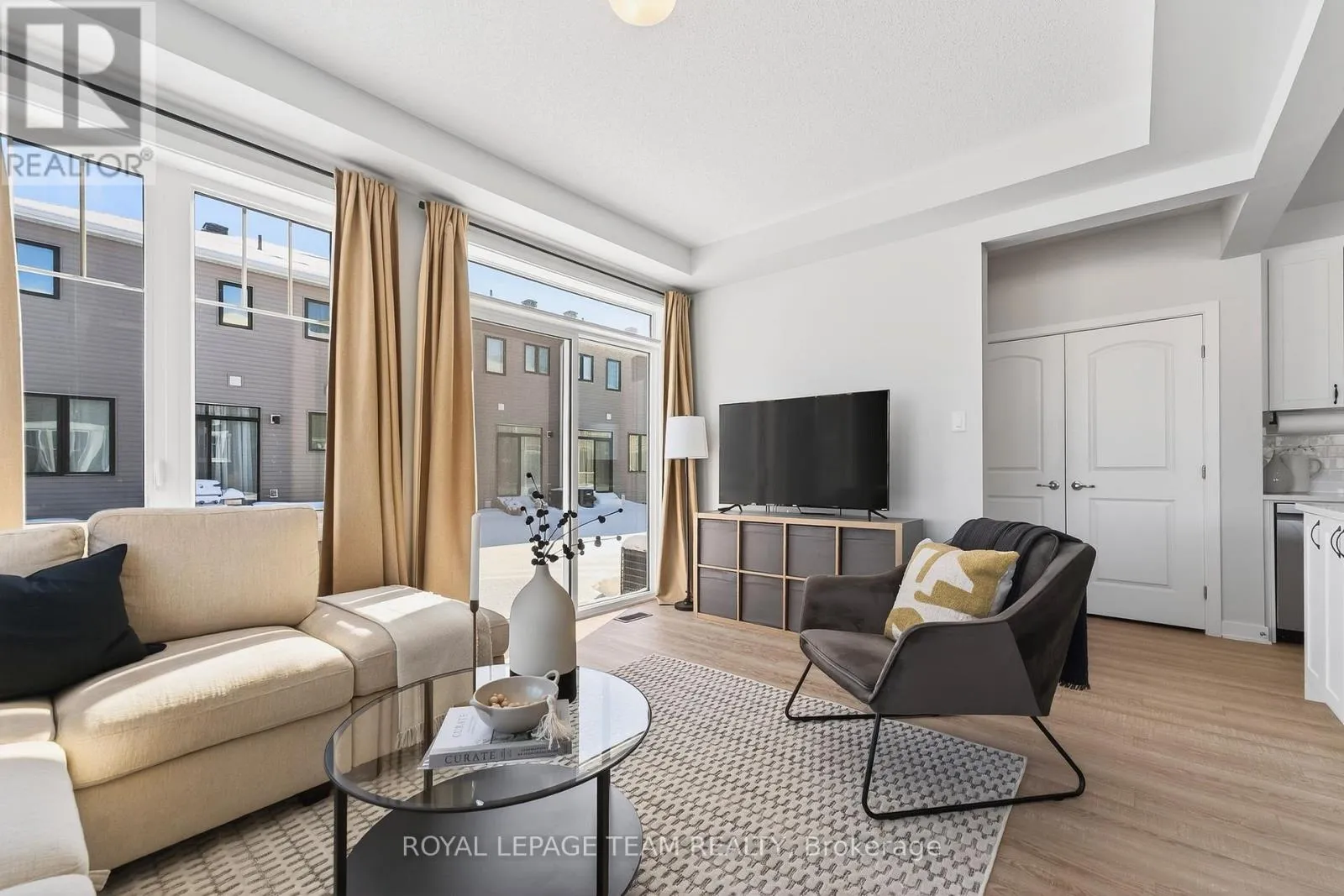 Cross Streets: Perth St to Meynell Rd. ** Directions: Ottawa St, Meynell Rd, Bronze Copper Crescent. Located in the fabulous town of Richmond on a quiet street, and large corner lot, this 3 bedroom, 4 bath end unit townhome offers just shy of 2200 sq ft of living space, and is just a year old and truly shows beautifully! The spacious main floor features an open, well designed layout with an abundance of windows that flood the home with natural light. From the moment you step through the front door, you're welcomed by a bright, airy atmosphere that truly sets the tone for this exceptional home.The stunning kitchen showcases a crisp white backsplash, stainless steel appliances, and an oversized quartz island - perfect for everyday living and entertaining. Also located on the main floor is a 2pc powder room, just off the kitchen.The main floor den is a perfect work from home space. The 2nd level offers 3 bright and spacious bedrooms. The primary bedroom features a luxurious 4 piece ensuite and generous closet space, while two additional bedrooms provide flexibility for family living, guests, or a 2nd home office. A full main bathroom & laundry room complete the second level. The finished basement expands the home's living space with a generous family room, plus a full bathroom offering an ideal setup for guests, or the kids and their friends. Enjoy the flexibility and comfort this level adds to the home's overall layout. (id:27476)