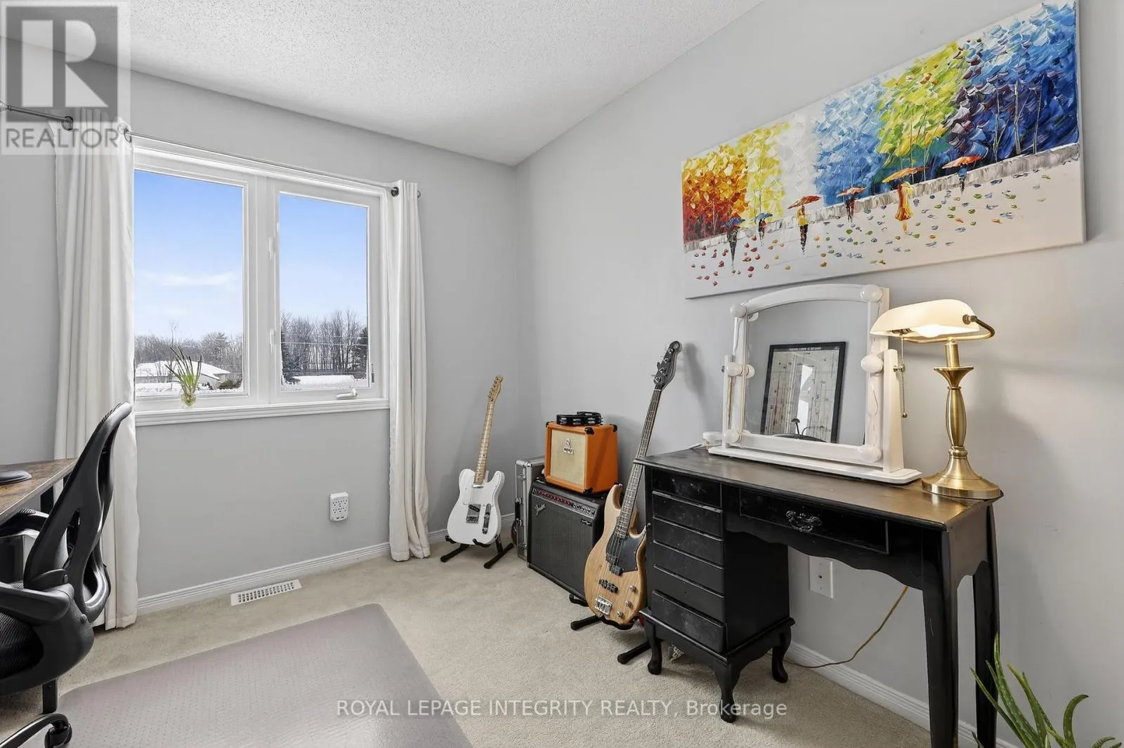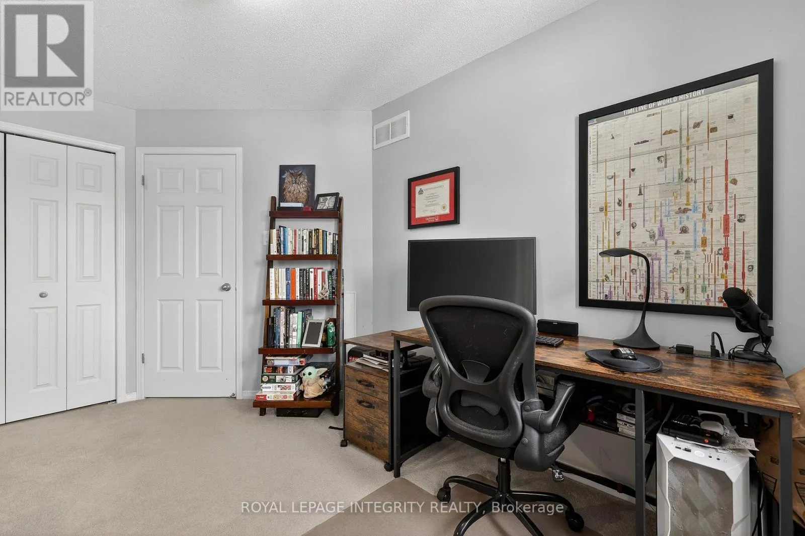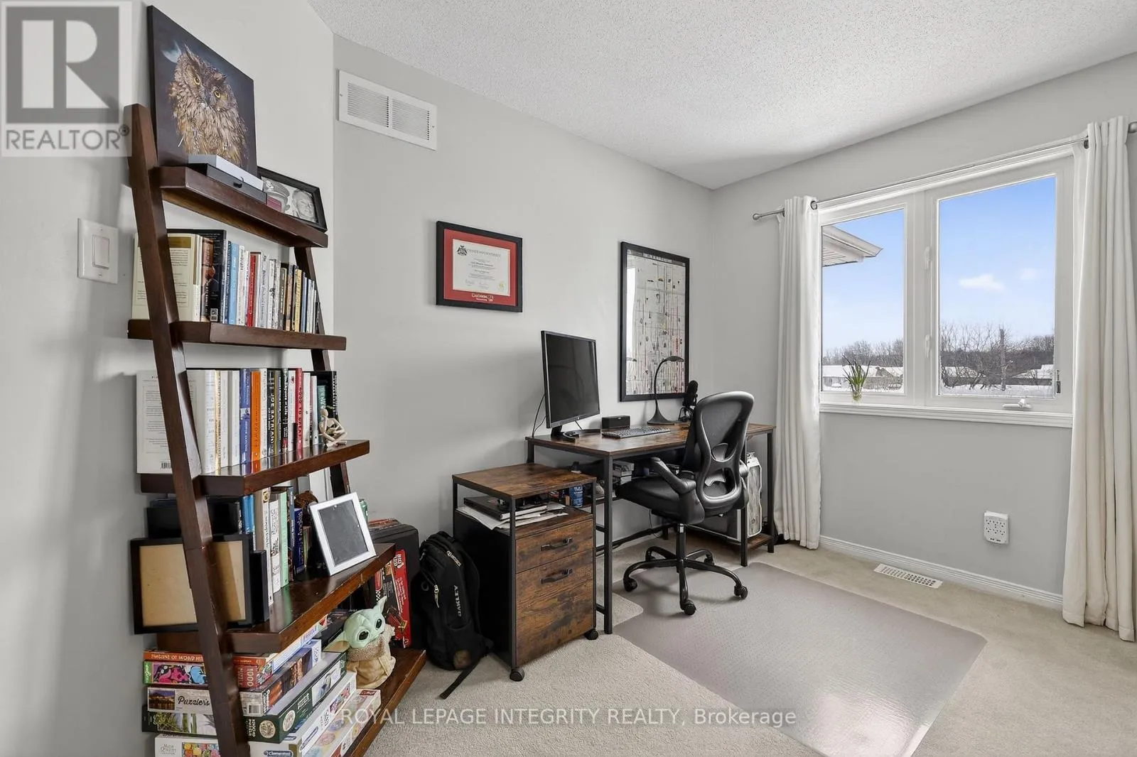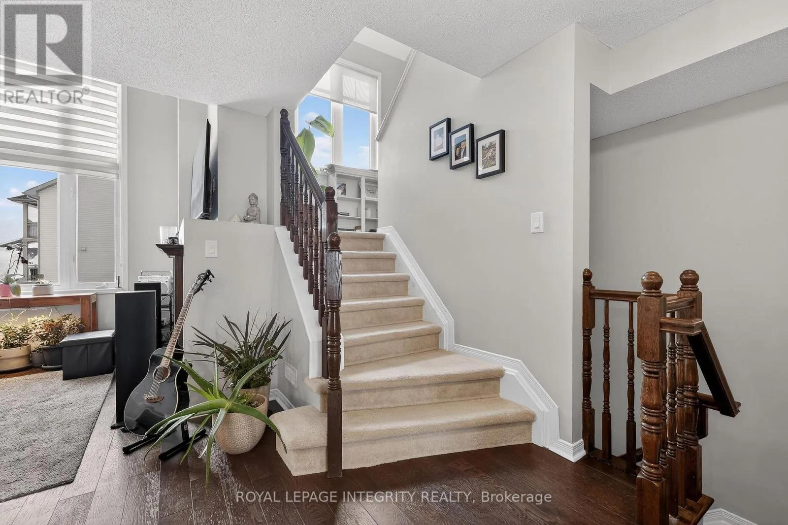 Cross Streets: Renaud and Glenlevit. ** Directions: Navan Road to Left on Renaud to Right on Glenlevit to Left on Galston. Bright and well-maintained upper-unit terrace home offering an ideal layout for professionals, first-time buyers, or investors. The inviting chalet-style living room features a gas fireplace and second-floor loft overlooking the space below. The open-concept main floor includes a modern kitchen with stainless steel appliances, shaker-style cabinetry, subway tile backsplash, double sinks, and pot lighting, with access to a private balcony.The spacious living and dining area is filled with natural light from a large picture window. Upstairs, the generous primary bedroom offers a cheater ensuite and private balcony. A well-sized second bedroom and a versatile loft-perfect for a home office or lounge area-complete the upper level.Conveniently located with easy access to Orléans, shopping, transit, and downtown Ottawa via Navan Road. (id:27476)