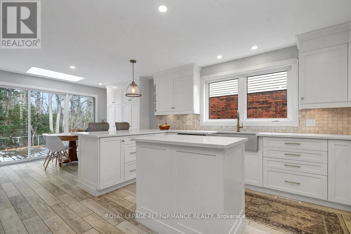 Cross Streets: Hiawatha Park Road. ** Directions: 174 to Jeanne-D'Arc. North on Jeanne-D'Arc, to Voyageur, to Eastport to Ravine Way. Timelessly renovated 4+1 bedroom, 5 bathroom residence on a premium lot backing onto a treed ravine and just a five minute stroll to theOttawa River. Over 3300 square feet + finished basement. The main level welcomes you with elegant coffered ceilings throughout the living room, formal dining room & family room, while a 2-sided gas fireplace unite the living and family room. The main floor laundry room adds everyday convenience and offices/dens on both the main and lower levels, allow versatile work-from-home options. The gourmet kitchen is a chef's dream-complete with island, marble backsplash, gas range, stainless steel appliances, wine fridge, and a casual eating area with access to the backyard deck. The second level boasts four generous bedrooms and three full bathrooms. The expansive primary suite includes a spacious walk-in closet & 5-piece spa-inspired ensuite with a free-standing soaker tub, open shower, and double sinks. A second bedroom offers its own 3-piece ensuite, and a third full bathroom serves the remaining rooms. The fully finished lower level offers a teen retreat or welcoming guest space with a large rec room, 3-piece bathroom, a versatile den/bedroom & an office/den. This turn-key ravine property is a rare offering where luxury, privacy, and proximity to the River come together in perfect harmony. (id:27476)