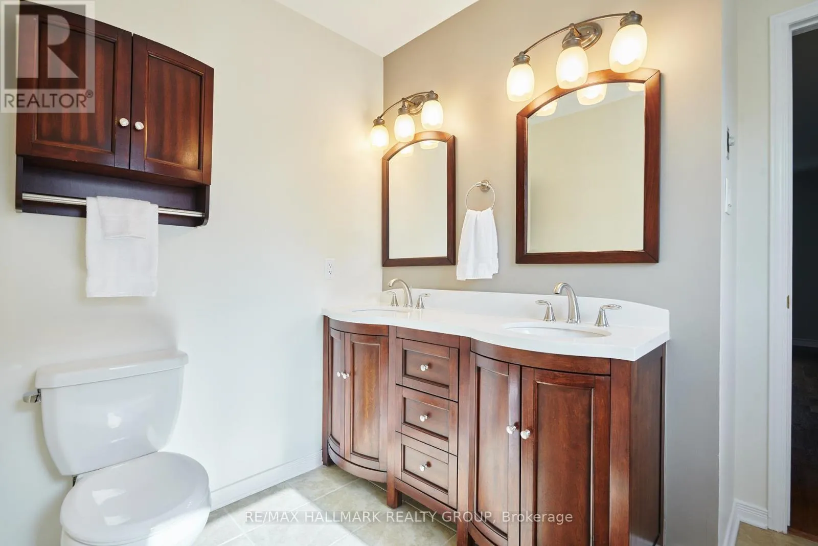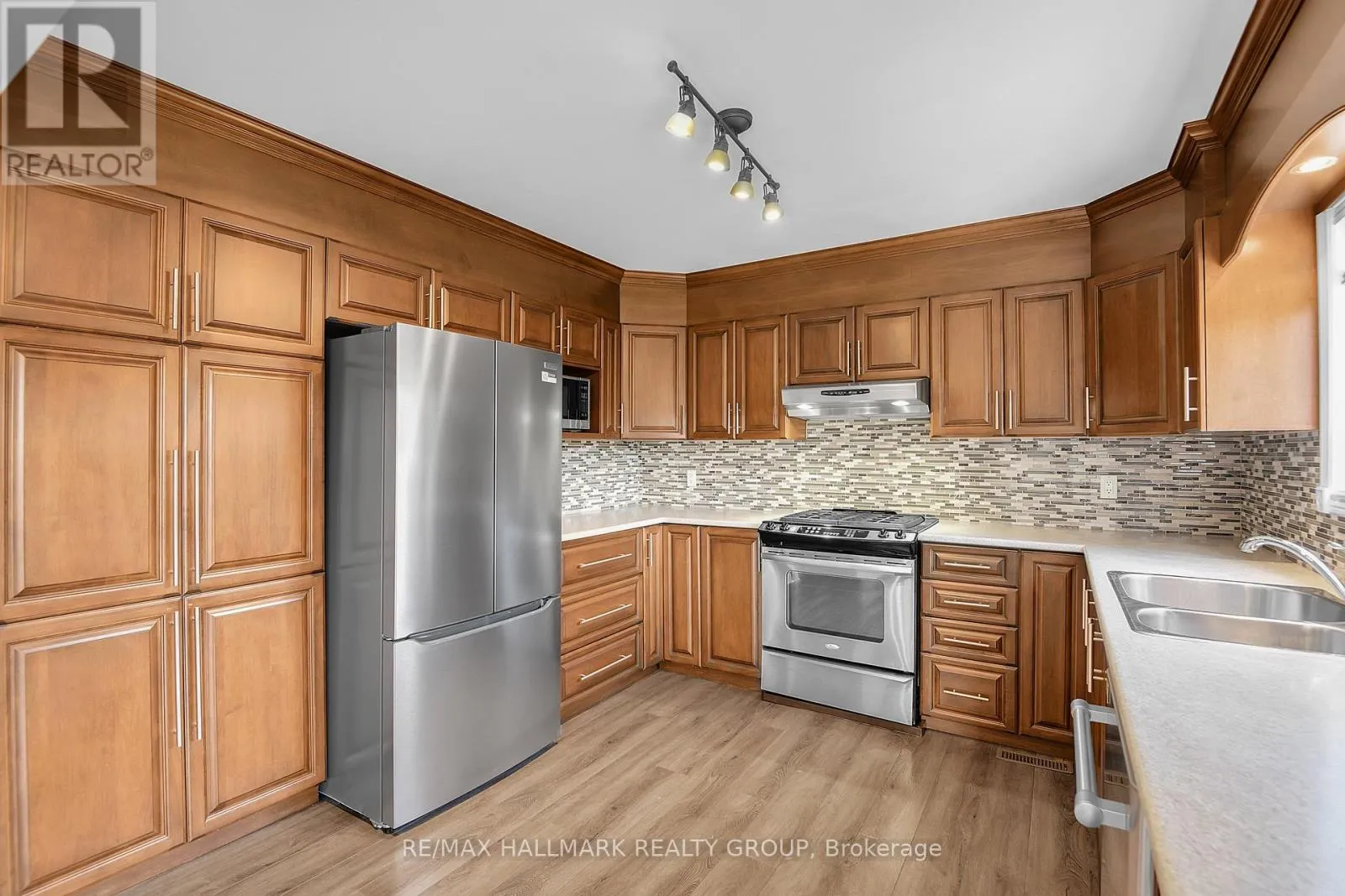 Cross Streets: Des Epinettes and Jeanne D'Arc Blvd. ** Directions: From: Jeanne D'Arc to DesEpinettes. East on Des Epinettes toSilver Bark, Left/North on SilverBark From: Tenth Line to DesEpinettes. West on Des Epinettes,Right/North on Silver Bark. Large 5bed 4bath in The Ravines, East Ottawa/Orleans. This beautiful, bright home boasts 4 spacious bedrooms on the upper level (2 with walk-in closets), 1 bedroom on main, 4 bathrooms (2 are en-suites), private main floor den, fully finished lower level, covered front porch with no direct facing neighbours, 2 car attached garage with inside access & polyaspartic finished floor and a large fully fenced back yard with patio. FEATURES |hardwood, luxury vinyl & tile flooring on main & upper levels (only stairs have carpet), vaulted skylight above custom iron-rail curved staircase providing abundant natural light, custom maple cabinetry & stainless steel appliances, primary en-suite bath enjoys double sinks, separate shower and more. CENTRALLY LOCATED | Walk to ravine trails, bus, neighbourhood schools and parks with play structures, baseball diamond, basketball court, soccer field, sliding hill in winter and city-maintained outdoor ice rink. Close to all amenities. Minutes to Place D'Orleans Shopping mall, Ray Friel Sports Complex with 3 ice rinks & pool, Landmark Cinemas, Movati Fitness, Petrie Island with supervised swimming on huge sandy beach and nature trails. VERSATILE LAYOUT | Main Floor: front entry foyer with french doors, hall enjoys vaulted ceiling & skylight, open concept living and dining rooms, large modern kitchen with generous work & storage space that opens to eating area and family room with wall of windows and a gas fireplace, 5th bedroom/den, powder room, laundry/mud room with access to side yard and garage. 2nd Floor: 4 spacious bedrooms, 2 generous walk-in closets, 1 5-piece en-suite bathroom, 1 3-piece en-suite bathroom, 2 linen closet/cabinets and a 3-piece full main bathroom. Basement: large recreation room, rough-in bathroom, separate hobby/games/bedroom, 10 ft. seasonal closet and storage areas. Quiet neighbourhood. Well maintained. This home accommodates various configurations to suit your family's aspirations. Furnace & Heat Pump Jan. 2026. (id:27476)