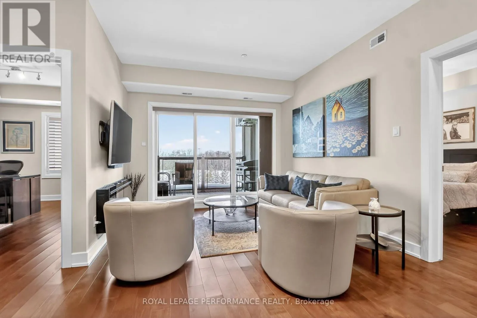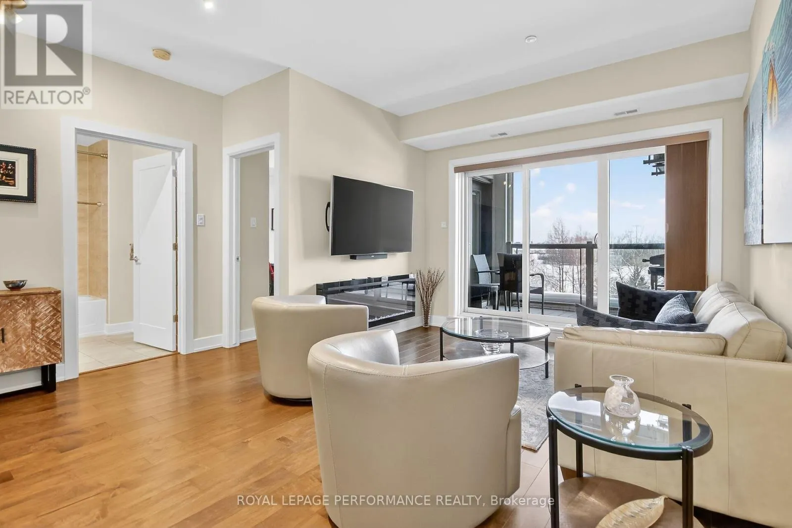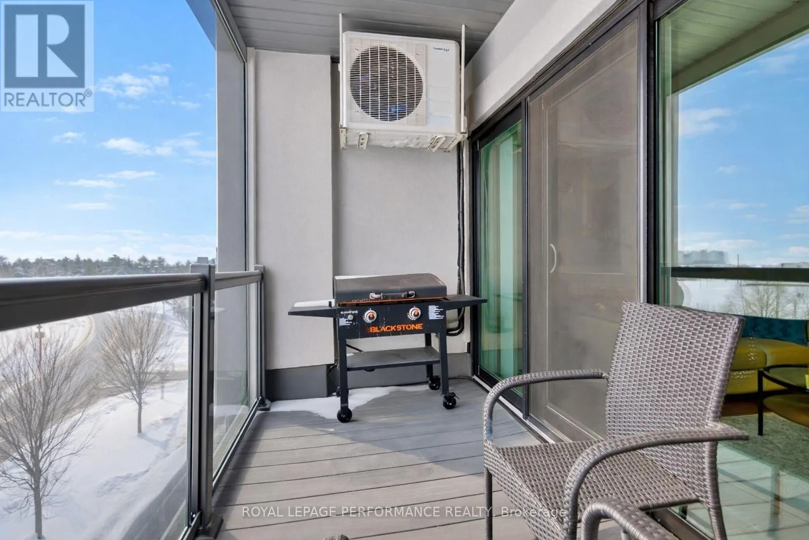 Cross Streets: Mountshannon Dr. & Berrigan Dr. Across from Ken Ross Park. ** Directions: South on Woodroffe Ave. past Fallowfield Rd. Longfields Dr, is the 2nd steet on right. 615 Longfields Rd is on the right side past Mountshannon Dr. or come in off of Strandhead Dr and turn onto Longfields Dr. Beyond well kept, immaculate 2 bedroom, 2 full bathroom penthouse apartment with unobstructed east view overlooking Ken Ross Park from the balcony and bedrooms. This apartment offers nine foot ceilings and has been totally upgraded with quiality finishings throughout. Upgraded kitchen and bathroom cabinets, custom ensuite double shower. All wood flooring and doors have been upgraded. Ceramic floor in both bathrooms. Higher quality stainless steel applinances featuring under granite top built in oven, and gas cook top elements. Built in microwave oven. Custom window coverings along with upgraded light fixtures throughout. The spacious balcony off of the living room features a custom power balcony sunshine screen, with durable flooring. A gas hook up BBQ is also included. Bright, open concept layout features a breakfast bar sitting area, custom kitchen with granite counter tops with lots of counter space and twelve storage drawers, complete with glass ceramic backsplash. Large dining room is where the laundry and utility closets are located. The spacious, bright living room includes the wall mounted electric fireplace and TV. Large sliding door access the balcony east views of the park. From the hallway, access the second full bathroom and spacious bedroom/office offering a large double closet, includes the TV, and offers a secondary access to the balcony. The large primary bedroom offer a spacious walk through closet to the ensuite bathroom with custom double shower stall. The apartment incluses one, underground indoor parking spot, plus an outdoor surface parking spot. A storage locker is includes in the basement parking area accessed off of the elevator area. You will not be disappointed with this upgraded top floor apartment with the many custom features. Within a 10 minute drive you have access to all the Barrhaven shopping/professional services amenities, restaurants etc. Walk to parks and transit. Don't miss this one of a kind unique apartment. (id:27476)