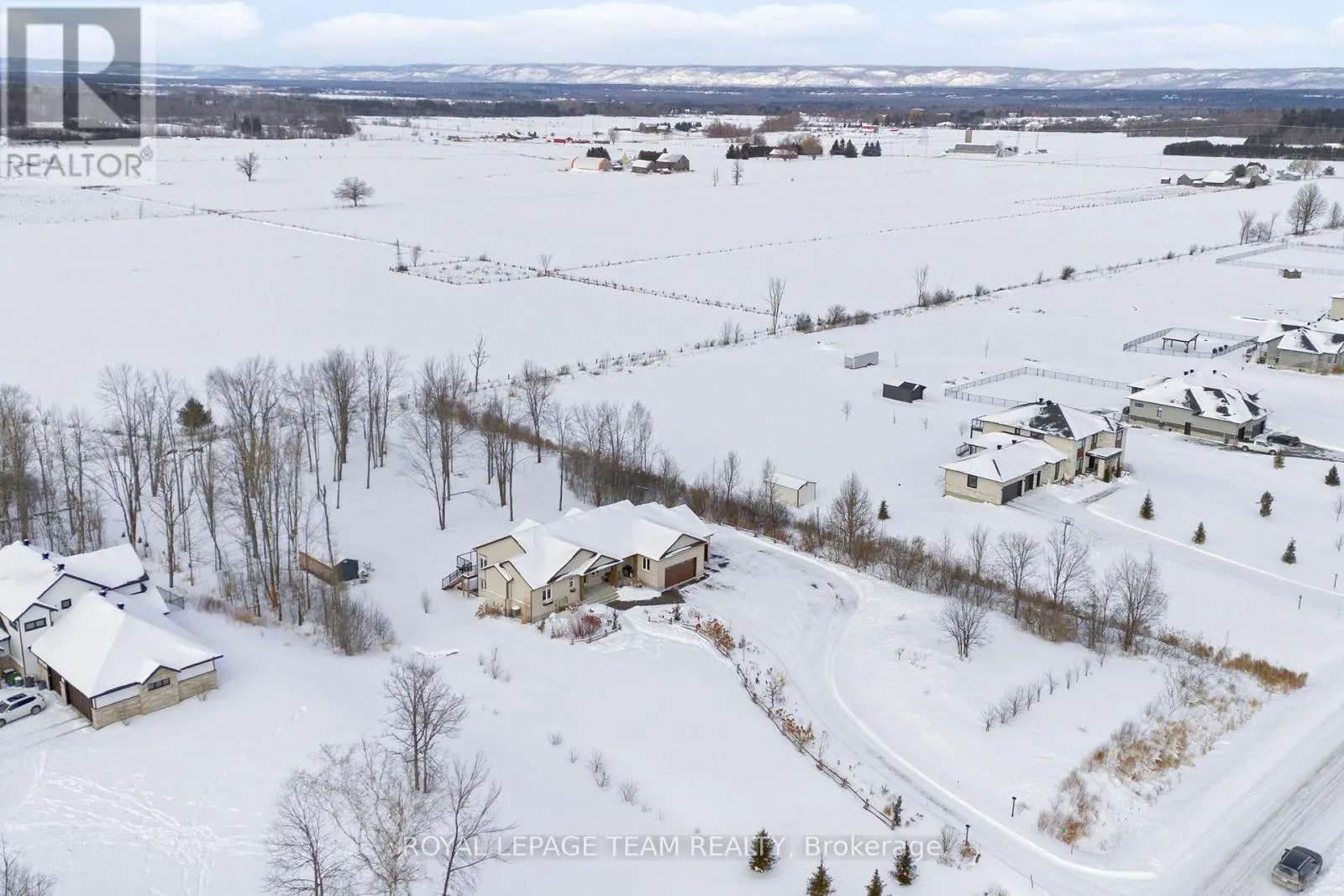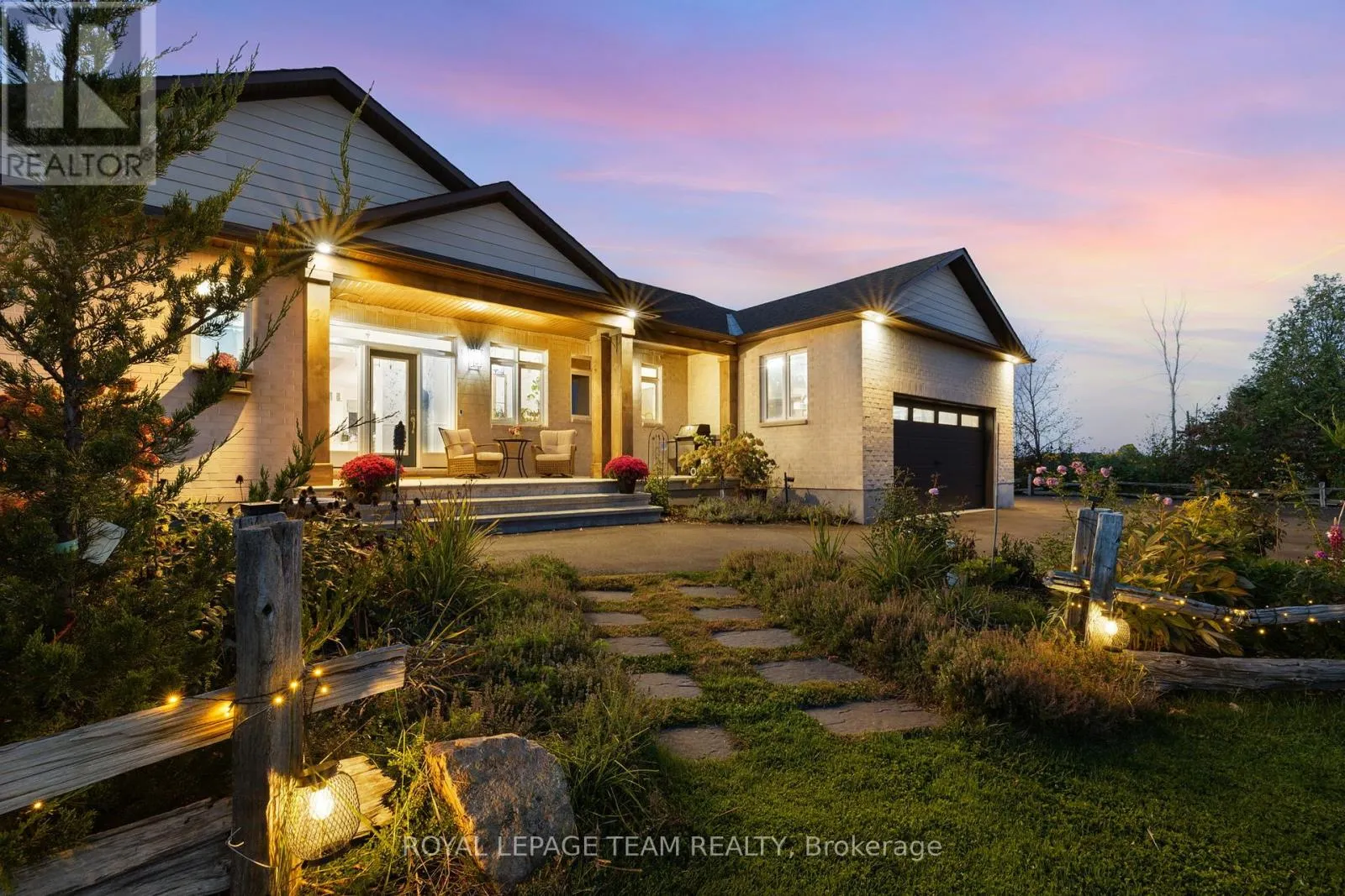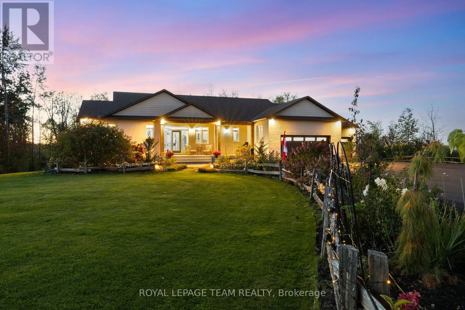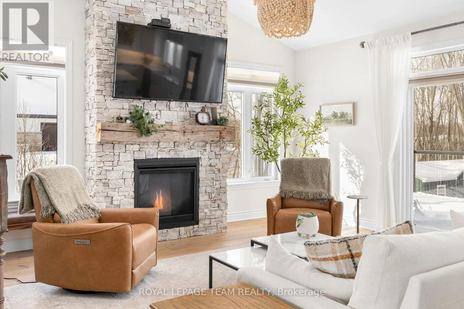 Cross Streets: Marchurst Road. ** Directions: From Kanata, travel down March Road, turn right onto Marchurst Road, then left onto Synergy Way, to #26 on your right. Welcome to 26 Synergy Way, an exceptional custom-built residence located in prestigious March Crest Estates. Nestled on over 2 private, treed acres in rural Kanata and backing onto open farmland, this property offers peaceful surroundings, and sweeping views of the Gatineau Hills. Built in 2018 by Grizzly Homes, this meticulously crafted home blends refined design, thoughtful functionality, and outstanding craftsmanship throughout. The main level features a bright, open-concept layout ideal for both everyday living and entertaining. A chef-inspired kitchen showcases quartz counters & backsplash, extra-tall stacked cabinetry, built-in microwave, pot filler, stainless steel appliances, and an impressive 10' x 5' island with extensive storage and seating. The dining area & vaulted great room offers designer lighting, pot lights, and a striking 12' real stone gas fireplace with reclaimed barn beam mantle. Sliding doors lead to a two-storey TREX composite deck with glass railings, perfect for enjoying panoramic views. Three bedrooms on the main level, including a stunning primary suite with vaulted ceilings, walk-in closet, and award-winning 5-piece ensuite with heated floors. A spacious mudroom/laundry area with built-ins offers convenient access to the heated triple-car garage. Wide-plank brushed white oak hardwood flooring throughout main level. The walk-out lower level includes a fully self-contained 1,600 sq.ft. in-law or nanny suite with two bedrooms, full kitchen, living room with electric fireplace, in-suite laundry, private garage entrance, access to a lower deck & park-like backyard. Additional unfinished space provides excellent storage. Extensive upgrades include an oversized paved driveway, Generlink 12,000W generator, irrigation system, landscaped gardens with mature trees & fruit plantings, firepit, shed, and meticulous ongoing maintenance. Stylish, versatile, and impeccably cared for, this one-of-a-kind home offers an extraordinary lifestyle opportunity. (id:27476)