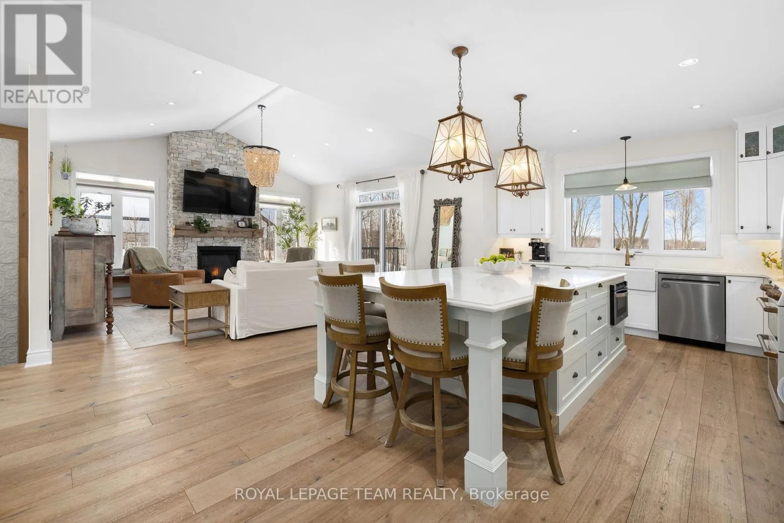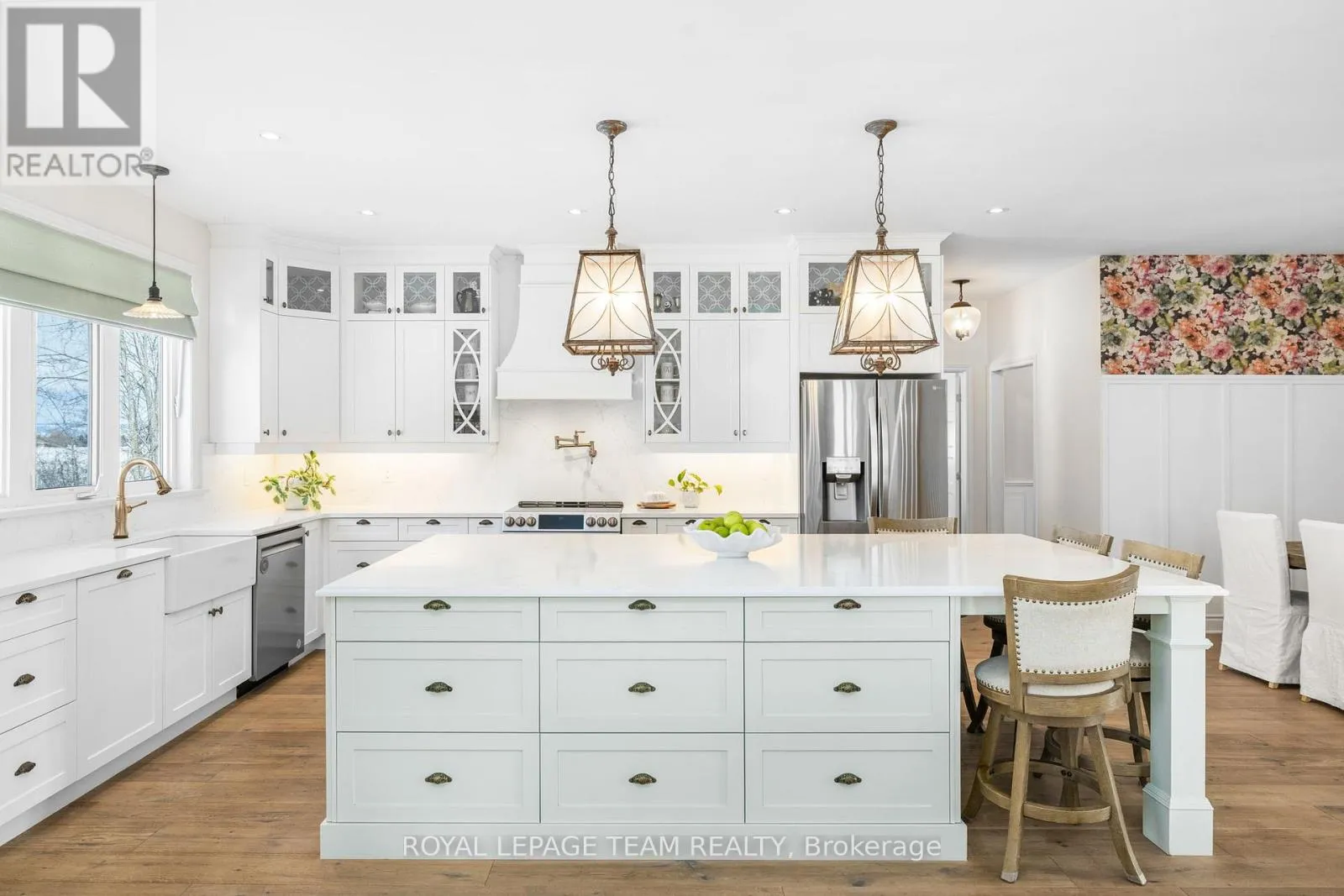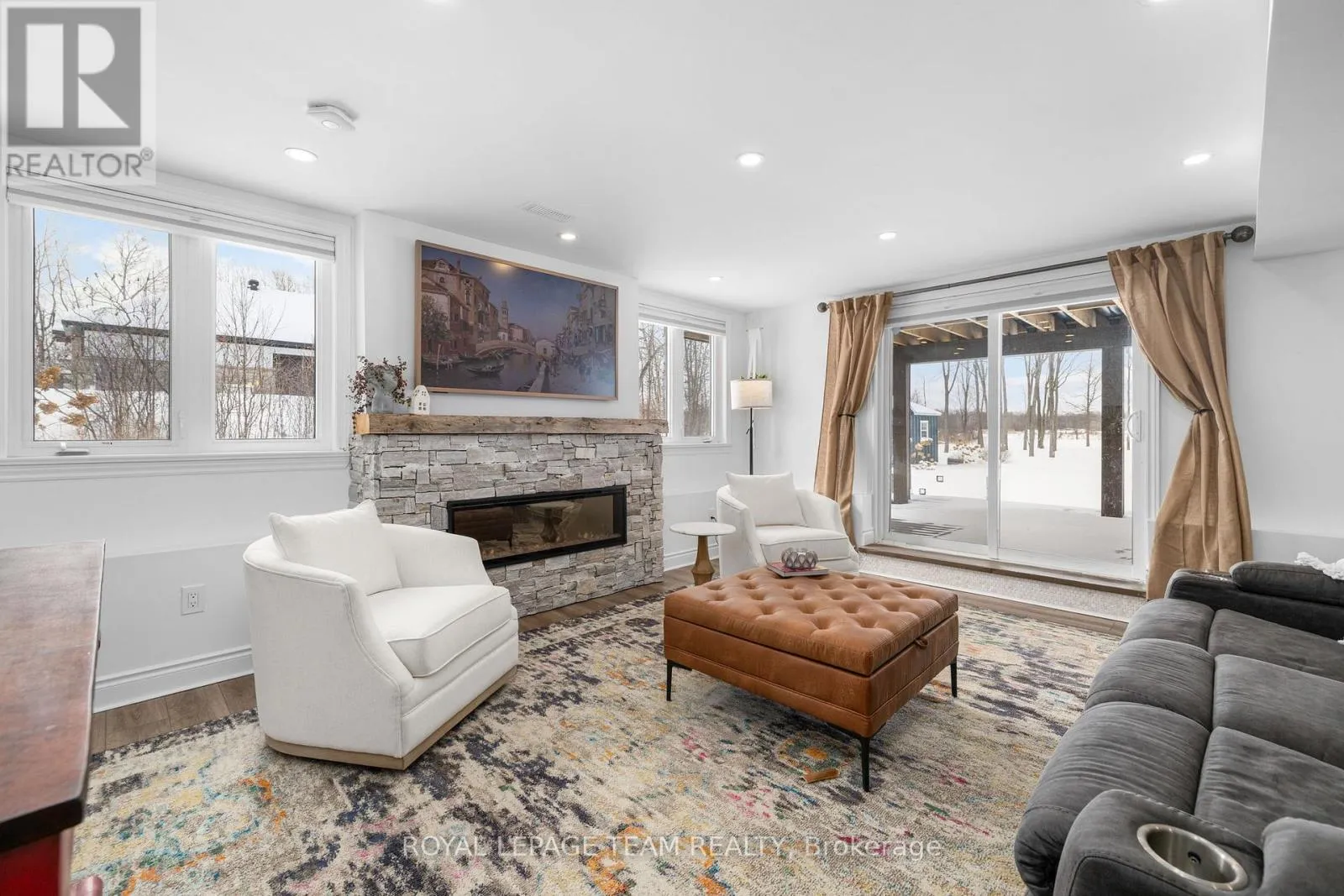 Cross Streets: Marchurst Road. ** Directions: From Kanata, travel down March Road, turn right onto Marchurst Road, then left onto Synergy Way, to #26 on your right. Welcome to 26 Synergy Way, an exceptional custom-built residence located in prestigious March Crest Estates. Nestled on over 2 private, treed acres in rural Kanata and backing onto open farmland, this property offers peaceful surroundings, and sweeping views of the Gatineau Hills. Built in 2018 by Grizzly Homes, this meticulously crafted home blends refined design, thoughtful functionality, and outstanding craftsmanship throughout. The main level features a bright, open-concept layout ideal for both everyday living and entertaining. A chef-inspired kitchen showcases quartz counters & backsplash, extra-tall stacked cabinetry, built-in microwave, pot filler, stainless steel appliances, and an impressive 10' x 5' island with extensive storage and seating. The dining area & vaulted great room offers designer lighting, pot lights, and a striking 12' real stone gas fireplace with reclaimed barn beam mantle. Sliding doors lead to a two-storey TREX composite deck with glass railings, perfect for enjoying panoramic views. Three bedrooms on the main level, including a stunning primary suite with vaulted ceilings, walk-in closet, and award-winning 5-piece ensuite with heated floors. A spacious mudroom/laundry area with built-ins offers convenient access to the heated triple-car garage. Wide-plank brushed white oak hardwood flooring throughout main level. The walk-out lower level includes a fully self-contained 1,600 sq.ft. in-law or nanny suite with two bedrooms, full kitchen, living room with electric fireplace, in-suite laundry, private garage entrance, access to a lower deck & park-like backyard. Additional unfinished space provides excellent storage. Extensive upgrades include an oversized paved driveway, Generlink 12,000W generator, irrigation system, landscaped gardens with mature trees & fruit plantings, firepit, shed, and meticulous ongoing maintenance. Stylish, versatile, and impeccably cared for, this one-of-a-kind home offers an extraordinary lifestyle opportunity. (id:27476)