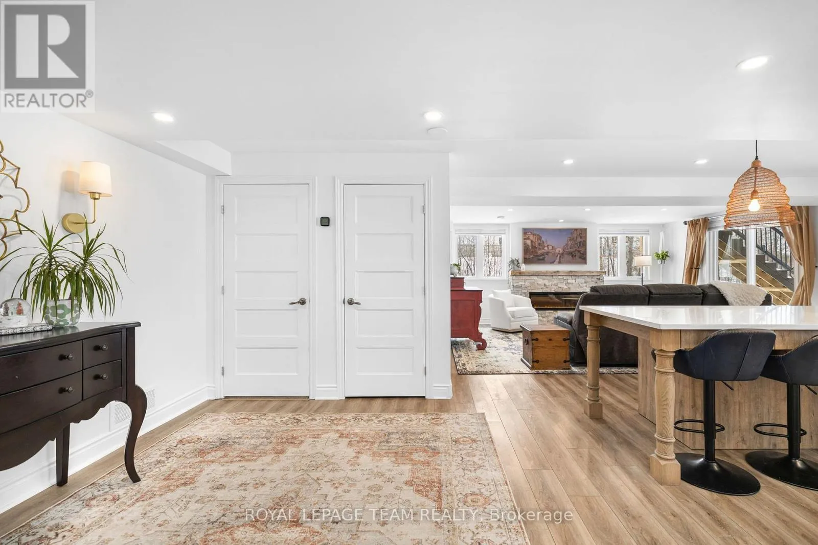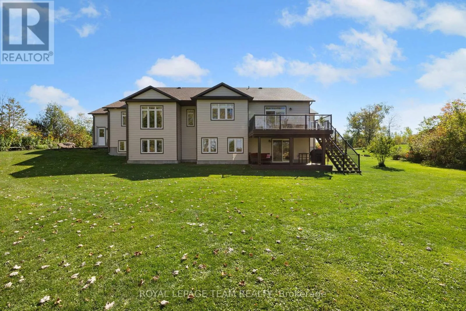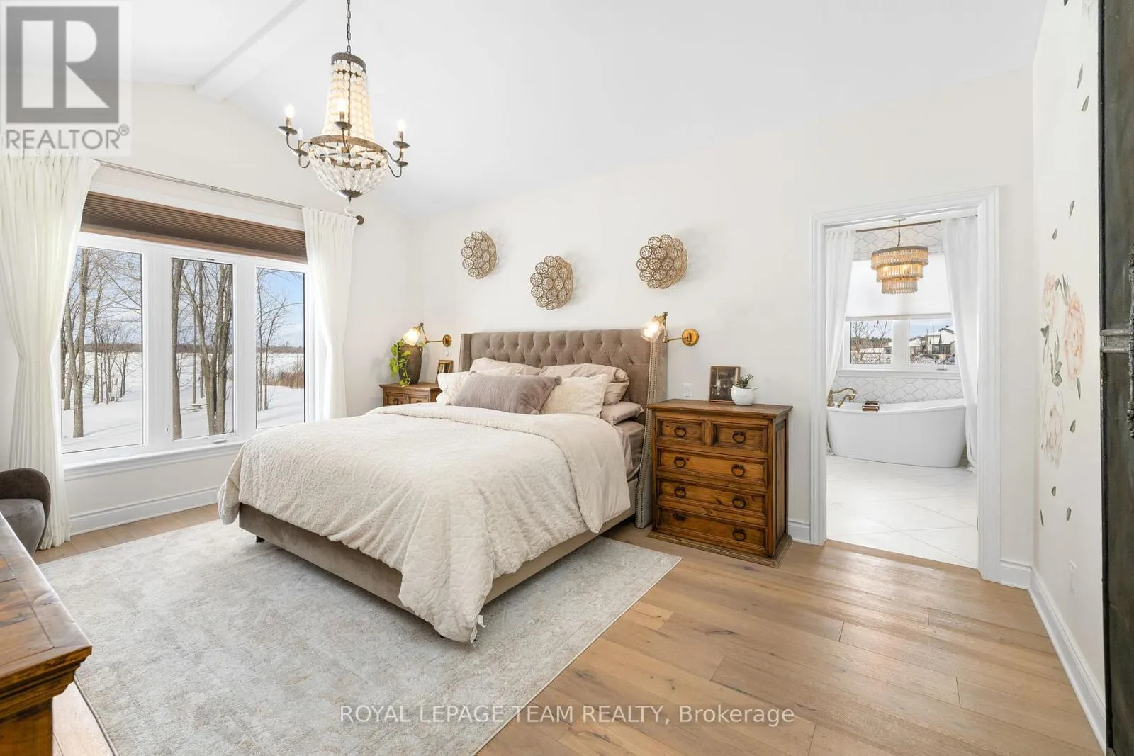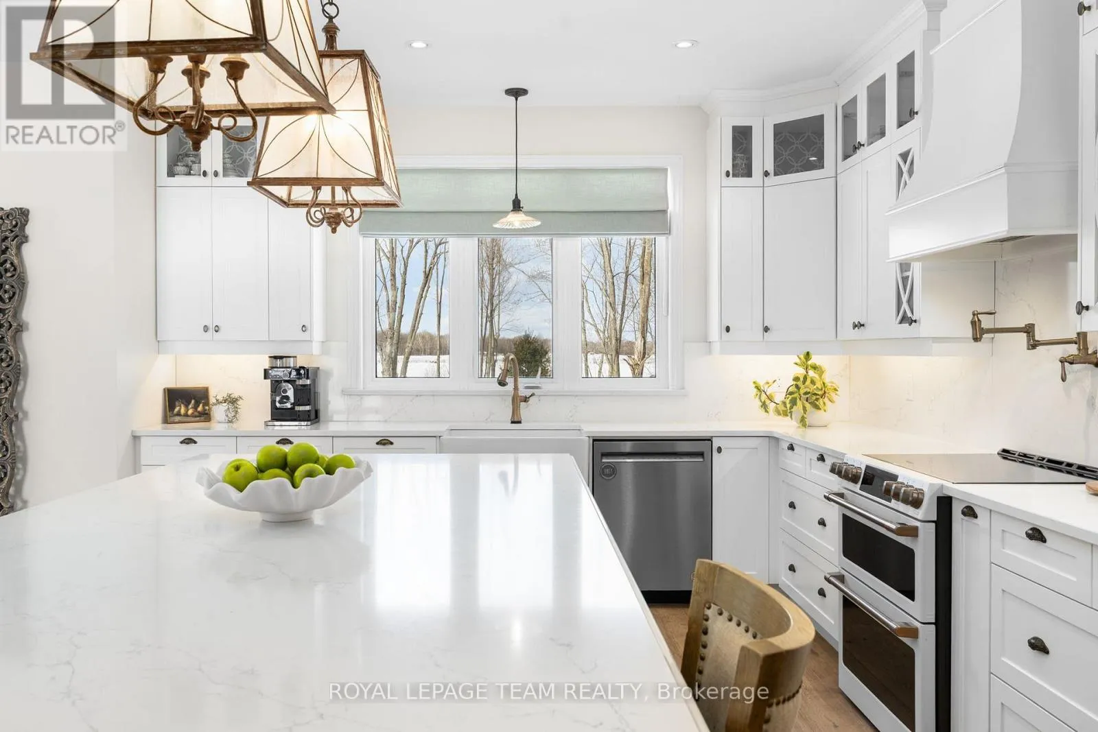 Cross Streets: Marchurst Road. ** Directions: From Kanata, travel down March Road, turn right onto Marchurst Road, then left onto Synergy Way, to #26 on your right. Welcome to 26 Synergy Way, an exceptional custom-built residence located in prestigious March Crest Estates. Nestled on over 2 private, treed acres in rural Kanata and backing onto open farmland, this property offers peaceful surroundings, and sweeping views of the Gatineau Hills. Built in 2018 by Grizzly Homes, this meticulously crafted home blends refined design, thoughtful functionality, and outstanding craftsmanship throughout. The main level features a bright, open-concept layout ideal for both everyday living and entertaining. A chef-inspired kitchen showcases quartz counters & backsplash, extra-tall stacked cabinetry, built-in microwave, pot filler, stainless steel appliances, and an impressive 10' x 5' island with extensive storage and seating. The dining area & vaulted great room offers designer lighting, pot lights, and a striking 12' real stone gas fireplace with reclaimed barn beam mantle. Sliding doors lead to a two-storey TREX composite deck with glass railings, perfect for enjoying panoramic views. Three bedrooms on the main level, including a stunning primary suite with vaulted ceilings, walk-in closet, and award-winning 5-piece ensuite with heated floors. A spacious mudroom/laundry area with built-ins offers convenient access to the heated triple-car garage. Wide-plank brushed white oak hardwood flooring throughout main level. The walk-out lower level includes a fully self-contained 1,600 sq.ft. in-law or nanny suite with two bedrooms, full kitchen, living room with electric fireplace, in-suite laundry, private garage entrance, access to a lower deck & park-like backyard. Additional unfinished space provides excellent storage. Extensive upgrades include an oversized paved driveway, Generlink 12,000W generator, irrigation system, landscaped gardens with mature trees & fruit plantings, firepit, shed, and meticulous ongoing maintenance. Stylish, versatile, and impeccably cared for, this one-of-a-kind home offers an extraordinary lifestyle opportunity. (id:27476)