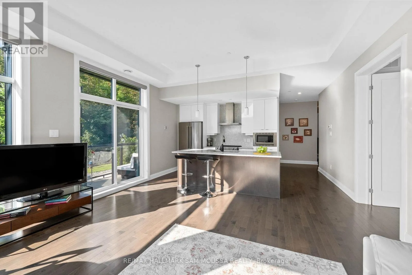 Cross Streets: Limebank Road. ** Directions: South on Limebank Road, Right on Cortile Private. Welcome to 120 Cortile Private #101, an Urbandale-built boutique condo in the heart of Riverside South. This south-facing corner unit offers a spacious living area with 10ft ceilings and floor-to-ceiling windows that bring in an abundance of natural light. The open-concept layout features hardwood flooring, a modern kitchen with lots of storage, a large island, and stainless steel appliances. The spacious primary bedroom includes a walk-in closet and a 4-piece ensuite. An additional second bedroom provides extra room or can be used as a home office. A second full bathroom, in-unit laundry, and heated underground parking add convenience. Enjoy your south facing, private balcony overlooking beautifully maintained grounds. Located just steps from parks, walking trails, the new Armstrong Retail Plaza, and the upcoming Limebank LRT station nearby is an added bonus. This home offers comfort, style, and convenience in an excellent location. (id:27476)